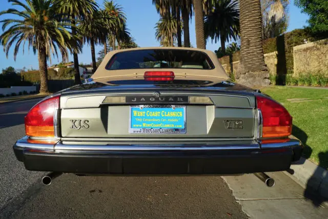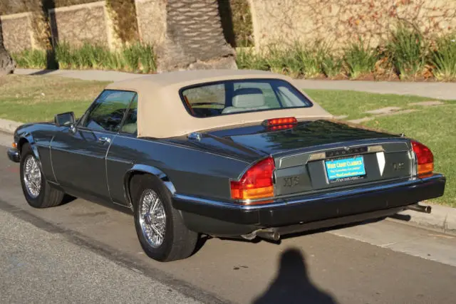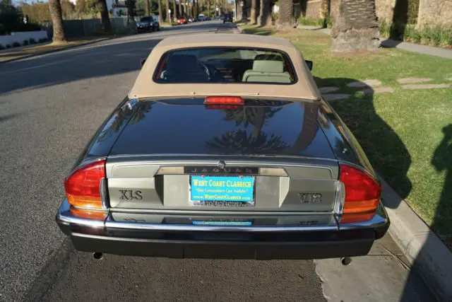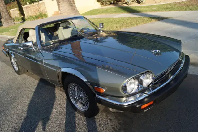 West Coast Classics are proud to present an absolutely exceptional example of this classic and rare 1990 Jaguar XJS 5.3L V12 convertible roadster with only 46K original miles in a very rare and gorgeous combination of original factory 'Jade Green Pearl' (Code HEV) color paint with rare special order factory chrome disc wheels and beautiful doeskin leather interior and a matching original 'Light Tan' power soft top and tonneau cover! This particular car must be seen to be truly appreciated! A re...al head-turner!