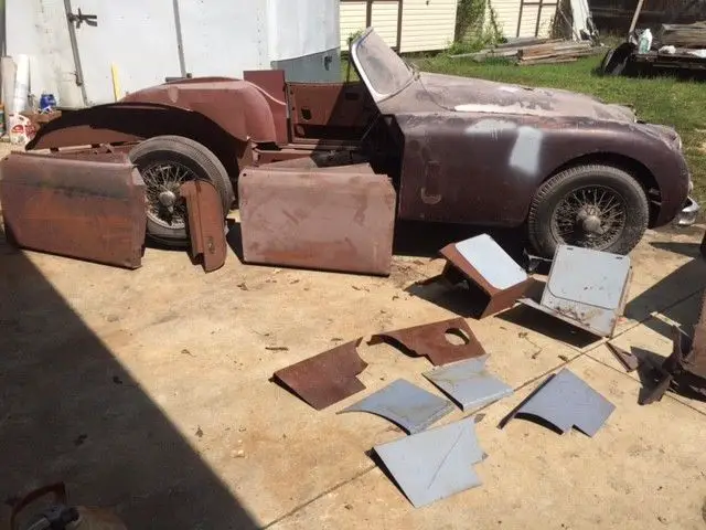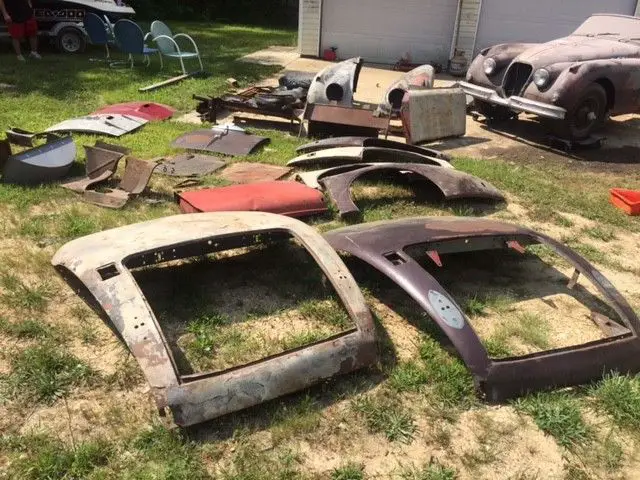 Package deal xk 150 roadster with extra frame extra set of reskinned doors a lot of new metal panels extra hood 2 extra trunk lids 3 sets of wire wheels lots of metal wheels, 5 engines 3 automatic transmissions 4 manual transmissions 3 with overdrive extra rear, boxes and boxes of parts, several jaguar tool boxes, 3 sets of doors for mk 1 or 2, extra hoods and trunk lids for mk 1 and 2, extra front suspension assembly with wire wheel hubs, extra front body halves cut at grill, solid mk 2 that was painted 20 plus years ago and never put back together, mk 1 that has nice floors but will need to be restored and has some lower body rust issues, lots of starters, generators, grills, bumpers, glass, trim, 2 car trailers full of parts this is a package deal ( less the trailers) please don't call and ask for one or two pieces, one of the spare engines is for an e type with triple carb set up. over seas buyers may need two containers one for one car and parts and one for the other 2 cars see pictures and ask questions, clear Maryland titles on all 3 cars if you want to come see what is here just send an email and we can schedule.