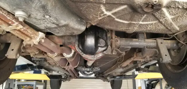 The 2.5-liter Inline-6 is linked to a four-speed manual transmission in the floor. An oil change was made. The lower part shows a run and in the gallery are presented additional photos showing the condition of the panels below the body and the rails.
