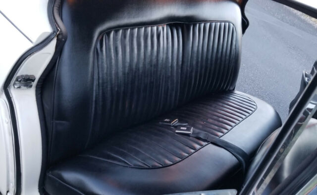 The black bucket seats and carpets are combined with a wooden dashboard and top door trim. The two-spoke steering wheel is equipped with a cover for the spare parts market.