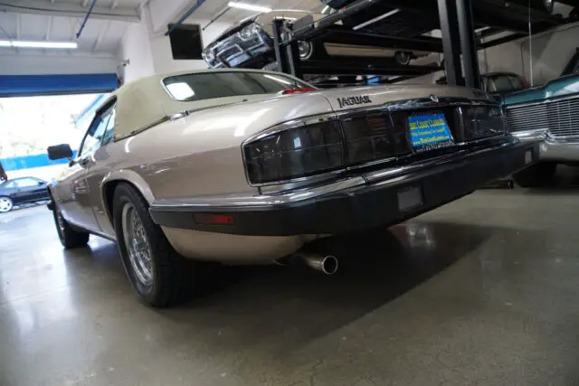 West Coast Classics are proud to present a beautiful and increasingly collectible example of this classic 1992 Jaguar XJS 5.3L V12 roadster convertible with only 30K original miles! Recently purchased by us from long time ownership and always primarily dealer serviced, always garaged, never smoked in and rarely driven.Gorgeous and very desirable rare classic color combination of original factory 'Oyster Metallic (Code SDE) color paint with a beautiful tan canvas power soft top with a matching tonneau cover and a... beautiful doeskin 'Barley' leather (Trim Code AFW) interior with striking factory chrome wire wheels! This particular car must be seen to be appreciated! A real head-turner!Obviously always garaged and babied, the original factory 'Oyster Metallic' color paint is in very good condition and the original Doeskin 'Barley' color leather seats are also in outstanding condition with virtually no signs of any wear and there are no noticeable imperfections in the dashboard or the walnut veneer. The matching color soft top with matching tonneau cover is in exceptional condition also and all the options and gauges are working as they should including the A/C. one of the finest, race proven engines built by Jaguar, the smooth 5.3L V12 engine, was a very low production model costing over $70K new in 1992 with only very few examples imported to the U.S.! It was a worthy successor to the XK series of Jaguar sports cars dating from the late 1940's.This car's original 5.3L V12 engine is still extremely strong and smooth running with excellent oil pressure and which does not burn or leak oil. The temperature always remains cool and the car drives exactly like a virtually still new Jaguar with such low miles should - no shakes or rattles - very smooth and powerful - drives the same as when it left the showroom floor over 25 years ago! The car will be sold with it's original owners manuals and a thick file of dealer service records, a clean Carfax report and it's original window sticker.This is one very fine example of this classic and increasingly desirable and collectible Jaguar XJS V12 convertible with only 30K original miles in this most striking of color combinations - sure to prove a very collectible investment in probably the last classically beautiful design built by Jaguar in their long and famous history of classic lines - a sure-fire classic car investment for the Jaguar enthusiast or any astute classic car collector's collection!