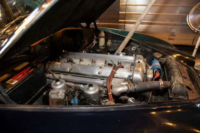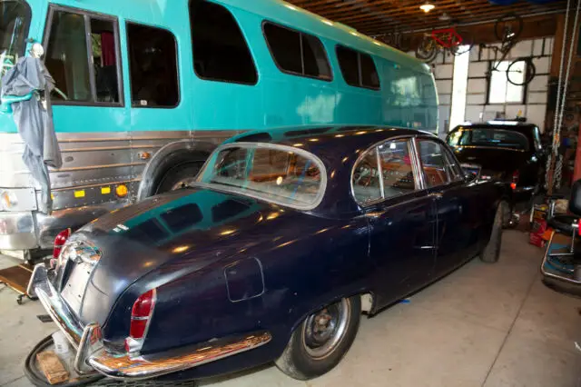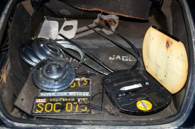Blue Jaguar VIN:P1B78640BW: automatic, steel wheels, rebuilt 3.8 motor with 4.2 head, large SU carbs, rear carriage rebuilt, $1200 receipts for new headliner, door ribbing, wood refinished, radiator, rebuilt starter, new belts, includes original owners kit and hubcaps, Whitworth wrenches, running not mobile. Barn find stored inside for 35 years.