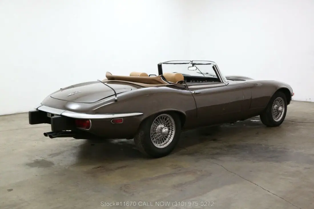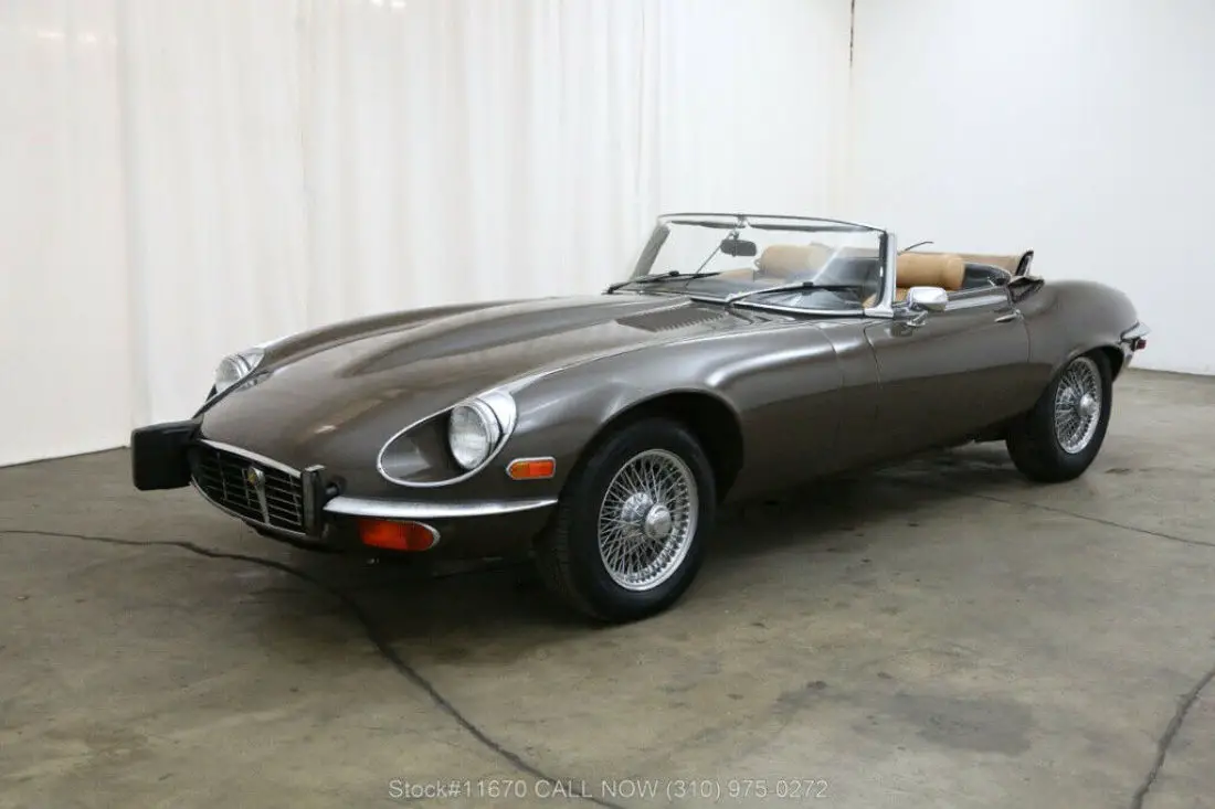 1973 Jaguar XKE V12 RoadsterThis 1973 Jaguar XKE V12 Roadster featured here with matching numbers is available in sable with a tan interior. It comes equipped with a 4-speed manual transmission, Zenith carburetors, air conditioning, power steering, wire wheels, soft top and includes the spare tire. This is a very presentable and excellent original car which has just come out of storage. For $47,500