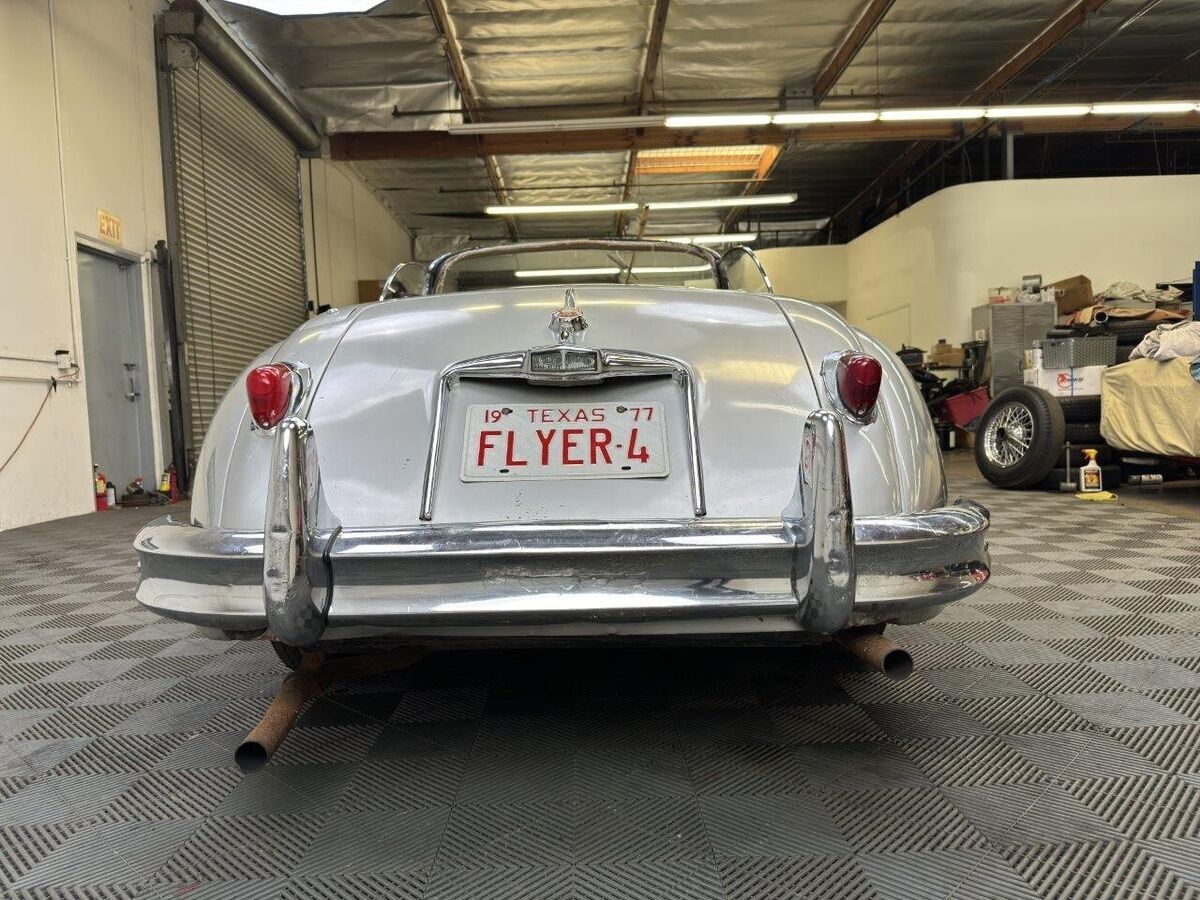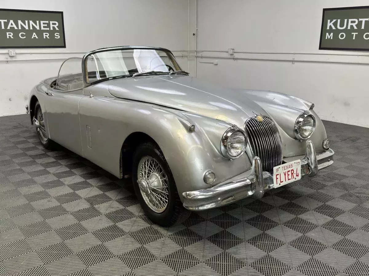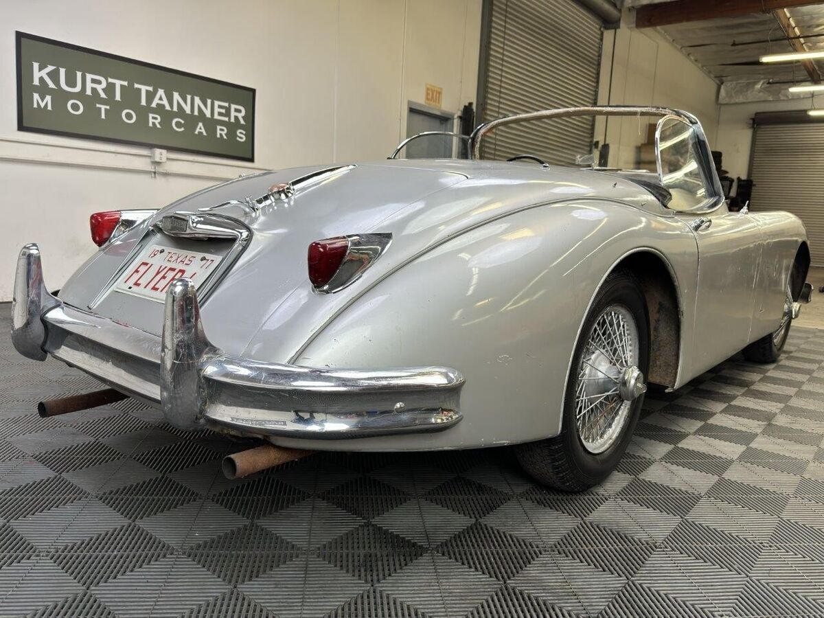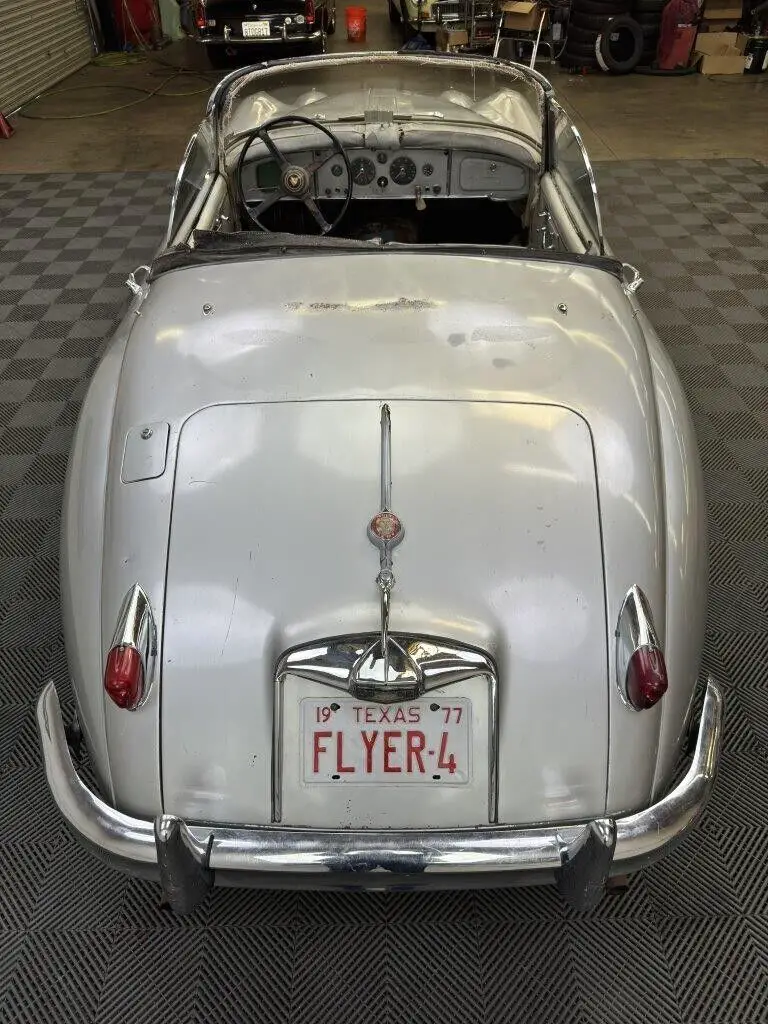 -Super originalXK150Roadster, the final variation and most developed of the Jaguar XK line. Just purchased out of long term storage from Lubbock, TX from the family of it’s long term owner. One of only 2265 Roadsters produced for the world.-Lovely original colors of Mist Grey paintwork with Grey trim.-Power boosted 4-wheel disc brakes, roll-up windows, improved luxurious interior, nice folding soft top with beautiful convertible look. Lovely Jaguar Grand Tourer.-Very good bodywork overall with hardly any rust. Good fitting body panels/gapping. PLEASE SEE UNDERCARRIAGE VIDEO.-Very good original chromework. Highly original interior, trunk, engine compartment. PLEASE SEE WALK AROUND VIDEO.-Original engine runs and sounds good on new battery and gravity fed fuel. Excellent oil pressure. PLEASE SEE RUNNING VIDEO. Fuel pump clicks but needs fuel tank clean-out and brake system overhaul to drive.-Overall, a well preserved and original, super solid and straight, runningXK150Roadster in nice colors for easy, general improvement. YouTube Video Link (copy and paste):https://youtu.be/PslzdgC3JN8?si=U9IOAY1K0qUZ6jmX