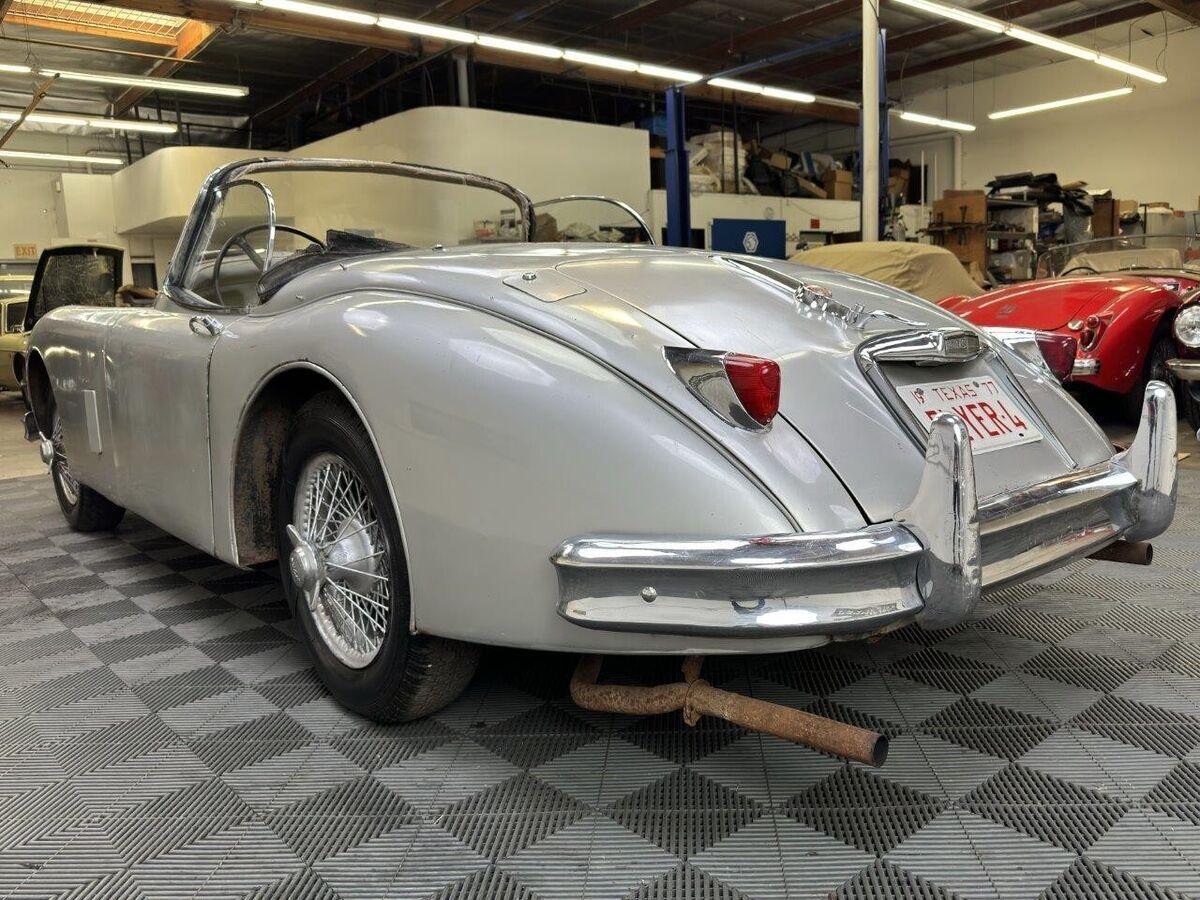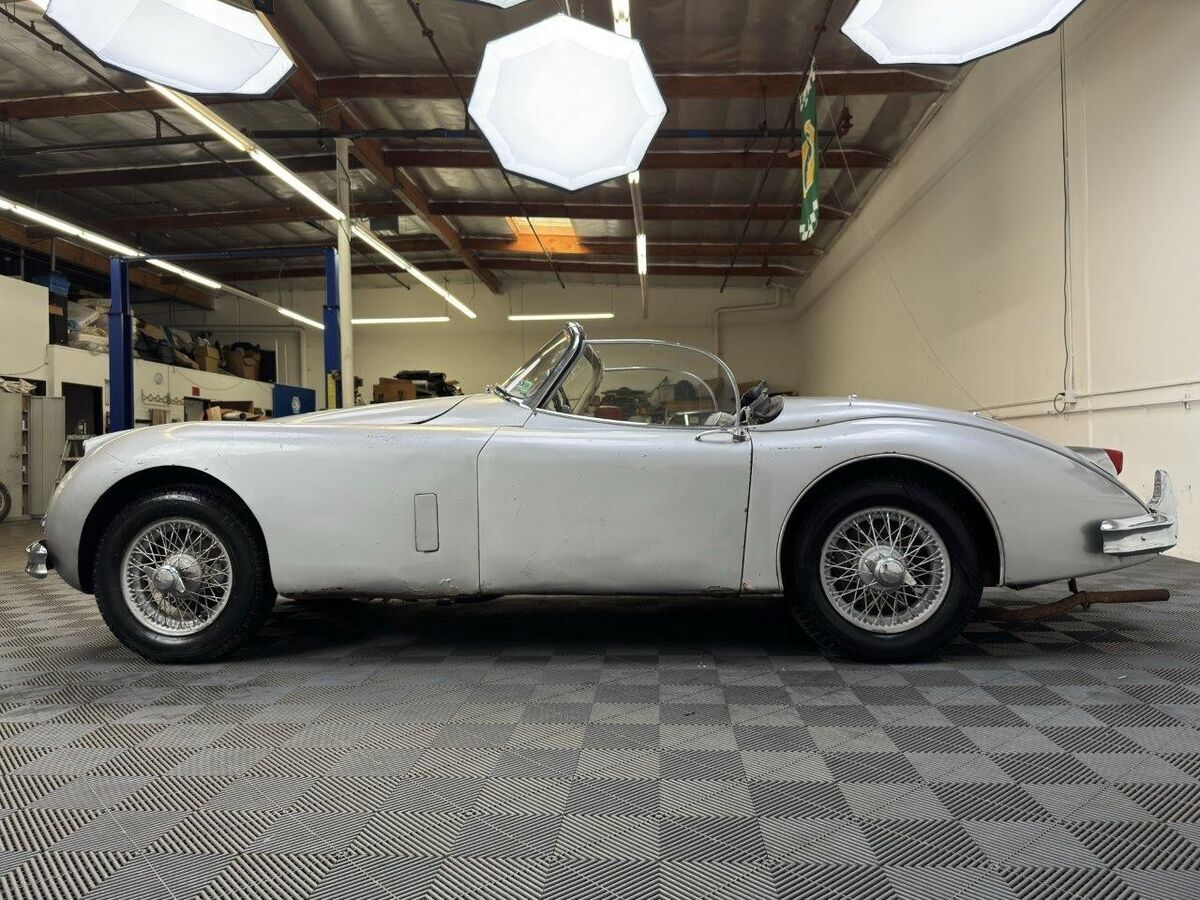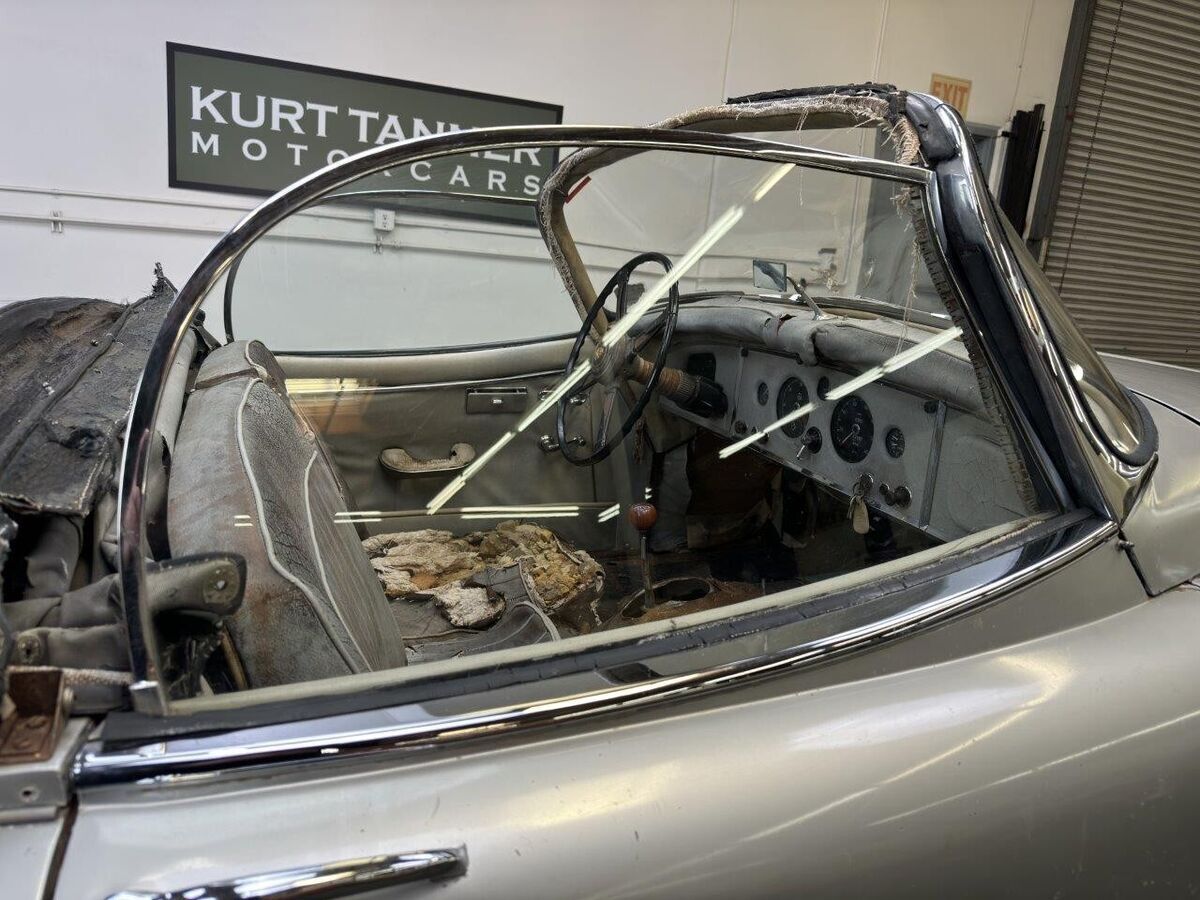 -Super originalXK150Roadster, the final variation and most developed of the Jaguar XK line. Just purchased out of long term storage from Lubbock, TX from the family of it’s long term owner. One of only 2265 Roadsters produced for the world.-Lovely original colors of Mist Grey paintwork with Grey trim.-Power boosted 4-wheel disc brakes, roll-up windows, improved luxurious interior, nice folding soft top with beautiful convertible look. Lovely Jaguar Grand Tourer.-Very good bodywork overall with hardly any rust. Good fitting body panels/gapping. PLEASE SEE UNDERCARRIAGE VIDEO.-Very good original chromework. Highly original interior, trunk, engine compartment. PLEASE SEE WALK AROUND VIDEO.-Original engine runs and sounds good on new battery and gravity fed fuel. Excellent oil pressure. PLEASE SEE RUNNING VIDEO. Fuel pump clicks but needs fuel tank clean-out and brake system overhaul to drive.-Overall, a well preserved and original, super solid and straight, runningXK150Roadster in nice colors for easy, general improvement. YouTube Video Link (copy and paste):https://youtu.be/PslzdgC3JN8?si=U9IOAY1K0qUZ6jmX