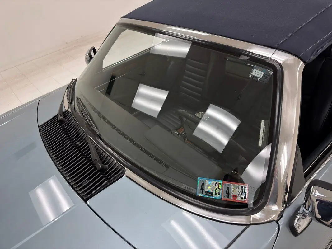 You can look at the door panels and just know they are made with quality materials. They're tight, clean, and efficiently designed here in blue with a burl wood accent. Blue leather bucket seats are providing ribbed inserts and tall backs all in wonderful shape. There are no back seats, only a flat carpeted cargo area. The driver is handed a fairly average black steering wheel which fronts an instrument cluster in a black cove with the tach and speedometer flanking vertical gauges under a row of idiot and indicator lights. The real magic begins in the middle of the dash where highly varnished burl wood veneer takes center stage, surrounding vents, buttons, the glove box, and the center console where the somewhat petite shifter rises gently from the base. An AM/FM/Cassette deck is not far away and a stainless cup holder is on the other side of the shifter, embedded into the armrest. Low pile gray carpet covers the floor and the tan headliner of the canvas roof is in great shape. The trunk is wonderfully configured, covered in carpet, and housing an extra mesh wheel.