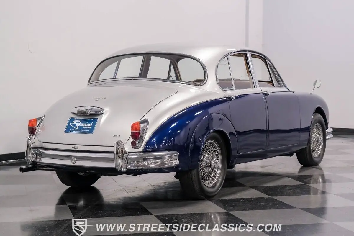 Vehicle Original VIN : 178031One of the most readily recognized cars of the 1960s, thanks in part to countless appearances in films and on television, Jaguar's seminal MKII saloon set the standard for the class throughout its entire production life and today remains highly prized by enthusiasts. This handsome 1962 Jaguar MK II Saloon is a fine example of why these cars are so coveted. Introduced in October 1959, the MKII replaced the MKI, the Coventry firm's first unitary construction saloon car. Closely related to its immediate predecessor albeit extensively revised, the MKII offered better all-round visibility courtesy of larger windows while the MK1's rear wheel spats disappeared and the rear track was widened, improving both roll-resistance and stability. The dashboard was redesigned with the speedometer and rev counter relocated in front of the driver, the six toggle switches and four minor gauges being set across the center. Independent front suspension was by wishbone and coil springs, with a leaf-sprung live axle at the rear. This, combined with superior Dunlop disc brakes all round and a choice of 2.4, 3.4 and 3.8-liter XK engines, provided the discerning, string-back gloved, enthusiast driver with one of the finest sports saloons available in the 1960s. Affectionally known as "Edward", this MK II 3.4 was purchased new by Dr. Ben Calloway Jones lll in Germany from Jaguar distributor Peter Lindner and was issued German license plate number G-4955. Dr. Calloway brought his Jaguar back to the United States where he used the car in Virginia and Washington D.C. before moving to Austin, Texas. In May 1972 the car was placed in storage after being driven 61,406 miles. It remained in storage for over three decades before it was acquired by a collector in 2004 in Florida who began restoring it. In 2007 it was purchased by California collector who finished the restoration and subsequently sold it to its current owner who has maintained and enjoyed this classic Jaguar to this day. The current owner has upgraded the car with a rack and pinion power steering conversion, new suspension and Spax shock absorbers. Finished strikingly in Royal Blue and Silver paint, this rare machine features driving lights and chrome Dayton wire wheels wrapped with Vredestein Sprint Classic tires to create an elegant and sporting look. The restored interior looks just as a proper vintage Jaguar should, replete with sumptuous upholstery, burled wood dash and trim, Smiths gauges, RetroAir air conditioning, upgraded modern retro-style radio with Bluetooth and a beautiful Derrington wood-rimmed steering wheel. Its smooth-running 3.4-liter engine, 4-speed manual transmission with overdrive, 4-wheel disc brakes and upgraded steering system make this classic Jaguar an absolute pleasure to drive. Highlights: 3.4-Liter 6-cyliner engine 4-speed manual transmission with overdrive Chrome Dayton wire wheels Vredestein Sprint Classic tires Upgraded rack and pinion power steering conversion 4-wheel disc brakes Driving lights RetroAir air conditioning Upgraded Derrington steering wheel Upgraded retro-style radio with Bluetooth Documented history from new Photo album A show board, owners and maintenance manual, photo album and comprehensive list of expenses related to the car totaling over $40,000 accompany the car. With the right upgrades, a great history and classic British styling, this exceptional 1962 Jaguar MK II is waiting to be cherished by a new owner. Call today!