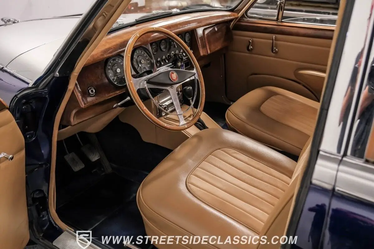 Finished strikingly in Royal Blue and Silver paint, this rare machine features driving lights and chrome Dayton wire wheels wrapped with Vredestein Sprint Classic tires to create an elegant and sporting look. The restored interior looks just as a proper vintage Jaguar should, replete with sumptuous upholstery, burled wood dash and trim, Smiths gauges, RetroAir air conditioning, upgraded modern retro-style radio with Bluetooth and a beautiful Derrington wood-rimmed steering wheel. Its smooth-running 3.4-liter engine, 4-speed manual transmission with overdrive, 4-wheel disc brakes and upgraded steering system make this classic Jaguar an absolute pleasure to drive.