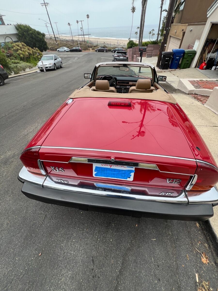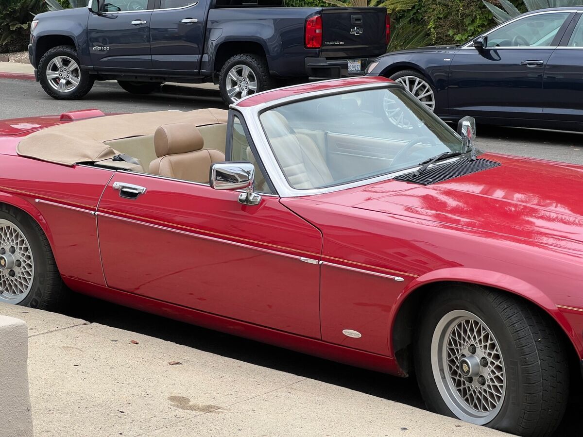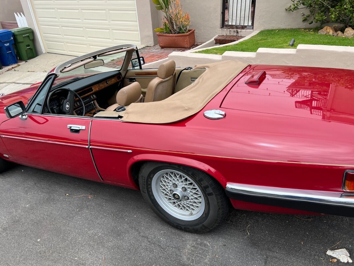 1988 Jaguar XJS Convertible, Beautiful red paint with a tan leather interior. 59,000 miles, V12 engine runs beautifully, major maintenance just completed, including rebuilt fuel injectors, all new fuel lines and injector hoses. Replaced oil pressure sensors, heater control valve, water temperature, throttle linkage bushings, all new water hoses & vacuum lines. Extensive repair records since new, runs great.