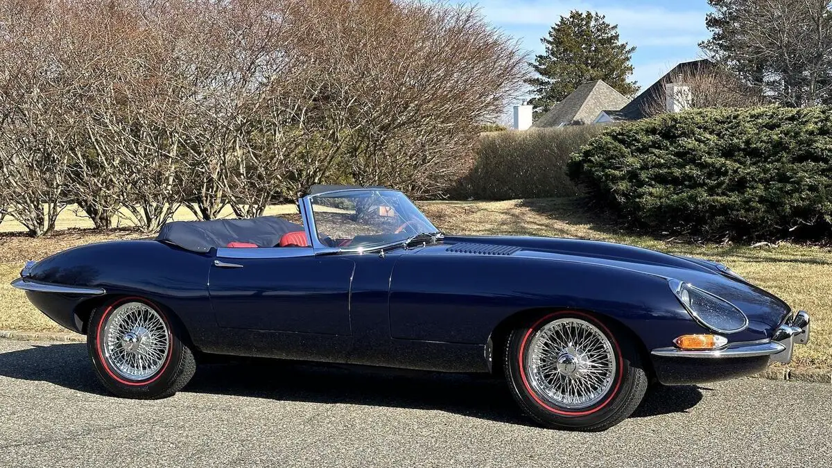 1968 Jaguar XKE Series 1.5. This example is finished in dark blue over a red leather interior. Car is mechanically sorted, with recent work including: