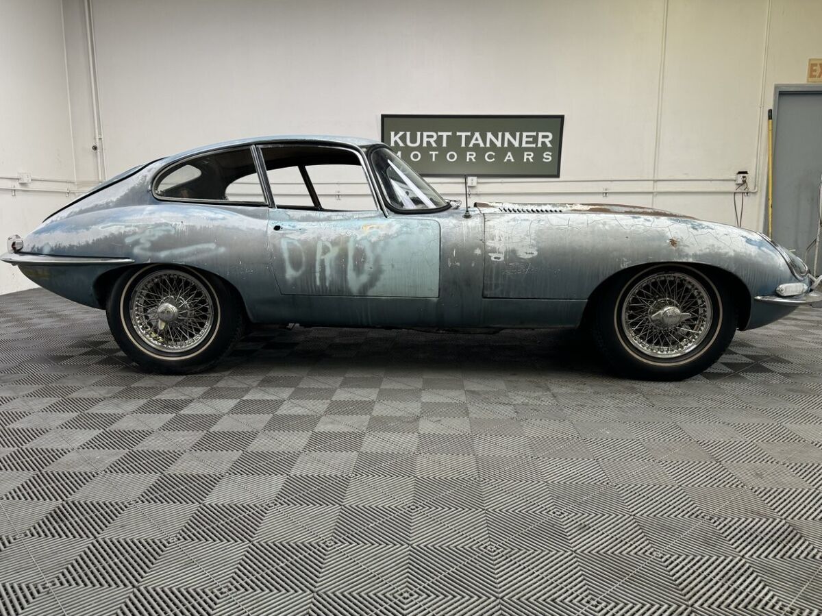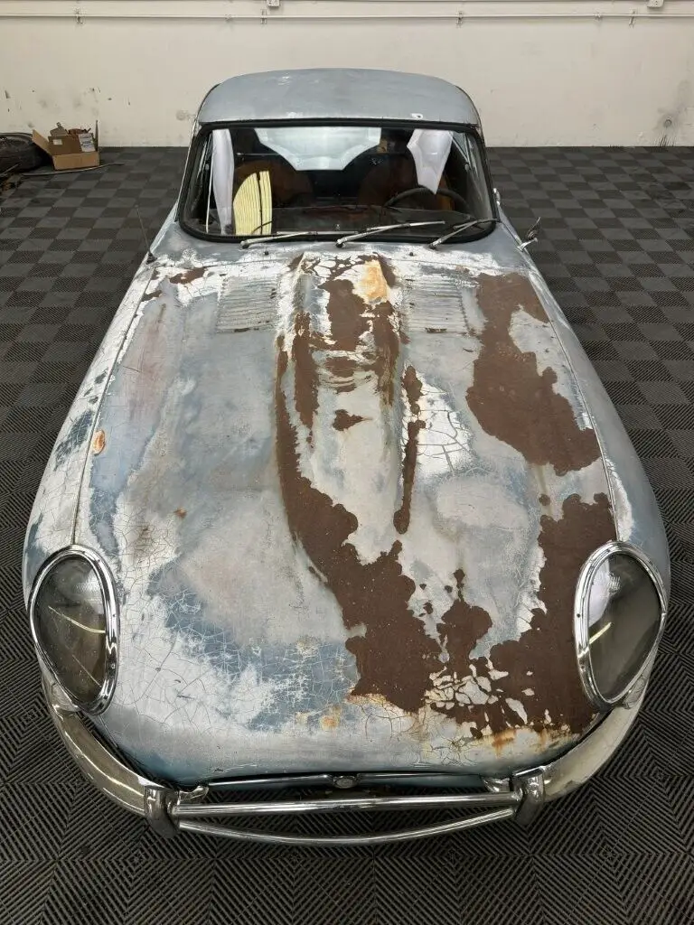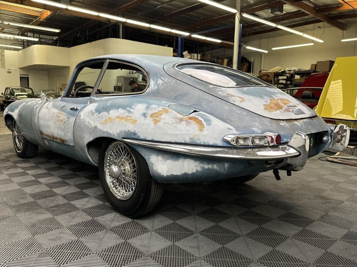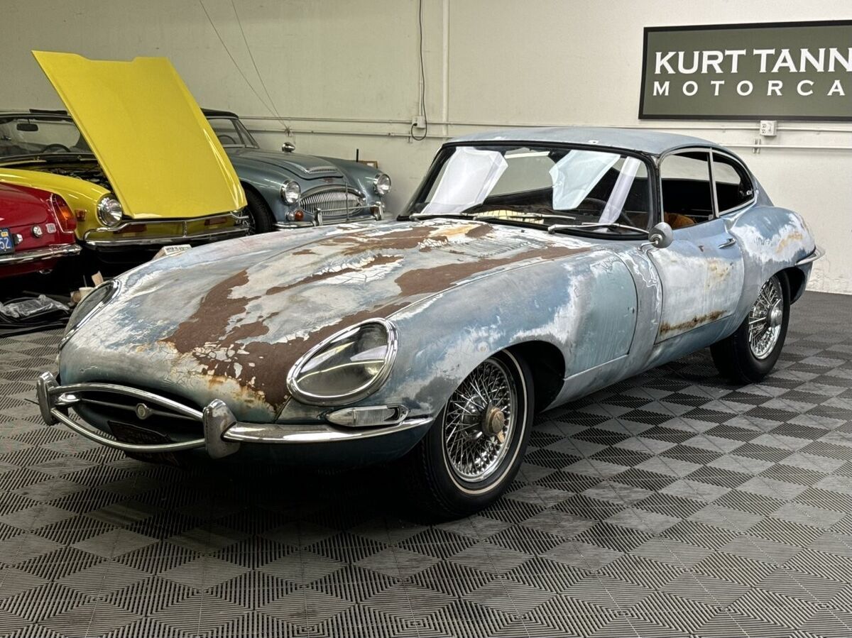 -Recently purchased out of storage from long term California family ownership since the early 1970’s. Extremely original car with 79,933 miles. Original delivery paperwork shows sold new in Monterey, CA with over 50 years in San Diego, CA.-Never been apart or restored. Highly original car for straightforward restoration, hence good Concours candidate. Good panel fit/gapping. Quite solid overall. Good colors.-Interior condition is shabby, but hugely original and complete. Missing door glass and 1 quarter window glass.-PLEASE SEE WALK AROUND VIDEO.-Amazing originality includes tool kit, jack in bag, original Dunlop spare tire, rim, and hold down. Delivery paperwork includes vinyl pouch, maintenance voucher booklet, warranty, lube chart, service handbook, dealer booklet, old CA registrations, original data plate, picture frame stamping.-Overall, a super good original and desirable E-type coupe to restore. Good original colors, highly original, matching numbersYouTube Video Link (copy and paste)https://youtu.be/h10Xhs-I9uY