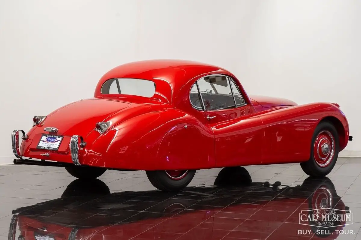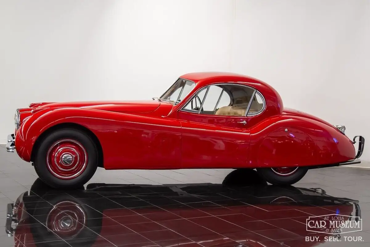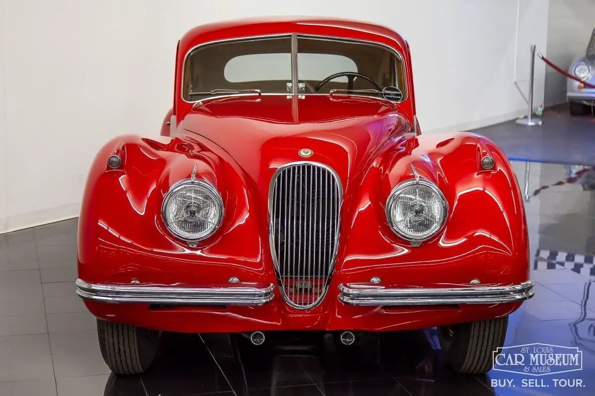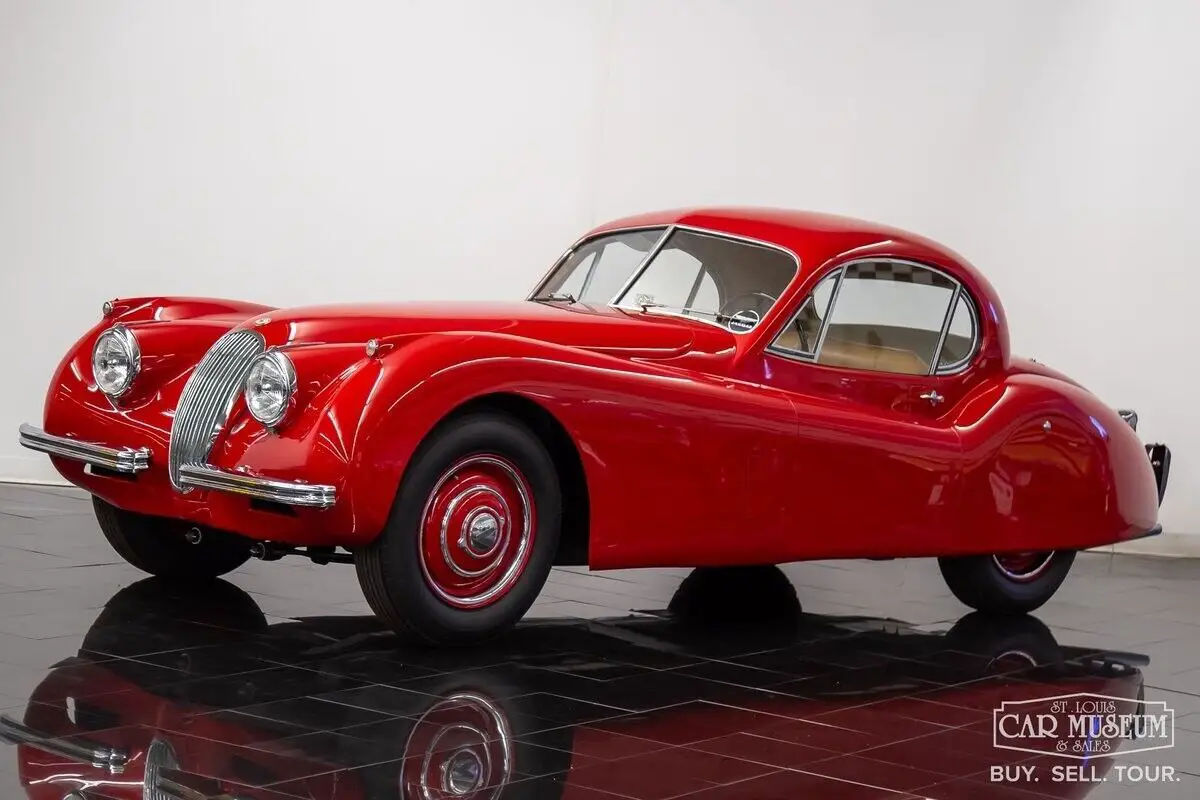 Details About Our Available Classic Jaguar: For sale at the St. Louis Car Museum is a rotisserie restored, 1952 Jaguar XK120 Fixed Head Coupe finished in Bright Red over Biscuit Tan leather interior! its original, number's matching 3.4L DOHC Inline 6-cylinder engine and head, along with its 4-speed manual gearbox, it comes equipped with traditional "discs and spats" and complementing black wall tires for a superb presentation! The car received a full nut and bolt restoration that quickly earned seven JCNA Concours Driven Division wins and a 100-point score at the Palos Verdes Concours D'Elegance. It is a remarkable example with special attention to detail throughout. The photo-documented restoration shows a true, body-off rotisserie restoration to a superbly survived, rust free XK120 FHC. The Heritage Trust Certificate shows it sold from Hornburg Jaguar of Los Angeles when new and remained a lifelong resident of California, before heading to Massachusetts for restoration between 2006-2009. It was stripped to bare metal, sealed with red oxide primer, and repainted professionally by Fiber Tech in a terrific shade of red over all new tan interior (originally silver over red), giving it a road presence that is easy to admire from every angle! It has been fully rebuilt as necessary with comprehensive drivetrain service by KTR Motorsports, a complete cloth-covered wiring harness, new suspension bushings along with Koni shocks, new Dunlop Roadspeed tires, exhaust system, and more. All chrome is in excellent condition as is the clear window glass. It returned to California soon afterwards where it would achieve JCNA honors at the multiple events it attended. Mileage on the restoration is estimated at just under 2,000 miles, and it continues to start, run, and drive with tremendous ease! The odometer reading shows only 29,835 which are said to be original to the car. It would join Richard Stephen's Academy of Art University Collection in 2010 where it would remain professionally curated in San Francisco ever since. Just 1,356 LHD Coupes would be produced in 1952. If you have been looking for a worthy Jaguar Fixed Head Coupe with certain show-winner appeal, look no further! Call today to schedule a test drive or to ask about financing and/or shipping this luxury classic! History About Jaguar's Famous XK120 Model: First appearing at the London Motor Show in 1948, design icon William Lyons was showcasing Jaguar's first sports car since the SS100 as the brand new XK120 open 2-seater. The response was immediately recognized as a success, and production began in alloy-body form. The car was named for its incredible top speed of 120 mph, and Hollywood movie icon Clark Cable was the first in line to have the world's fastest production car of the era! The car moved to steel bodies early on with 1950 production units to meet production demand. A new Fixed Head Coupe was featured at the Geneva Auto Show in 1951, providing greater comfort, a quieter interior, and luxury practicality. Particularly having refinements that included real burled walnut veneer dash & door caps, outside door handles, and roll-up windows featuring door vent glass & rear quarter glass, and accommodating cargo shelf behind the seats. The incredible shape of a Fixed Head Coupe is gorgeous, with a perfectly shaped teardrop roofline that provides a unique, curved shape to the side glass for a superb overall presentation! Questions about this 1952 Jaguar for sale? Contact Jon Faust at 855-586-3413 or email