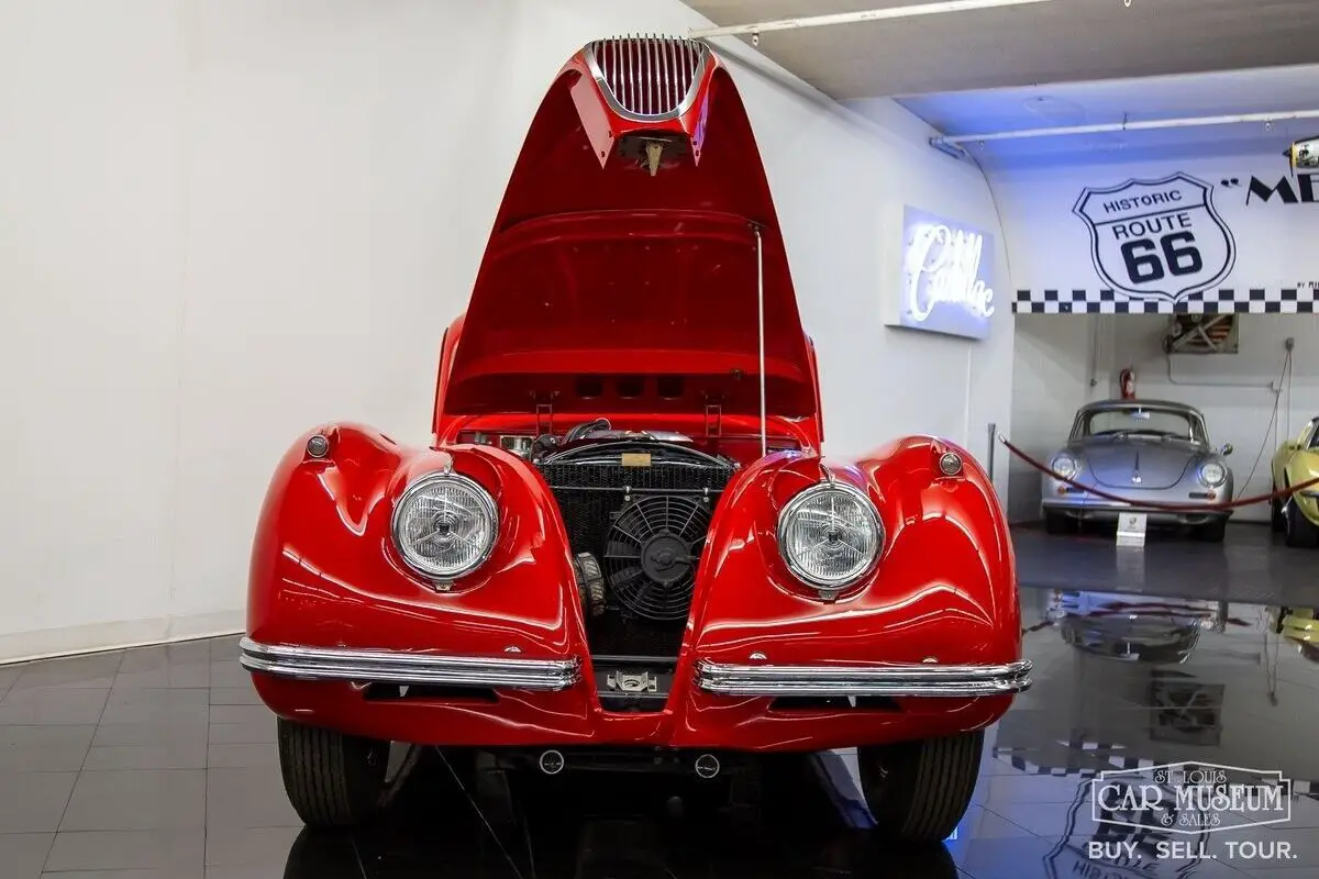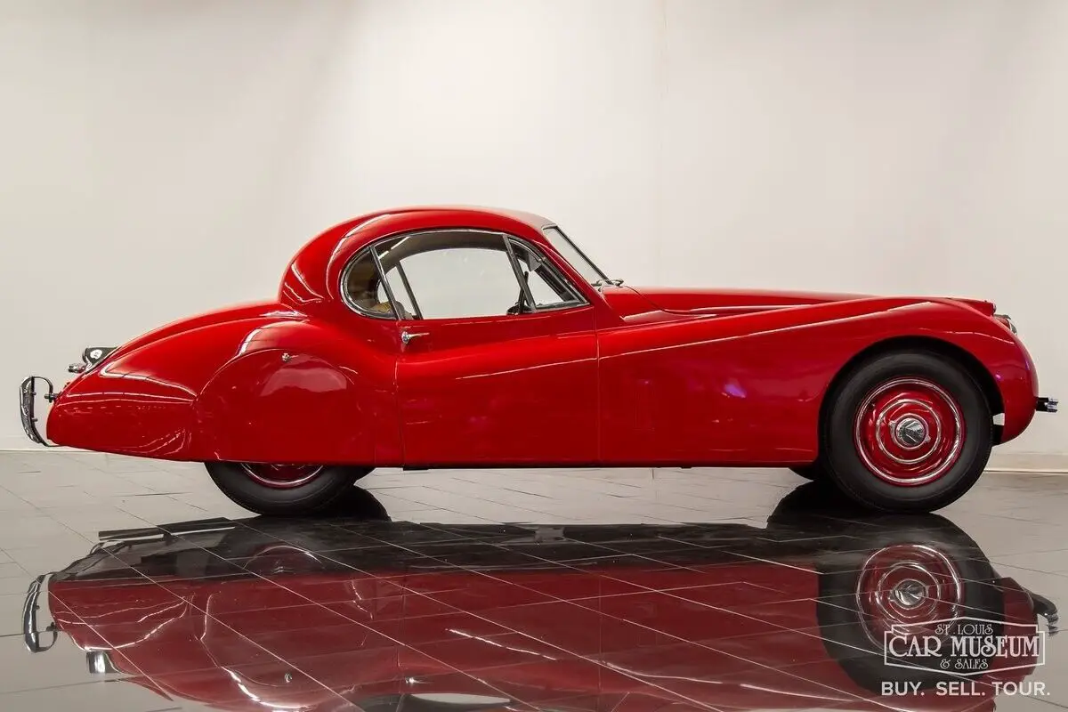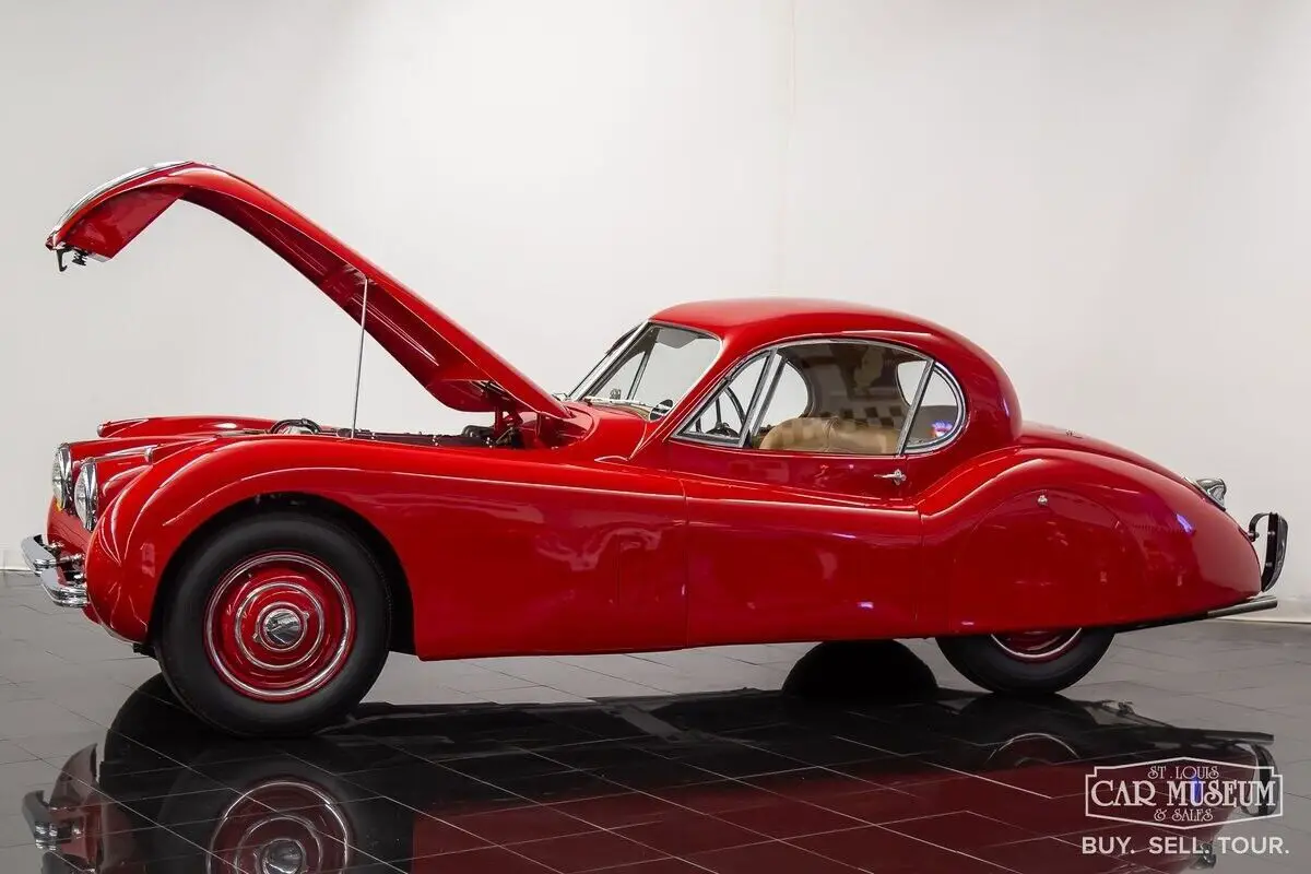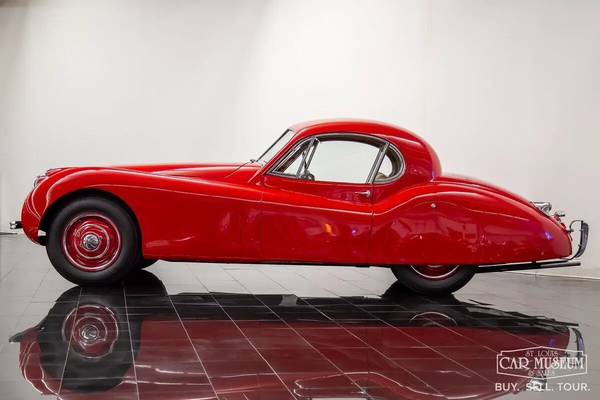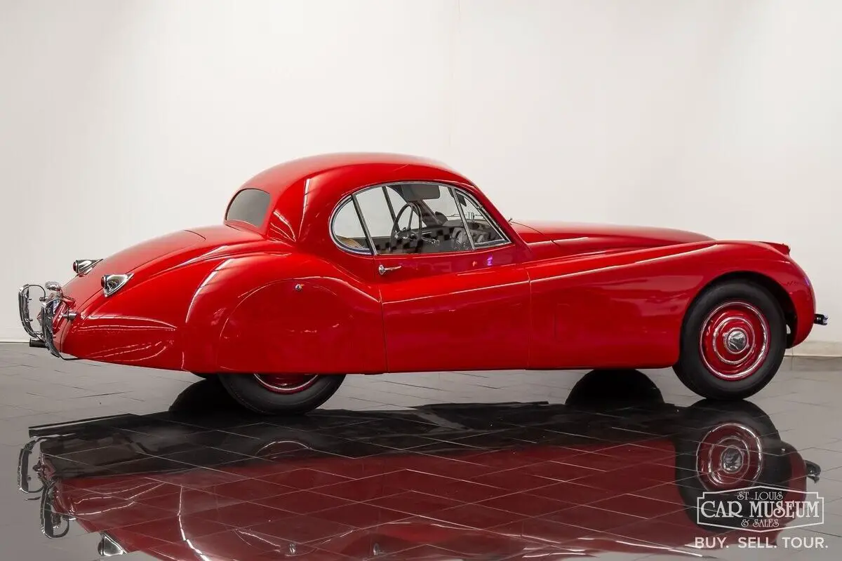 Details About Our Available Classic Jaguar: For sale at the St. Louis Car Museum is a rotisserie restored, 1952 Jaguar XK120 Fixed Head Coupe finished in Bright Red over Biscuit Tan leather interior! its original, number's matching 3.4L DOHC Inline 6-cylinder engine and head, along with its 4-speed manual gearbox, it comes equipped with traditional "discs and spats" and complementing black wall tires for a superb presentation! The car received a full nut and bolt restoration that quickly earned seven JCNA Concours Driven Division wins and a 100-point score at the Palos Verdes Concours D'Elegance. It is a remarkable example with special attention to detail throughout. The photo-documented restoration shows a true, body-off rotisserie restoration to a superbly survived, rust free XK120 FHC. The Heritage Trust Certificate shows it sold from Hornburg Jaguar of Los Angeles when new and remained a lifelong resident of California, before heading to Massachusetts for restoration between 2006-2009. It was stripped to bare metal, sealed with red oxide primer, and repainted professionally by Fiber Tech in a terrific shade of red over all new tan interior (originally silver over red), giving it a road presence that is easy to admire from every angle! It has been fully rebuilt as necessary with comprehensive drivetrain service by KTR Motorsports, a complete cloth-covered wiring harness, new suspension bushings along with Koni shocks, new Dunlop Roadspeed tires, exhaust system, and more. All chrome is in excellent condition as is the clear window glass. It returned to California soon afterwards where it would achieve JCNA honors at the multiple events it attended. Mileage on the restoration is estimated at just under 2,000 miles, and it continues to start, run, and drive with tremendous ease! The odometer reading shows only 29,835 which are said to be original to the car. It would join Richard Stephen's Academy of Art University Collection in 2010 where it would remain professionally curated in San Francisco ever since. Just 1,356 LHD Coupes would be produced in 1952. If you have been looking for a worthy Jaguar Fixed Head Coupe with certain show-winner appeal, look no further! Call today to schedule a test drive or to ask about financing and/or shipping this luxury classic! History About Jaguar's Famous XK120 Model: First appearing at the London Motor Show in 1948, design icon William Lyons was showcasing Jaguar's first sports car since the SS100 as the brand new XK120 open 2-seater. The response was immediately recognized as a success, and production began in alloy-body form. The car was named for its incredible top speed of 120 mph, and Hollywood movie icon Clark Cable was the first in line to have the world's fastest production car of the era! The car moved to steel bodies early on with 1950 production units to meet production demand. A new Fixed Head Coupe was featured at the Geneva Auto Show in 1951, providing greater comfort, a quieter interior, and luxury practicality. Particularly having refinements that included real burled walnut veneer dash & door caps, outside door handles, and roll-up windows featuring door vent glass & rear quarter glass, and accommodating cargo shelf behind the seats. The incredible shape of a Fixed Head Coupe is gorgeous, with a perfectly shaped teardrop roofline that provides a unique, curved shape to the side glass for a superb overall presentation! Questions about this 1952 Jaguar for sale? Contact Jon Faust at 855-586-3413 or email