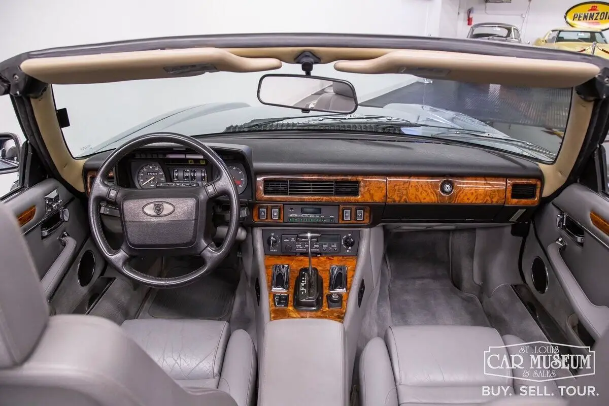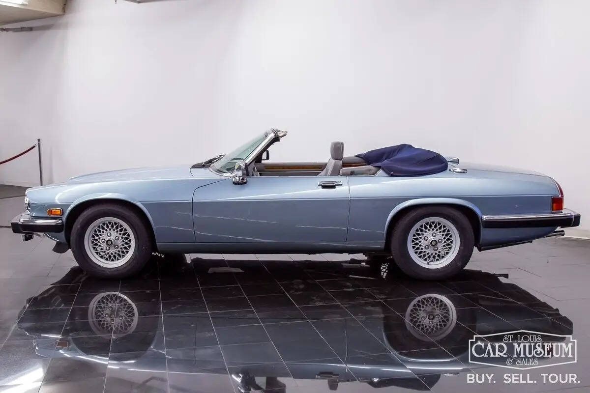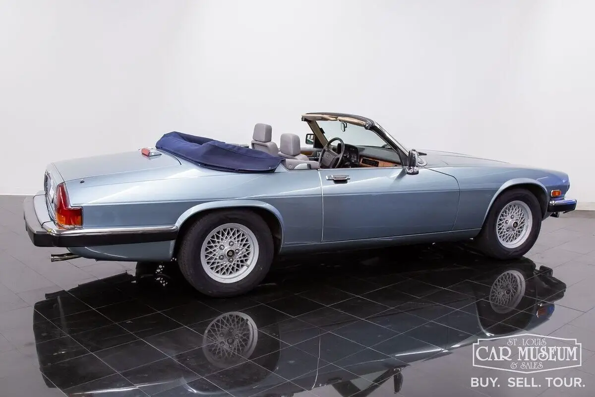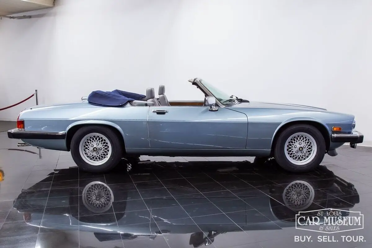 Offered here is a 1990 Jaguar XJ-S Convertible finished in a factory color combination of Diamond Blue Metallic over Savile Grey leather interior. Under the bonnet lies its original 5.3L High-Efficiency V12 SOHC power plant with durable 3-speed automatic. Features on this properly kept Jaguar include climate-controlled air conditioning, on-board trip computer, power windows/locks, power adjustable mirrors, cruise control, AM/FM/Cassette audio system, telescoping steering column, burled elm dash and door caps, rear locking storage compartment, body side moldings, glove box vanity mirror, locking gas cap, and more!