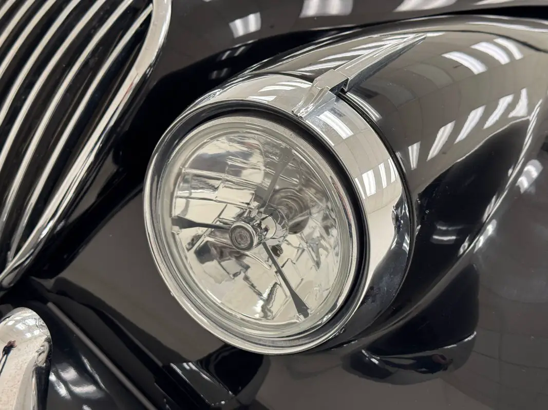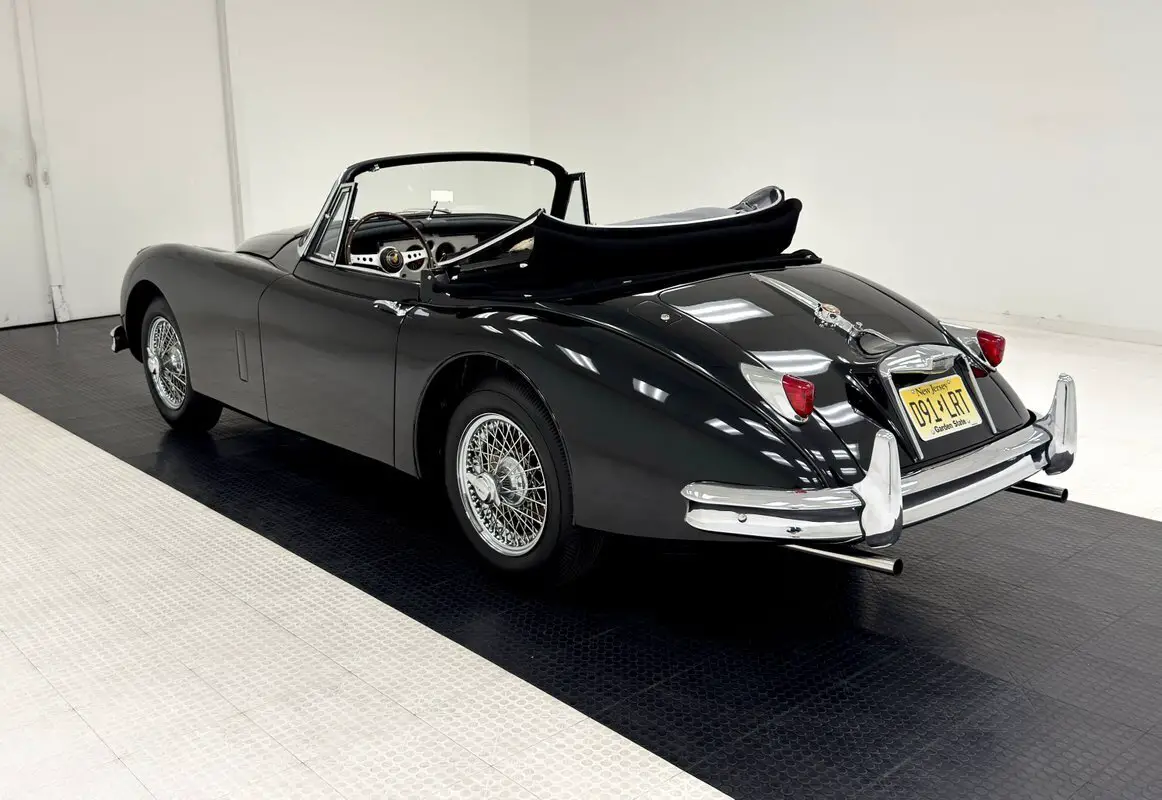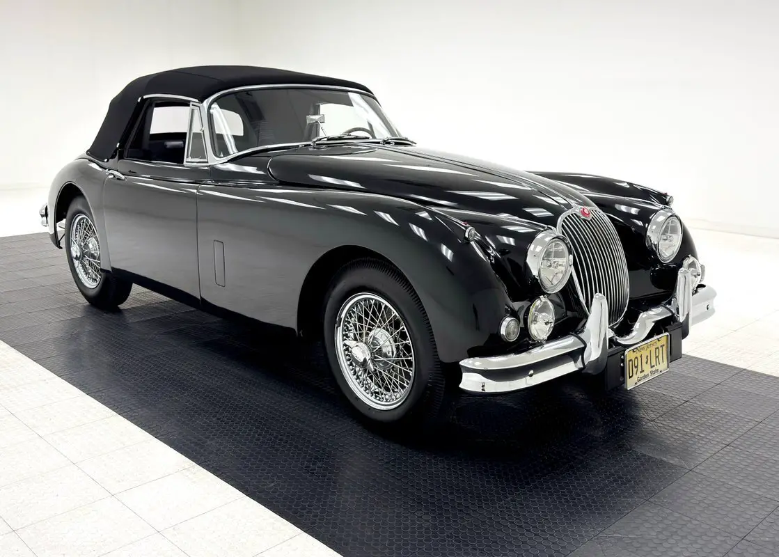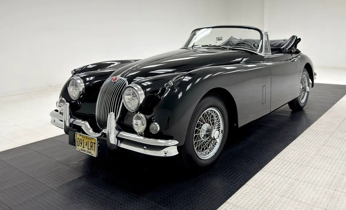 1958 Jaguar XK150 Roadster For consignment, a 1958 Jaguar XK150 showing 23,134 miles but the true miles are unknown. This is a triple black version with paint, top, and interior wearing this handsome color. Over four years, 9,395 examples of the XK150 were produced. Exterior We all have our favorite British roadsters, but objectively speaking, the lines of the XK150 are truly stunning and dipped here in a vat of black ink which only makes the chrome pop in contrast, from the streamlined grille, the bumper that contours to that grille, the light rings, and the 16-inch chrome wire wheels. Not to be outdone, the polished frame of the slender windscreen also shines and meets vent windows at the corners. The rear is a work of art with stainless trim creating a mid rib over an ornate plate surround, a wraparound bumper, two polished tips, and bold chrome housing on the diminutive tail lights. Swooping front fenders create a cavernous space to the hood from which the headlights emerge from dramatic, cylindrical protrusions, while large fog lights are propped up on the bumper. The canvas black top is in immaculate condition and its plastic window remains clear. The paint and brightwork are very nice and the only imperfection we note is a paint scrape on the inside of the door on the latch panel. Interior Stately door panels in black are smooth and square and unobtrusive while the black leather seats, where you might expect buckets, is actually a split bench with cushions designed for comfort more than sport and visually connected with a pleated filler over the center hump. There are two seats in the back, but they are more suggestion than a usable chair, at least for adults and better suited for storage. A wood rimmed steering wheel connects to the Jaguar hub with three spokes and the instrument cluster is positioned in the center, black faced gauges on an aluminum base, handsome, simple, and elegant. Black carpet surrounds the floor mounted shifter with a wood handle that shows some patina. The boot is lined with a vinyl pad and presents cleanly while keeping the black theme alive. Drivetrain Under the hood is a stunning rebuilt 3.4 liter DOHC inline 6 cylinder rated at 190 horsepower and fueled by a 2 SU H6 carburetors. A 4-speed manual rows through the gears and sends power to the rear axle with a 3.54 ratio. Disc brakes are supplied front and rear. Visually, a vintage Jaguar engine is about as good as it gets. Undercarriage Clean underneath with minimal surface rust and no errant fluids are noted. The dual exhaust enters a gleaming pair of stainless steel mufflers and continues on its shiny way to the tail pipes which find their way to the back. Suspension includes torsion bars up front and leaf springs in back. Drive-Ability This is to many, the ultimate British roadster. Class mixed with some performance in an elegant design that almost begs to be posed in front of a house with columns. For now, it will have to settle for our mall from the 1980's, but it still looks good! And rides well in addition, a smooth runner with very nice handling and a fantastic and understated cabin. During our short loop, we note that all functions provided operate just as they should. While Classic Auto Mall represents that these functions were working at the time of our test drive, we cannot guarantee these functions will be working at the time of your purchase. According to the book Treasury of Foreign Cars, the new Jaguar XK 150 coupe is the first production car in the world with 4-wheel disk (sic) brakes. The internet claims otherwise, citing the 1949 Crosley and 1956 Jensen model 541. But we like what the 1957 book has to say and even though you would not need bragging rights with this beautiful car, it's still a fun fact. Here's another fact, this is a true classic in every sense of the word. The Brits own vintage roadster perfection and it's embodied in this 1958 XK150. Classic Auto Mall is home to more than 1,000 classic and collectible vehicles for sale via consignment in a climate controlled 336,000-square foot showroom (that's more than 8 acres!). The largest single location consignment dealer of classic and collectible vehicles in the country is located in Morgantown, Pennsylvania, just 1-hour west of Philadelphia off Exit 298 of the I-76 Pennsylvania Turnpike. For more information visit or call us at 610-901-3804. Contact us anytime for more information or to come see the vehicle in person. There is no guarantee of mileage. A $299 Dealer Administrative fee is not included in the advertised price. With so many great cars, you know we have a lot to talk about, and we do that each week on the Classic Auto Mall Podcast with host Stewart Howden. Stewart discusses new inventory as well as trends in consignments and car prices, while interviewing celebrities and automotive professionals about amazing cars and their history. Tune in each week to the Classic Auto Mall Podcast wherever you enjoy listening. You can also watch on YouTube!