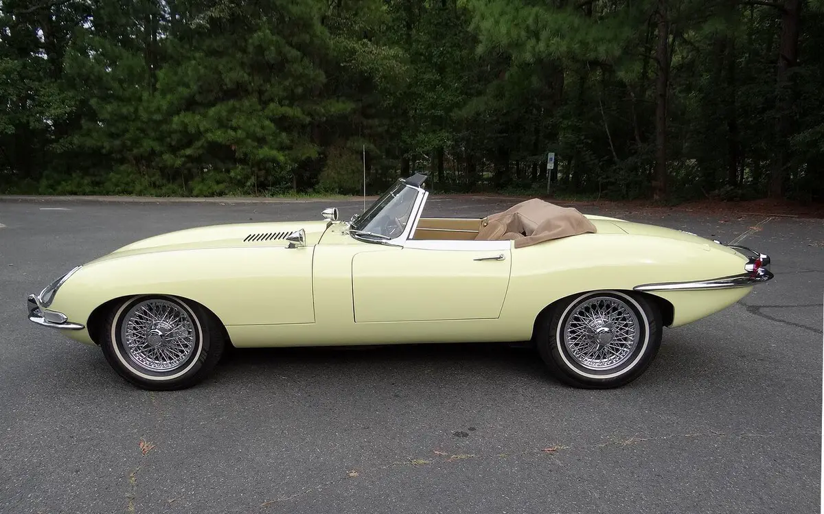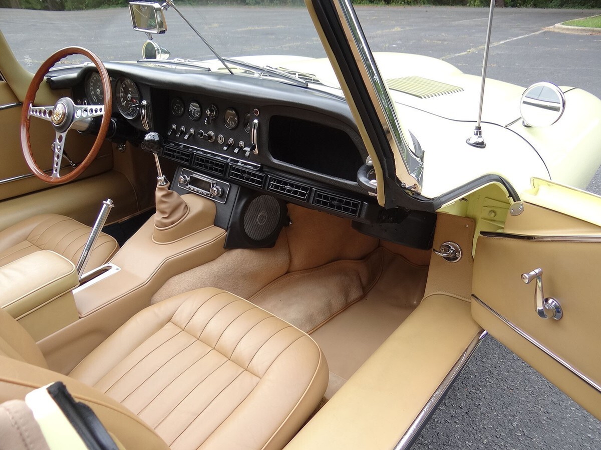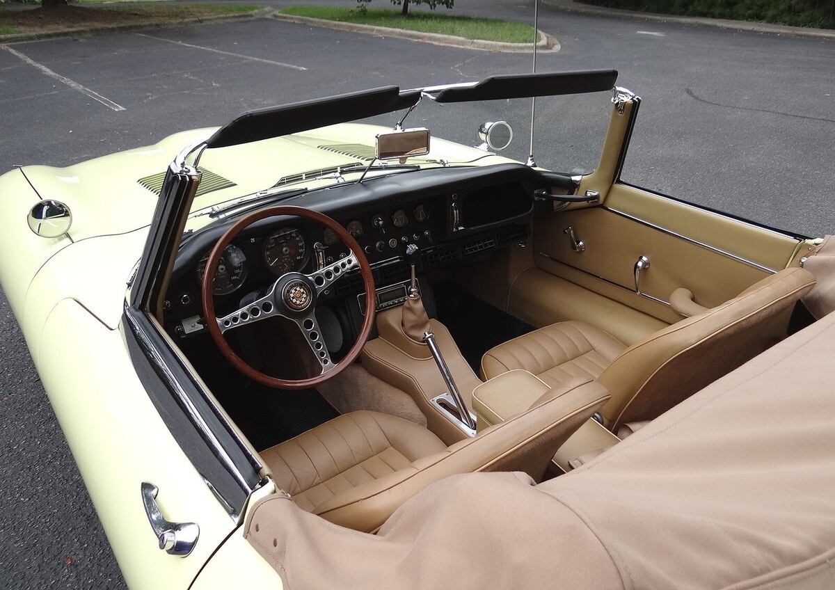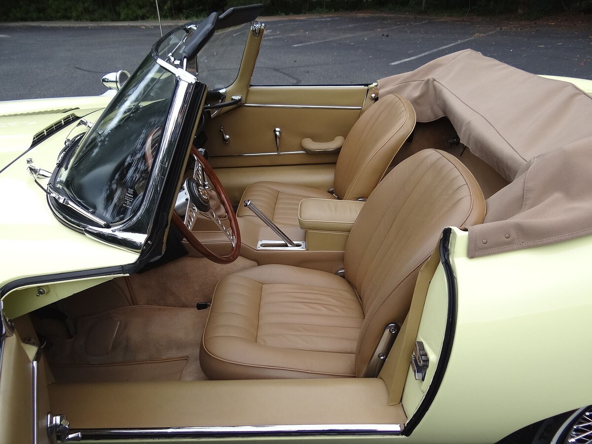 Email: marc@motorcartrader.com Phone: 980.216.8550 1966 Jaguar E-type Series 1 Roadster with 5-speed and Air Conditioning. At MotorCarTrader.com we take a different approach to buying and selling our classic Jaguar E-types and Classic Sports Cars. As opposed to pushing a large volume through to quickly sell with extensive detailing prep and professional photography, we focus on going through each car mechanically to make them excellent and reliable driving cars. We have bought, sold, consulted and restored over 250 Jaguar E-types, so know them very well, how they are supposed to drive and what models need sensible upgrades to make them great drivers. Our cars are about value, the driving experience and the heavy work is already completed. In addition, we are fully transparent with imperfections or additional needs our cars may have if any.We are thrilled to offer another exceptional Jaguar E-type for sale.This 1966 Jaguar E-type Series 1 4.2 Roadster was built on December 20th of 1965 and was originally dispatched on January 19th of 1966. This wonderful Jaguar XKE was previously fully restored and finished in the stunning color combination of Primrose with Biscuit interior. The tan canvas convertible top and boot cover go nicely with the interior and beautiful Primrose Paint. The Jaguar presented here does have the original engine (matching cylinder head and engine block) as per the Jaguar Daimler Heritage Certificate and has close to $30,000.00 in driving upgrades. In other words, if you purchased a Jaguar E-type Series 1, 1.5 or 2 Roadster or Fixed Coupe, it would cost another $30,000 plus to replicate these upgrades. It would also cost substantially more than this to replicate with an original rebuilt engine as sound and tight as this one. This is the BEST driving Jaguar E-type on the market today. If you do not like driving cars and don’t like reliability, this Jaguar E-type is not for you. The driving upgrades and engine make this car highlighted by a new 5-speed Tremec gearbox with an aluminum fly wheel. The 5-speed transmission shifts silky smooth and at 80 mph the RPMs are around 2,500. In addition, an aluminum radiator has been installed with an electric fan to keep the temperature cool in any climate. Furthermore, a Retro Air Conditioning system has been installed which keeps the cabin cool and far superior to any factory Jaguar E-type AC system. It blows very cold. A more efficient alternator along with the new Air Conditioning compressor was installed along with all new AC components and hoses. A smaller 15” diameter original style steering wheel was also installed to which gives more legroom and has a better feel than the slim and brittle 16” steering wheel. We also installed a new retro radio with Bluetooth connectivity and a built-in microphone for hands free mobile phone communication. A full stainless-steel exhaust was installed as well with new porcelain exhaust manifolds. A gear reduction starter has been installed along with electronic ignition, so starting this Jaguar is easy and she fires without any issues. The brake system has been upgraded with ceramic brake pads and the brakes have been completely gone through. All the wiring has been gone through and upgraded interior LEDS lighting has been installed which make for easier reading of the gauges at night. This also goes along with halogen headlamps which are also an upgrade. This is what the Jaguar E-type should have been when it first came out.This Jaguar E-type Series 1 Roadster is the best driving Jaguar E-types we have ever had, and we have owned a lot of them. The engine is very strong with excellent compression 165psi to 175psi across all 6 cylinders. The oil pressure is also excellent as we installed a “wet gauge” which by passes the temperamental oil sender and gives an exact and accurate reading of the oil pressure. The clutch feels excellent with no slippage and the gearbox is quick to shift between the gears. Overall, the handling of this Jaguar is on point and there is no shake in the steering wheel, pulling upon hard braking or any loose feel whatsoever. This car drives tight and accelerates rapidly with a smile eliciting torque. This is what a Jaguar E-type should be and no they do not all drive like this one does. The Jaguar E-type shown here would do well at car shows and we would call this a show driver car, but where this Jaguar also shines is on the road. If you are looking for a reliable and fun Jaguar E-type Series 1 Roadster to drive just anywhere with a plethora of creature comforts and sensible upgrades, this is your car, and you will be hard pressed to find a better driving road car Jaguar E-type.