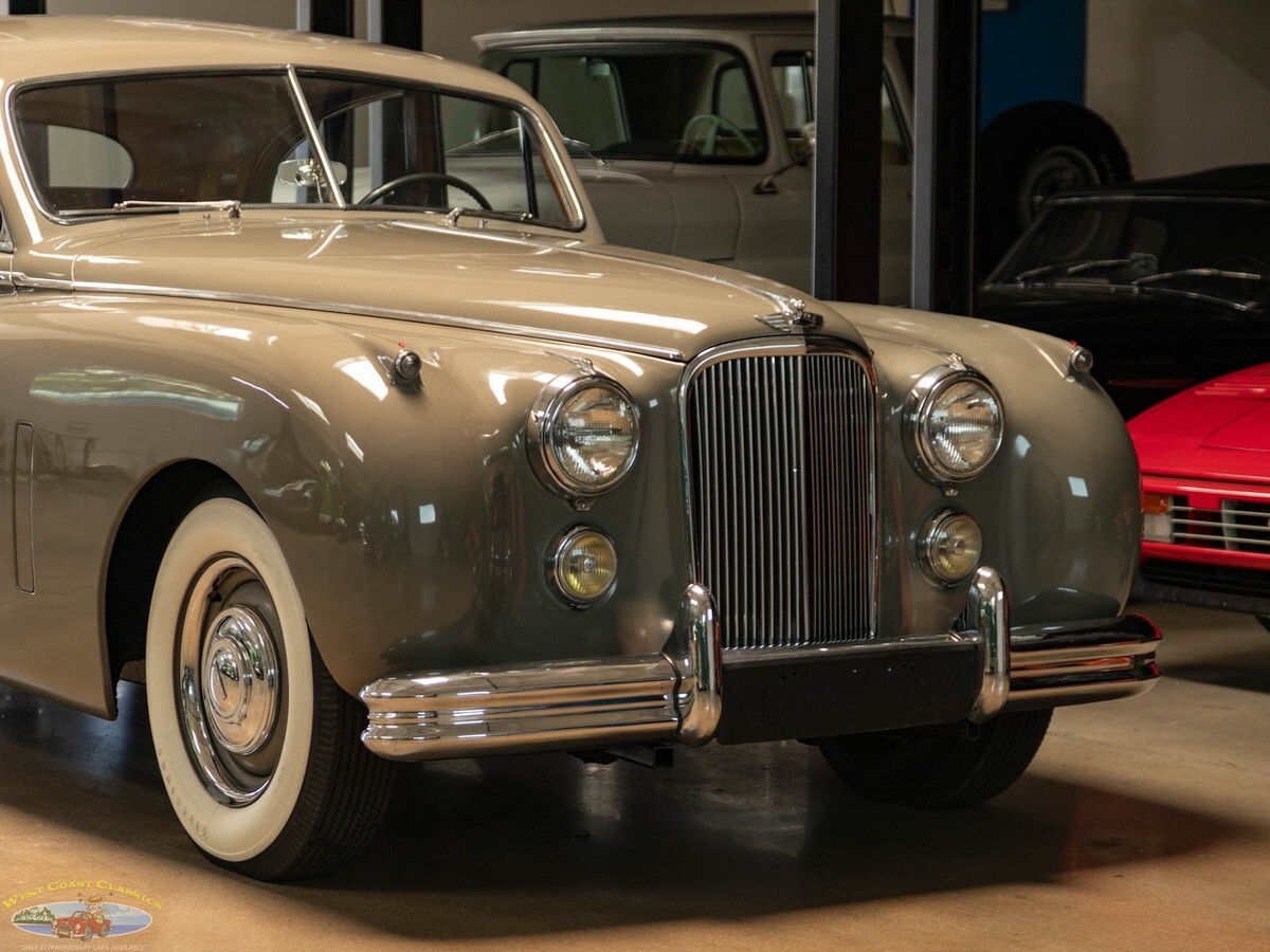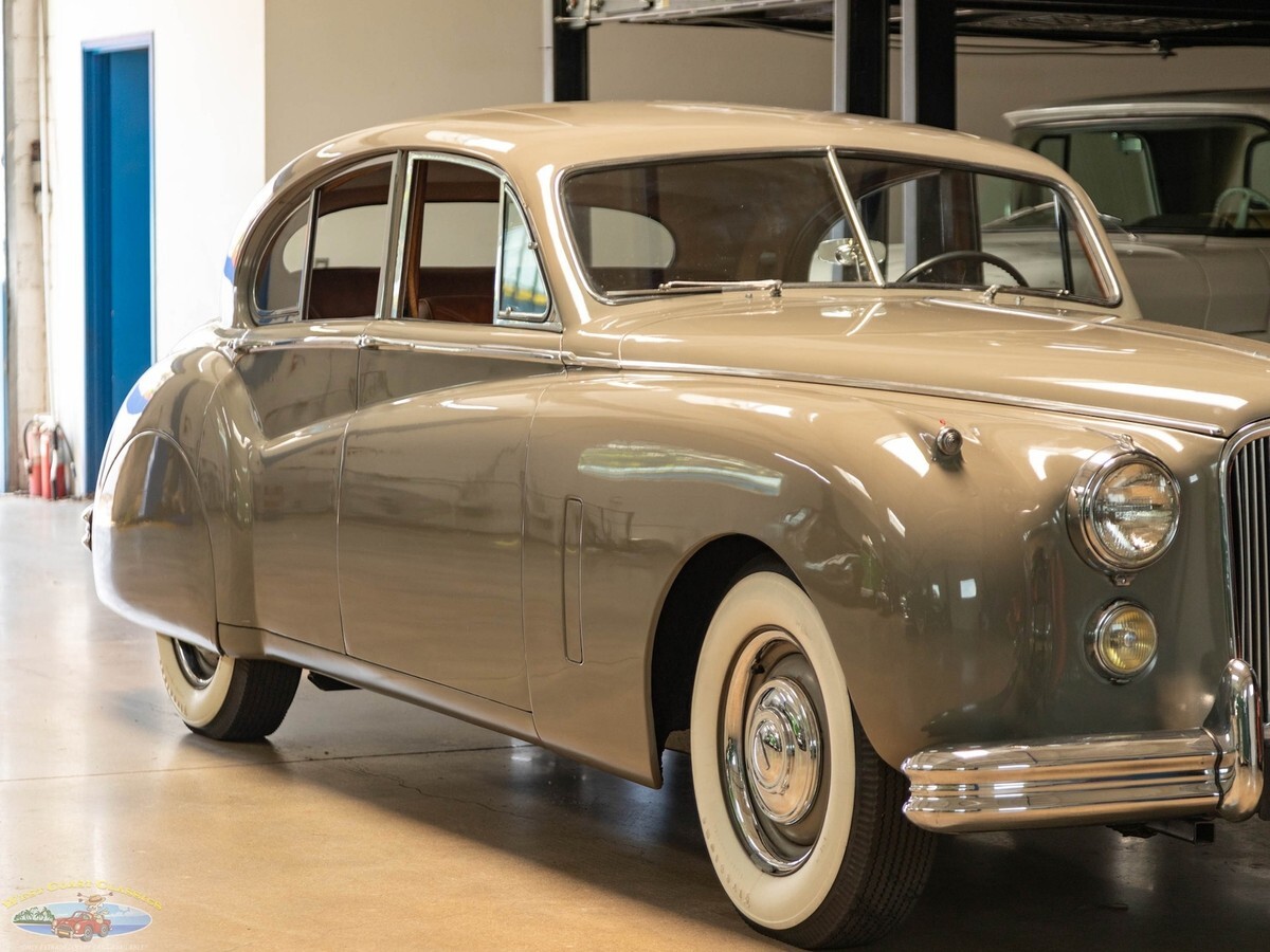 West Coast Classics are proud to present an absolutely exceptional example of this 1954 Jaguar Mark VII 3.5L 6 cyl Sedan with believed to be an original 25K miles, elegant and luxurious, this Jaguar is finished in its original 'Dove Gray' factory color paint with its original 'Natural Saddle Tan' leather interior compartment which has been treated to all new leather upholstery on the seats with the original door panels in a darker Saddle material that is soft, comfortable and pleasing to the eye. The dash board and gauge set remain original to the car and the headliner also appears vintage. A full sliding moon roof is found above the drivers area. An original Road Speed rim is found in the tidy and very original luggage compartment and the Dunlop spare tire is likely an original to the car as well. Owners manuals with prior owner information and maintenance books are also included with purchase of this grand automobile along with a 'Jaguar Heritage Certificate' to confirm its originality.Built on 30th April 1953 and originally sold on 28th October 1954 by 'Hoffman Motor Car Company' of New York in 'Dove Gray' with a Tan leather interior.Vin/Chassis # 736352 BWEngine # R 4280-8Body # LO13231Gearbox # J1290The Jaguar Mark VII evolved from the interim Mark V, which had looked like the pre-war Mark IV, except with long flowing separate fenders. Bentley had already used the name Mark VI, so Jaguar skipped to the next Roman numeral. The body was now full-width, with slab sides and the suggestion of fender lines, but the Mark V roofline was retained and the grille also bore the same Jaguar signature.Inside, the burled walnut dash was crammed with gauges and the engine had been moved forward, which added three inches of leg space for the rear seat passengers. The new trunk also had a vertical spare wheel and was significantly larger. The Mark VII was able to cruise at 80 mph easily, especially with the optional overdrive gearbox, available in 1954. 'The Motor' magazine tested a Mark VII at a top speed of 101 mph and 0-60 mph in 13.7 seconds. Los Angeles Jaguar dealer Peter Satori did even better, with 0-60 in 12.6 seconds and a top speed of 104 mph.The Jaguar Mark VII is a four-door luxury car built in Coventry, England from 1950 to 1956. Even in its original 1950 form, the Mark VII could exceed 100 mph, and in 1952 it became the first Jaguar to be made available with an optional automatic transmission, as per this particular example.The Mark VIIs were legendary as being highly successful in racing and rallying and both variants of the Mark VII won race victories, and an M version won a Monte Carlo Rally. Factory-entered Mark VIIs won the Daily Express International Trophy Production Touring Car race at the renown Silverstone race five years running, and twice took the top three places. None other than Stirling Moss won in 1952 and 1953; and came 2nd and 3rd in 1954. In August 1956, at Road America in Elkhart Lake Wisconsin, a Mark VII averaged 59.2 mph to win a 100-mile NASCAR Grand National race for cars up to 3500 cc.