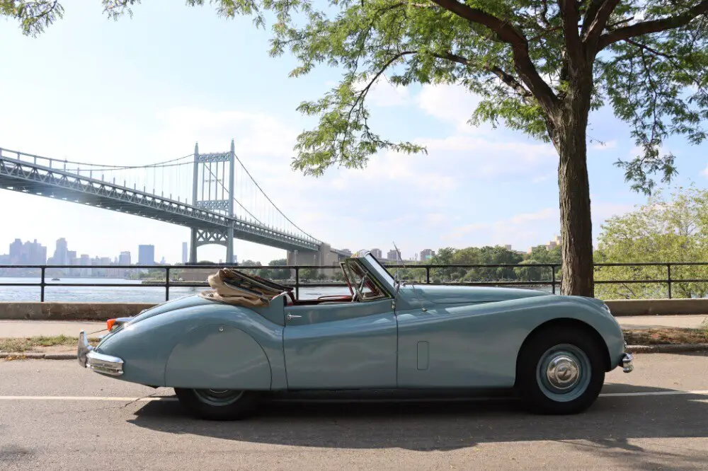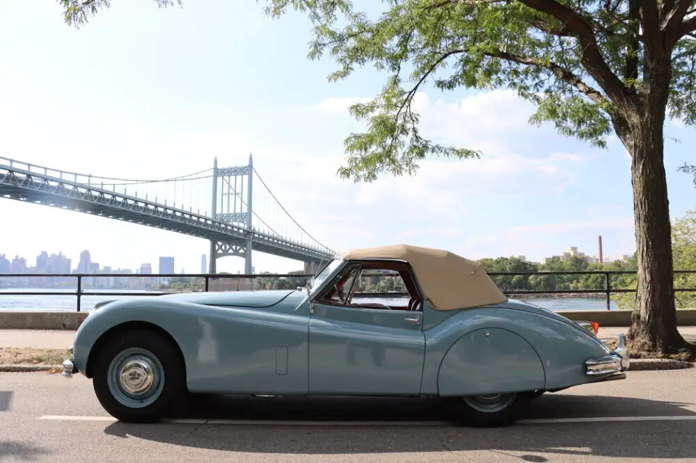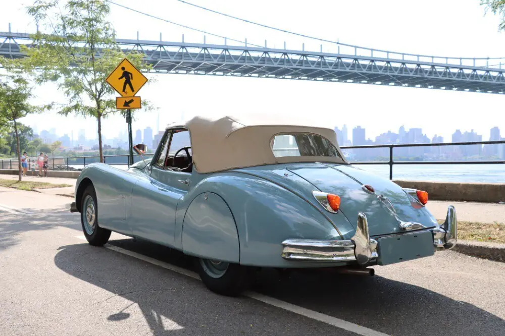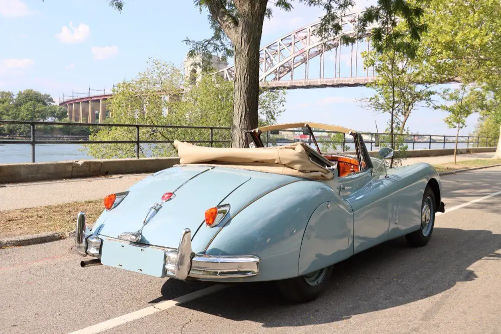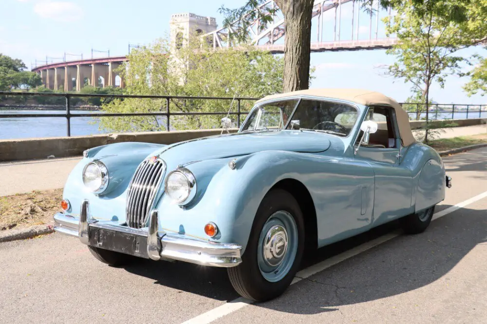 This survivor condition 1956 Jaguar XK140 Drophead Coupe is a matching numbers example and a two owner car with 16k original miles from new. Light blue with original red leather interior. It's had just one repaint in its original color and is a solid rust free car. Mechanically strong, it starts right up, runs, and drives well. We would still recommend servicing at this time including brakes and tires. This highly original XK140 Drophead Coupe is elegance personified and represents a fantastic investment in today's market. A wonderful opportunity to acquire Jaguars iconic mid-1950s sports car with incredibly low mileage. Matching Numbers Example 16k Miles from New Two Owner Car Highly Original Survivor Mechanically SoundOrg: $107,500