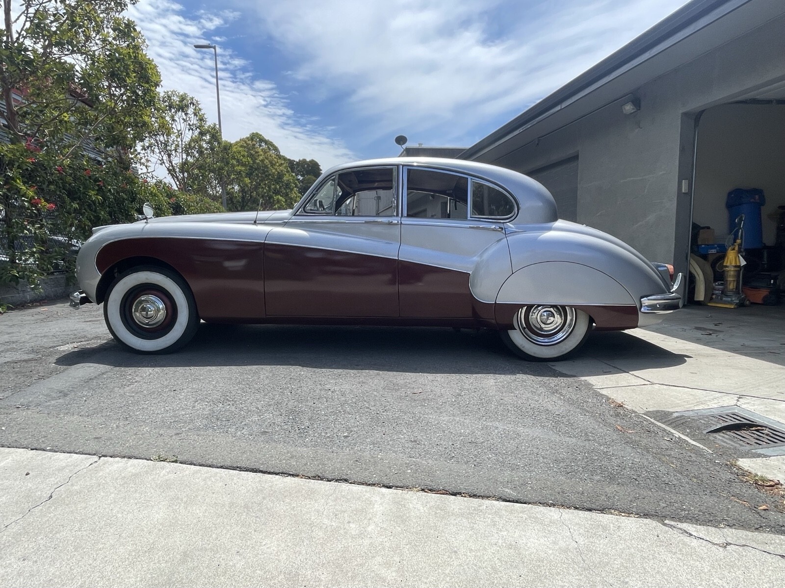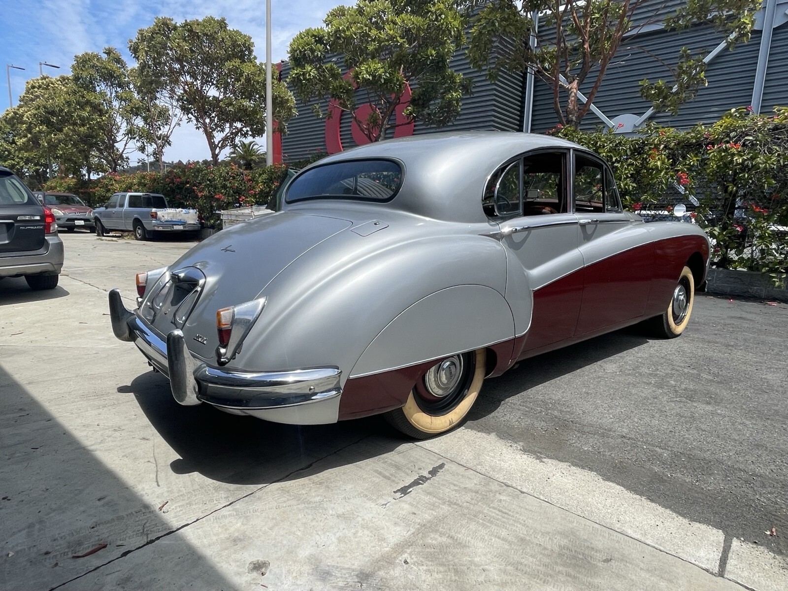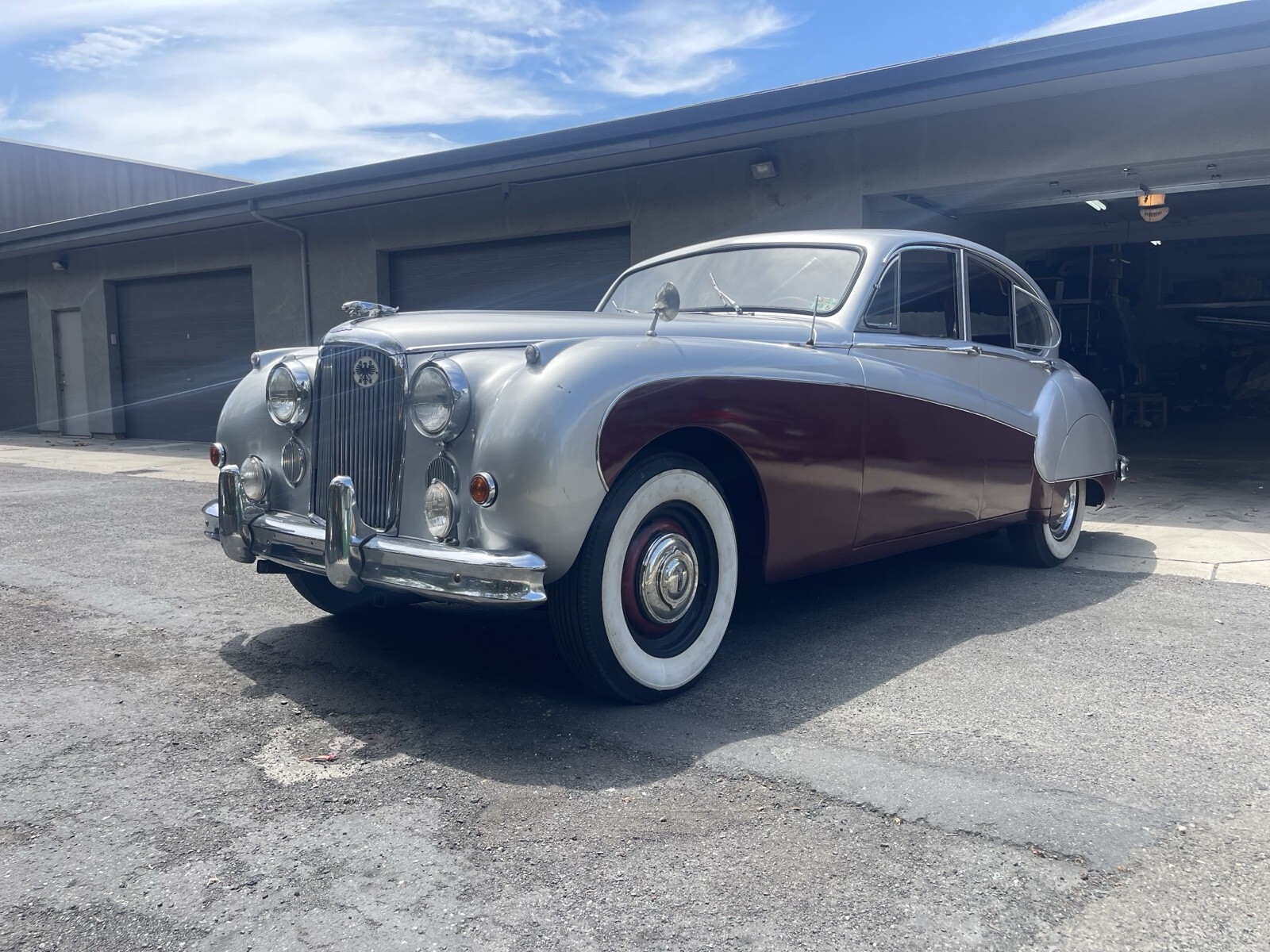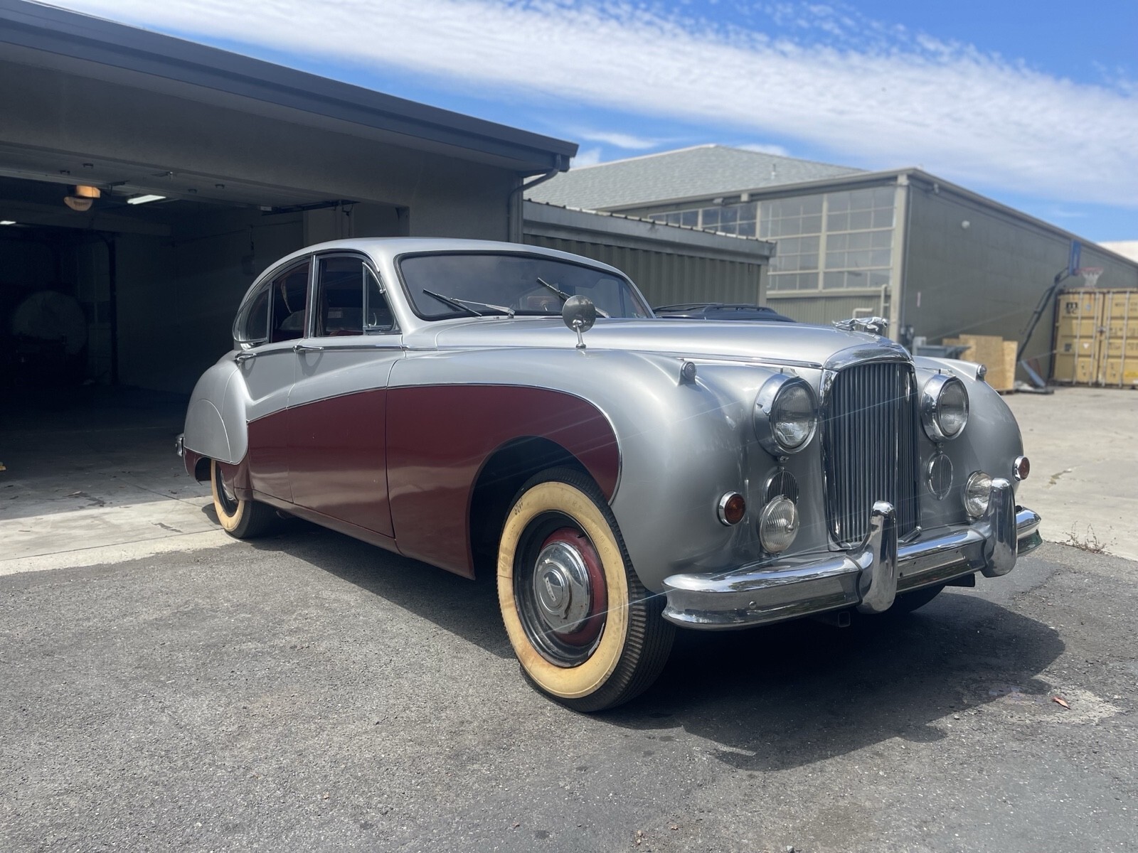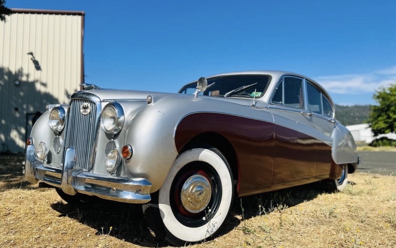 I acquired the vehicle in early 2024 from the estate of a person who had the car since 1994. Finished in silver and maroon over red leather upholstery, the Jaguar is equipped with a 3.8-liter inline-six and a four-speed manual transmission with overdrive as well as dual SU carburetors, a sunroof, driving lights, four-wheel disc brakes, rear-wheel spats, hubcaps, wood interior trim, and rear tray tables. The car will turn over and run with some starter carb but the SU carbs need a rebuild and all the brakes pads have been changed but still need to be bleed. This left-hand-drive Mk IX is now offered with a clean California title in my name.