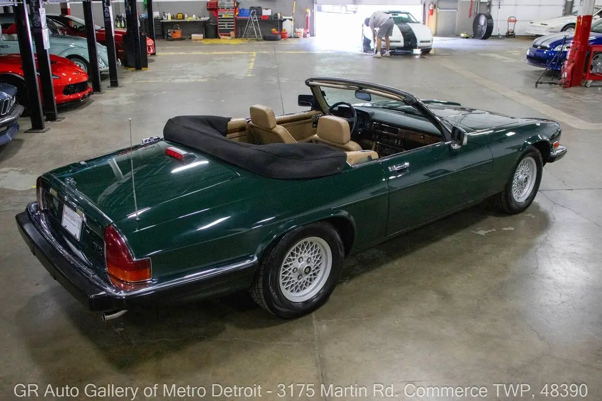 GR Auto Gallery is pleased to present this 1990 Jaguar XJS Convertible for your consideration. Finished in classic Jaguar Racing Green over a Tan leather interior, this elegant cruiser has just 28,812 original miles and has been meticulously cared for by its original owner since new. Under the hood lies Jaguar's legendary 5.3-liter V12 engine, paired with a smooth automatic transmission, delivering a refined yet powerful driving experience. In 2024, over $12,000 in service and maintenance was completed, including new fuel injectors, a new fuel tank, starter, spark plugs, wiring harness repair, reassembled air conditioning compressor, new front and rear brake pads and rotors, all new brake hoses, a new power steering rack, new exhaust manifold, and more. Features include a powered convertible top, heated seats, power windows, chrome front and rear bumpers, spacious trunk, rear stow-away compartment, full-size spare tire, and elegant faux wood grain interior accents. Drive this one out of our showroom or have us assist with shipping it to you anywhere in the United States! Don't hesitate to call us with any questions or for more information.