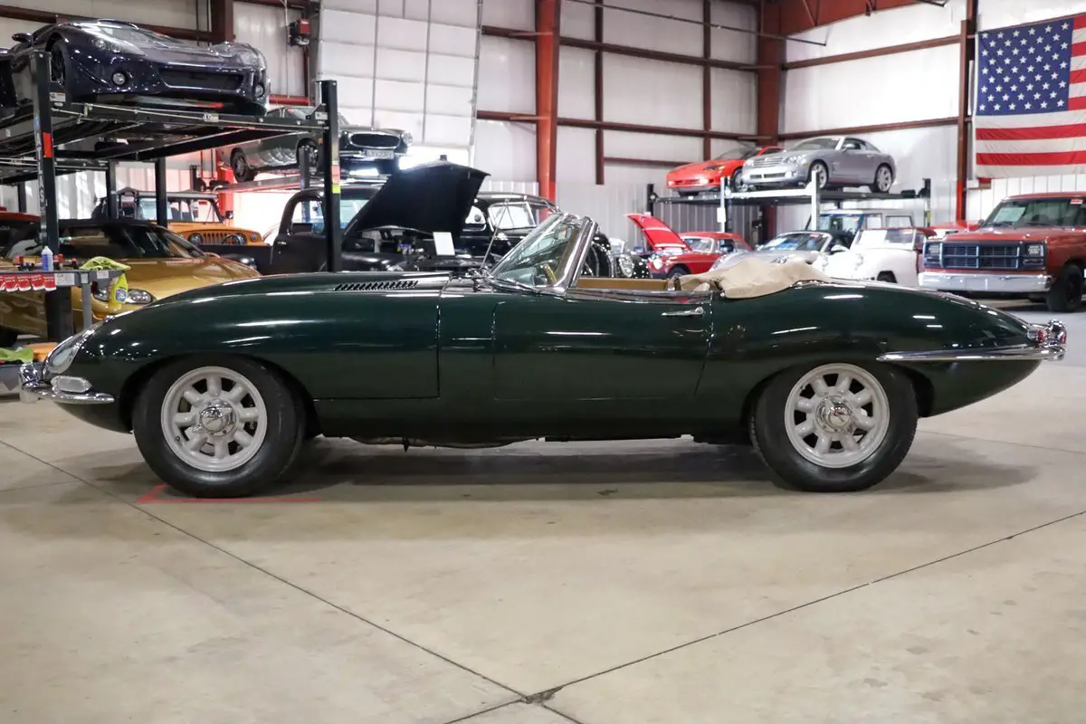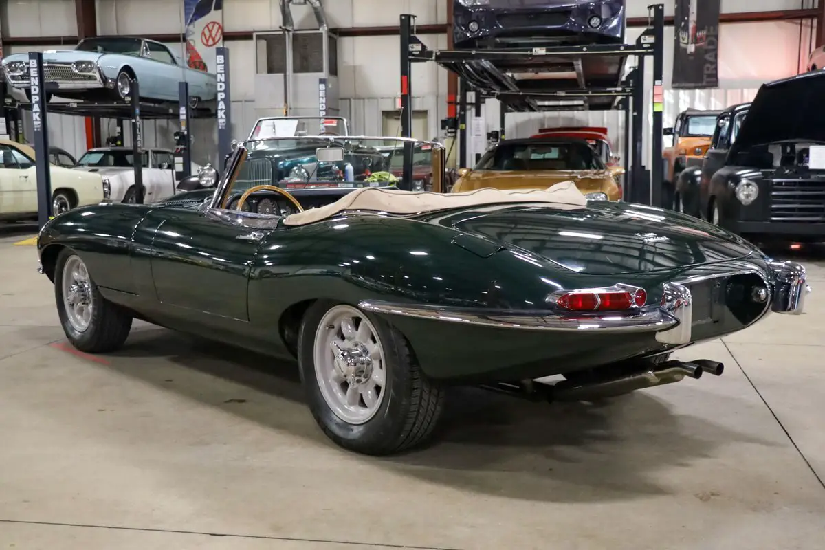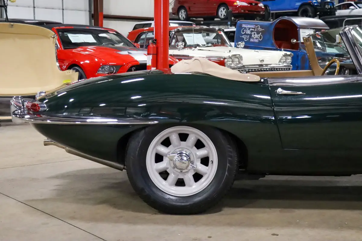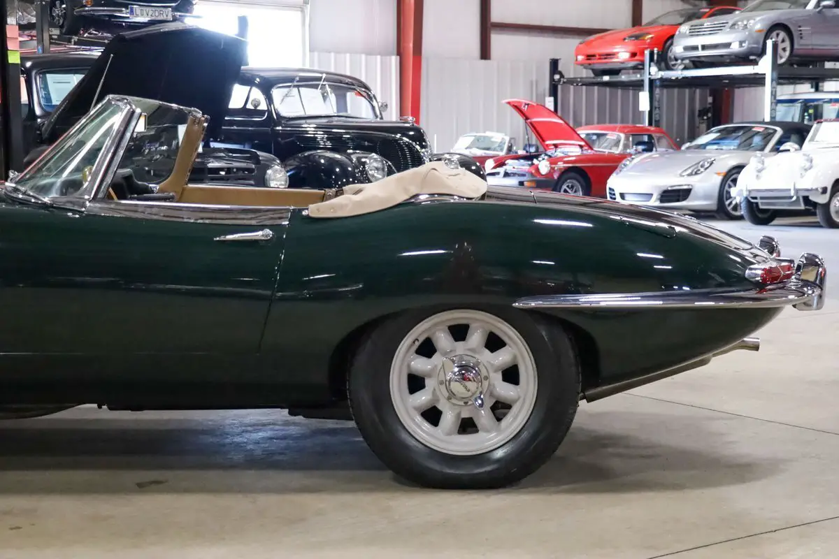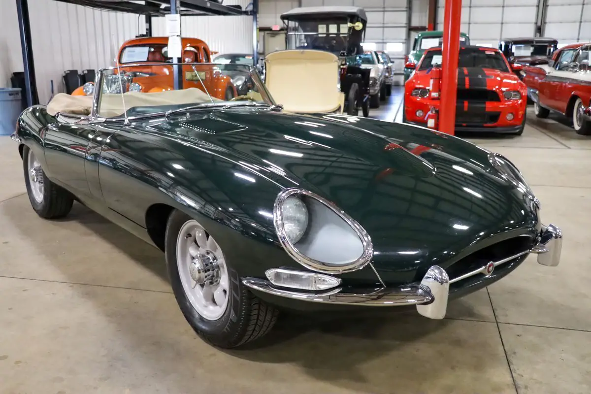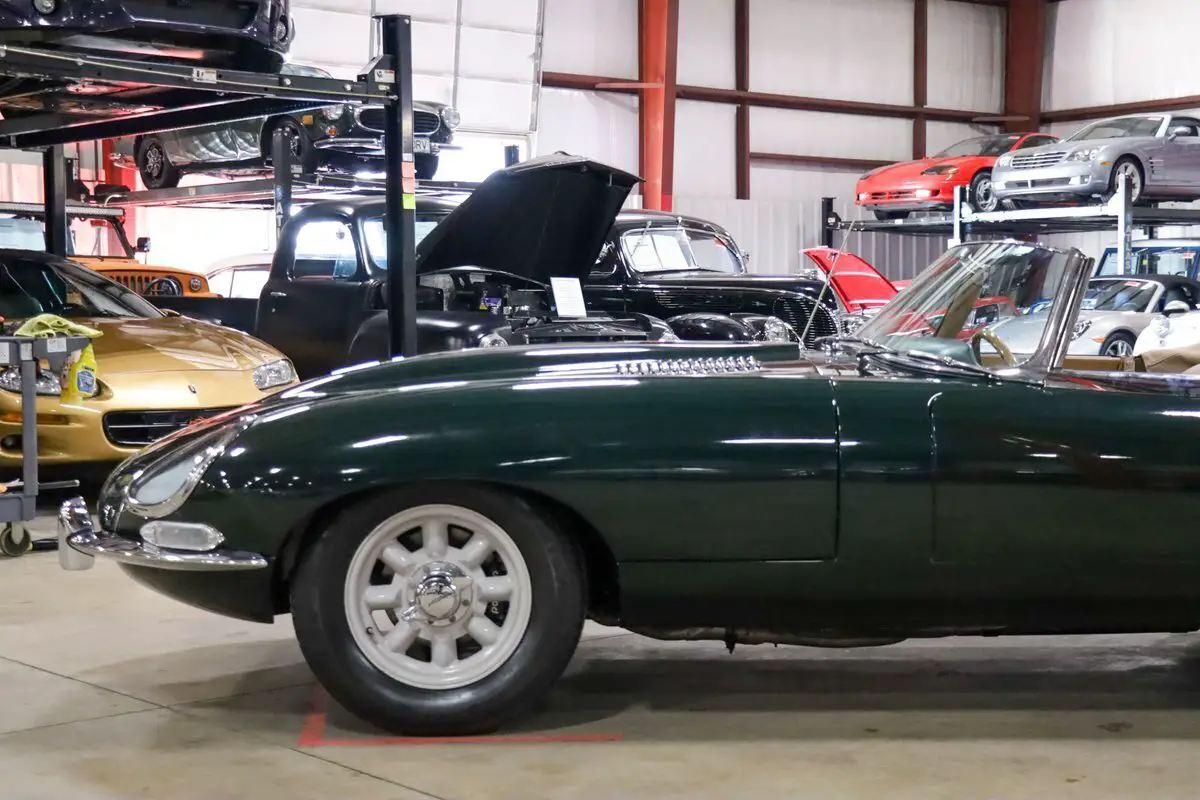 Draped in classic British Racing Green, this XKE showcases coveted Series I features, including the sleek, enclosed headlight design and gleaming chrome accents throughout. Minilite Jaguar race wheels with two-ear knock-offs make for a sport-styled appearance, while Wilwood disc brakes provide excellent stopping power. Adding further versatility, the original removable hardtop means you can enjoy it as either an open roadster or a closed coupe, perfect for any weekend adventure.