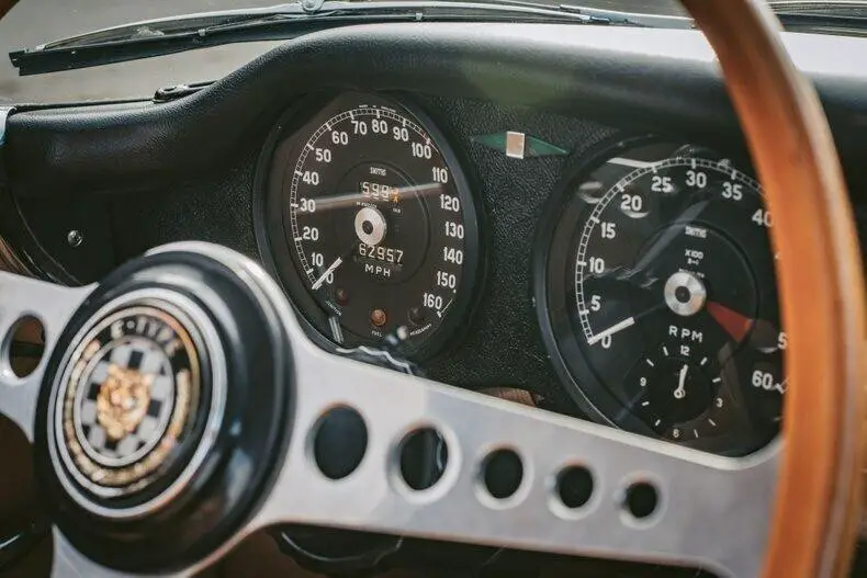Under the hood, this E-Type features a 3.8-liter inline-six cylinder engineJaguar?s original powerplant for early Series 1 models. Known for its smooth operation and strong performance, this engine is paired with an upgraded 5-speed transmission that enhances drivability while retaining the car?s vintage charm. The addition of an upgraded exhaust system not only improves performance but also delivers a throatier, more engaging sound that suits the sporty character of the car.