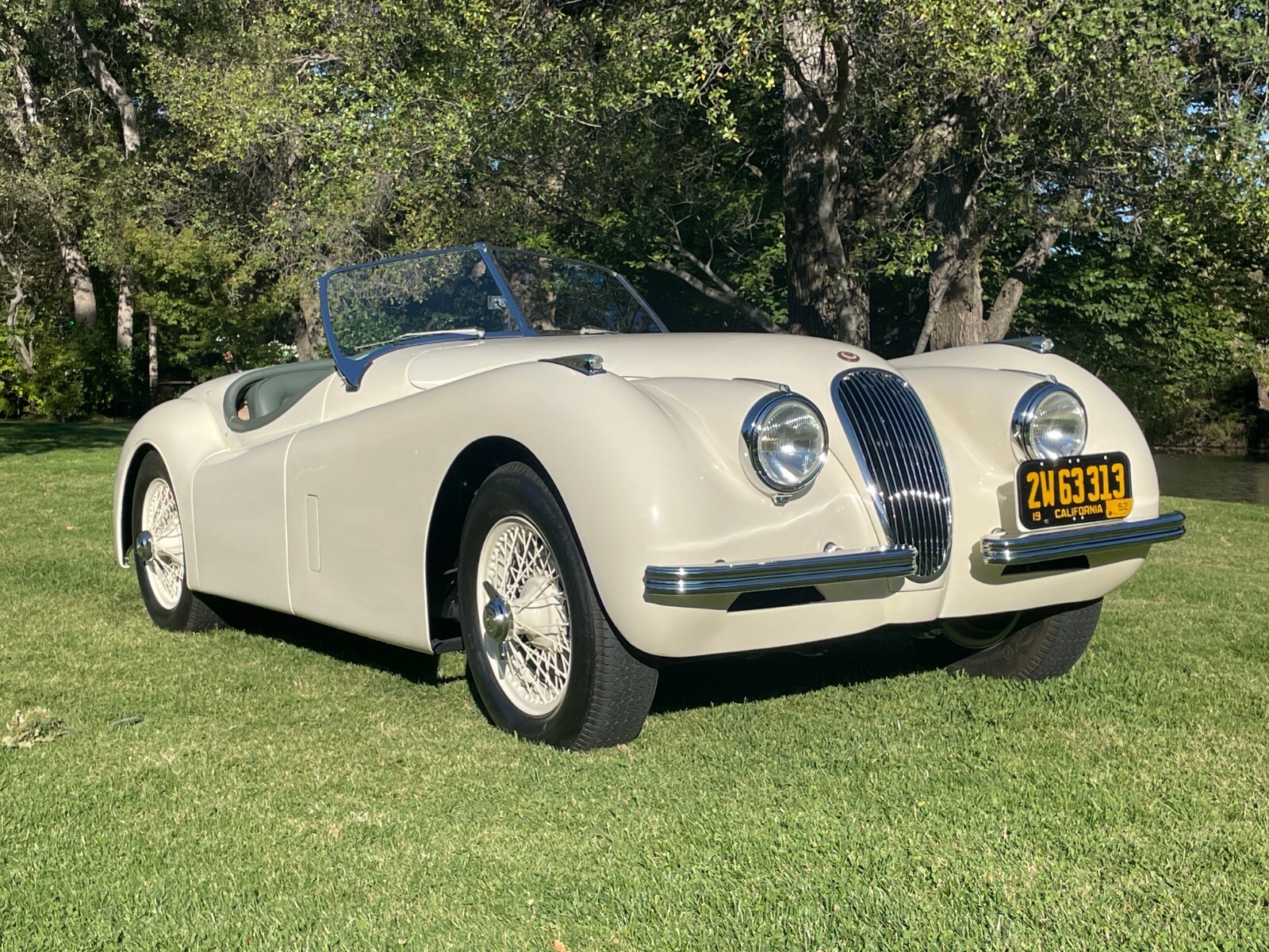 As recorded on its Jaguar Heritage Trust Certificate (included in sale), this XK 120 was completed on 25 June 1952, finished with a factory special order color combination of Cream over Suede Green interior with a Fawn soft-top, side curtains and tonneau cover. Most importantly, the Certificate confirms this car retains its numbers-matching chassis, head, block, transmission and body.