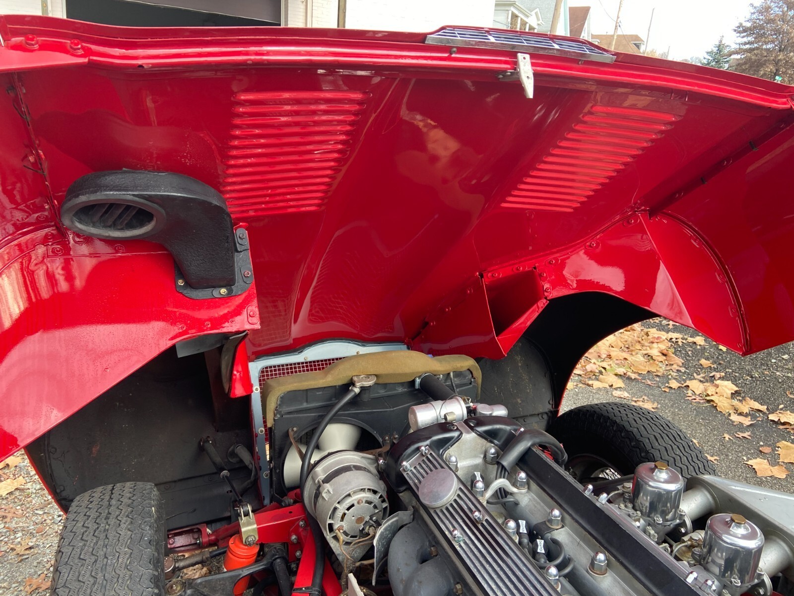 Finished in a striking Red exterior with Black interior, the car was stripped and professionally repainted in 2018 by a respected local restoration shop. They reported the body to be solid, with much of the original paint still present before refinishing.