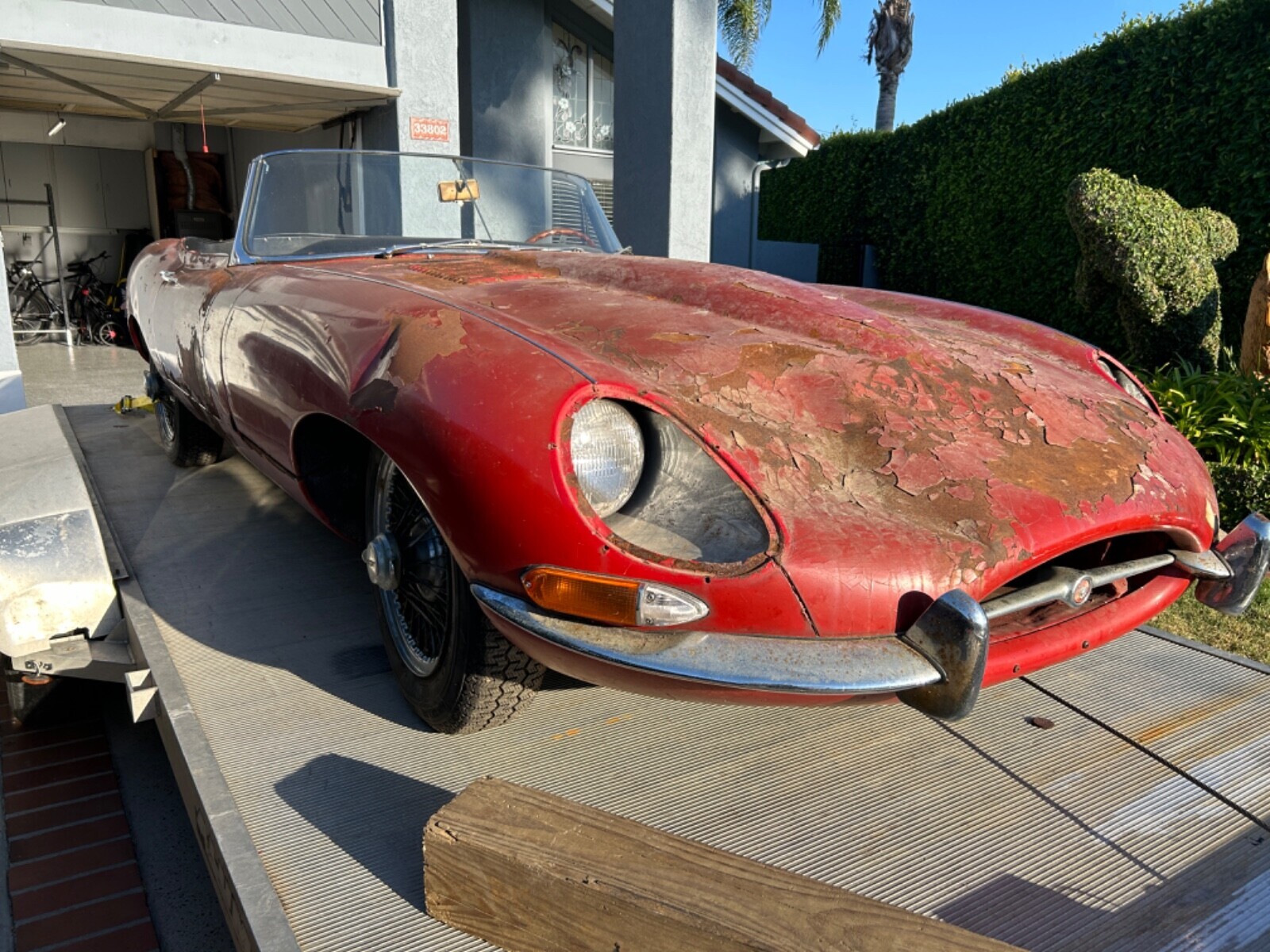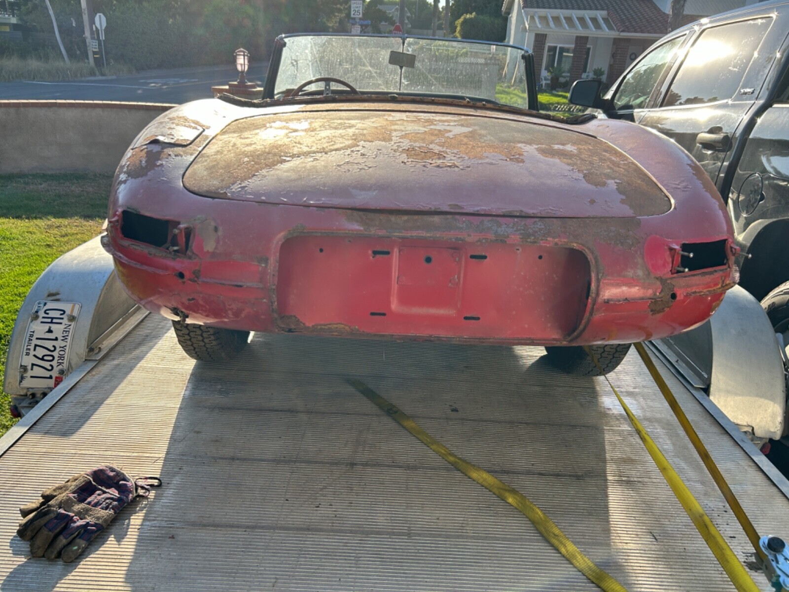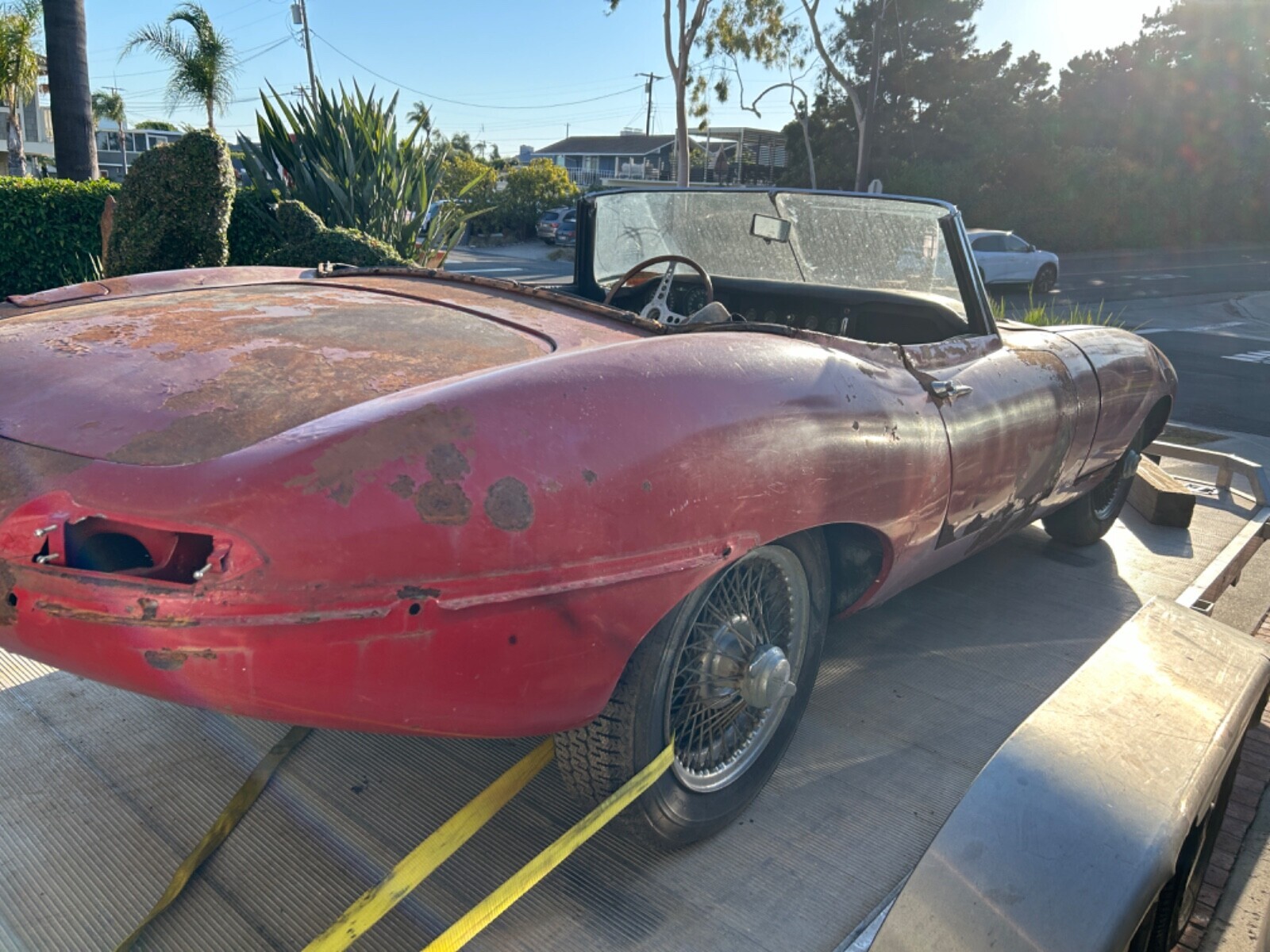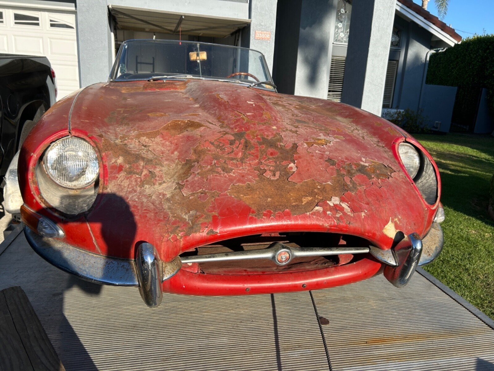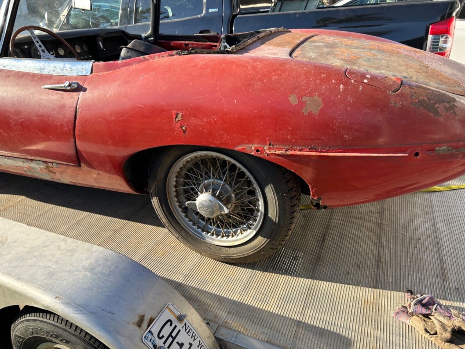This 1964 Jaguar XKE series 1 convertible car does run with a shot of either gas tank is disconnected, does not drive will need some brake work, car will need sheet metal work in floors, trunks and some body panel patches, car has 29953 mile, selling car as is, ownership paperwork is in my nam, NY state does not title anything older than 1973 so car comes with ownership transferable registration card