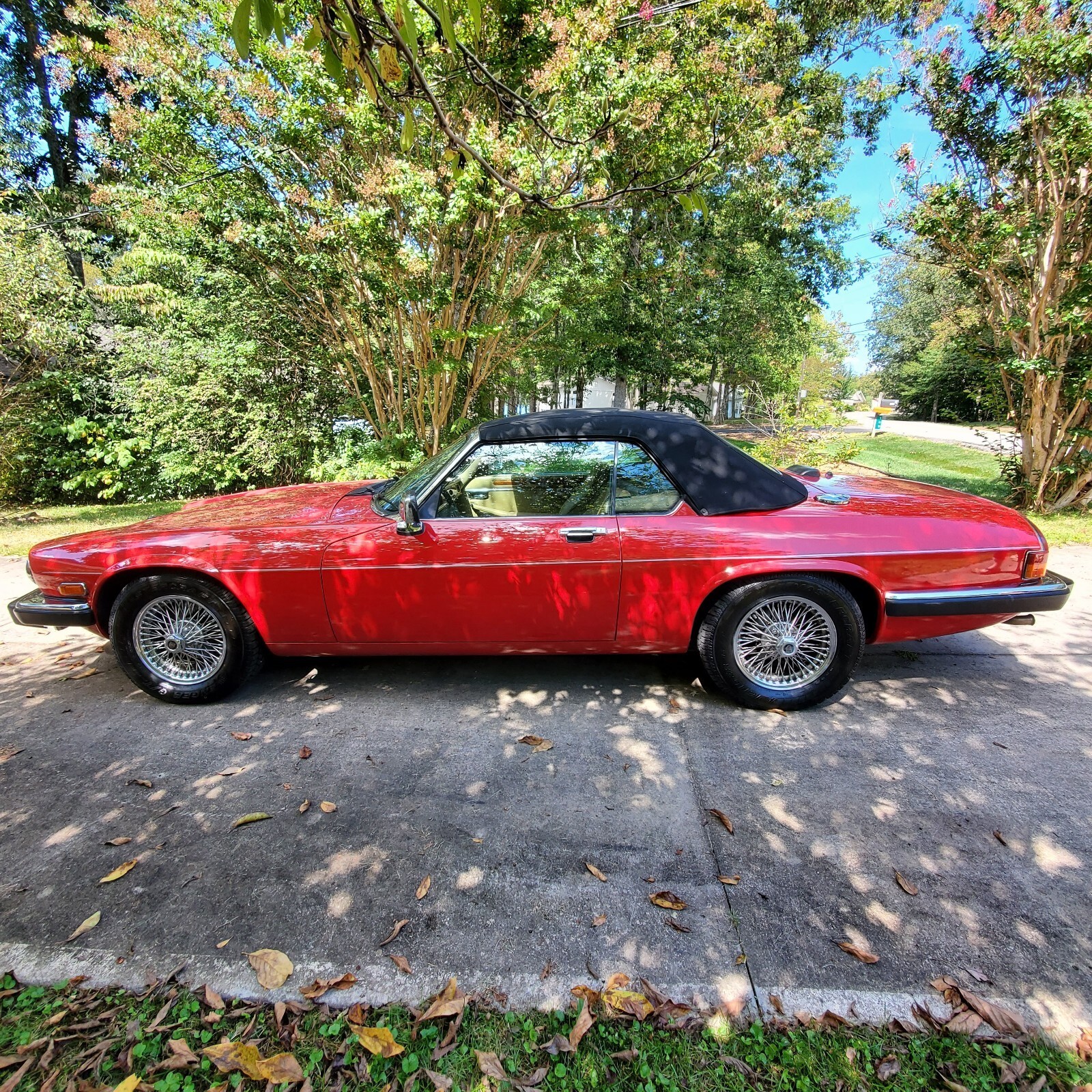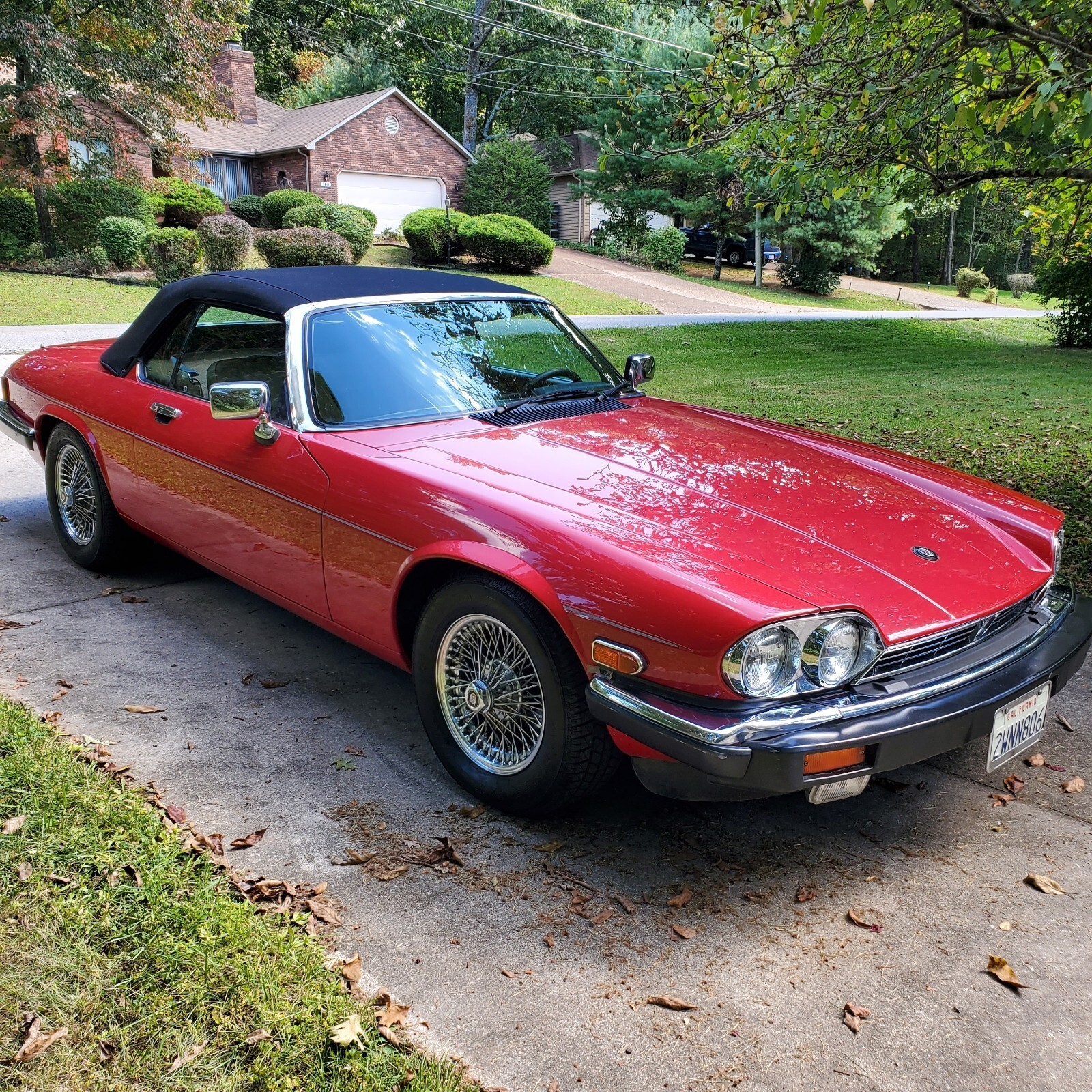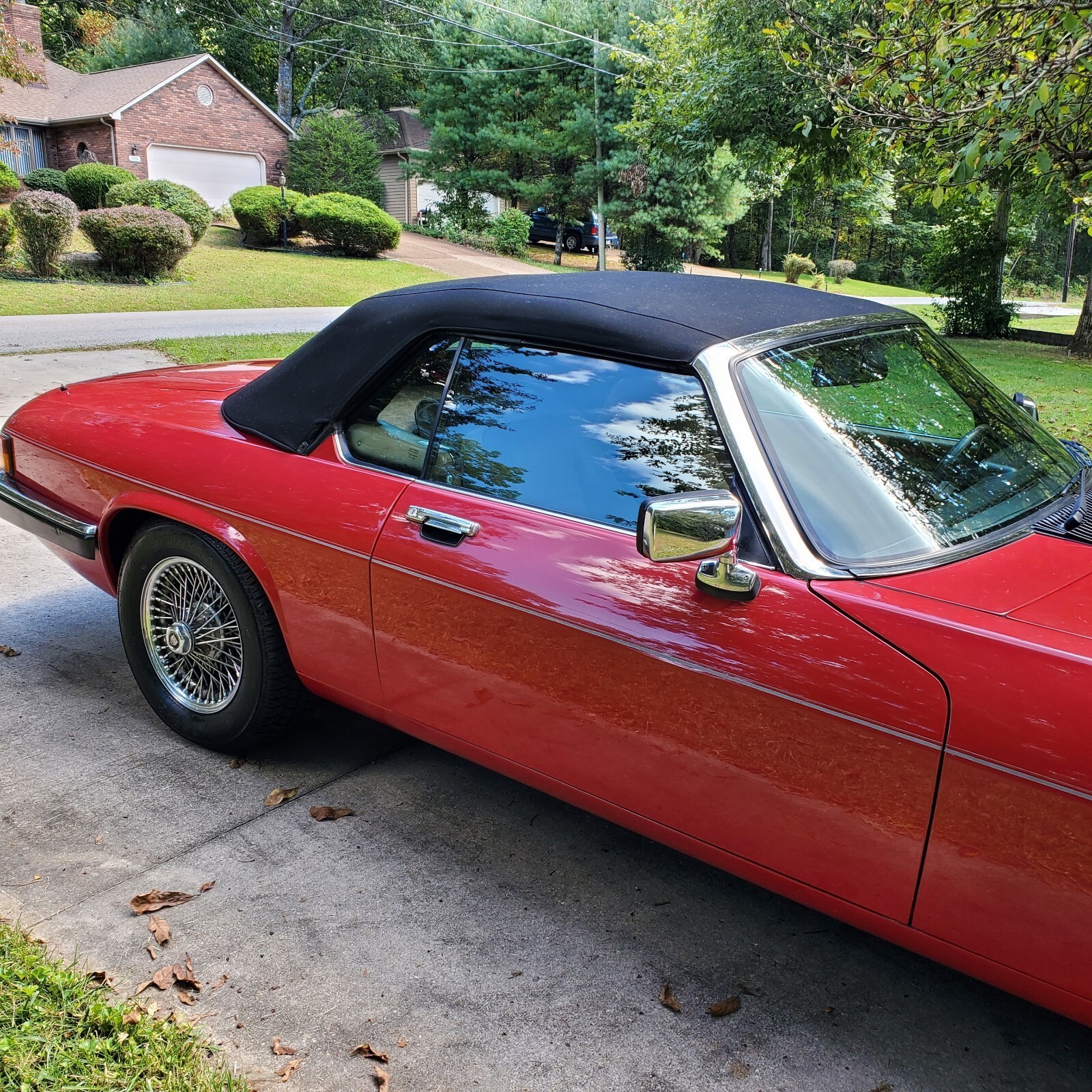 Gorgeous Signal Red Color. Engine runs strong and smooth and vehicle drivable except for safety issues of brakes (calipers lockup occasionally and should be replaced). Newer ragtop, ragtop snapdown cover, new battery, fuel lines have been replaced, nice chrome rims.. Some paint color variations and oxidation (typical for red paint). Driver side door was replaced by first owner, some leather wear and console burlwood discoloration.