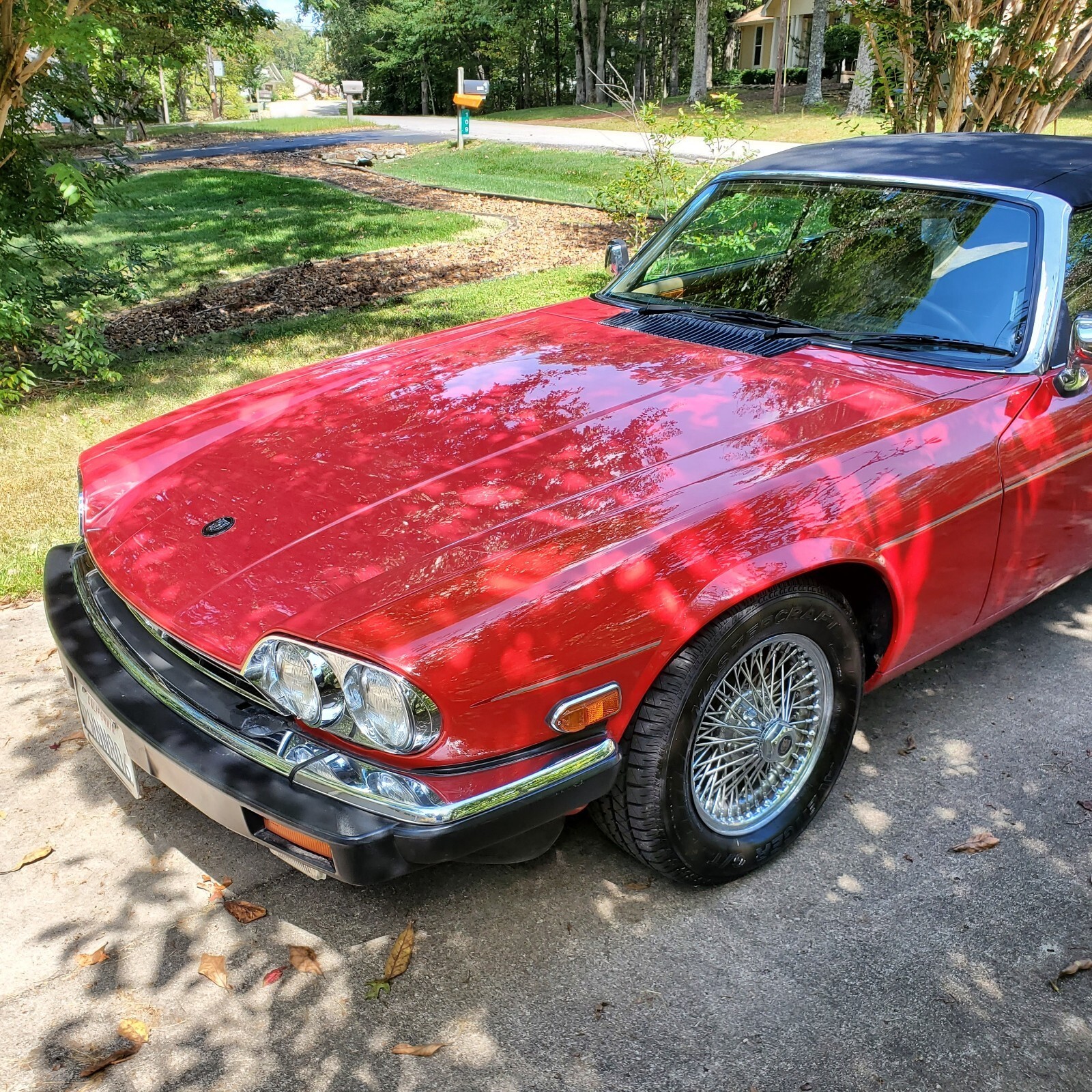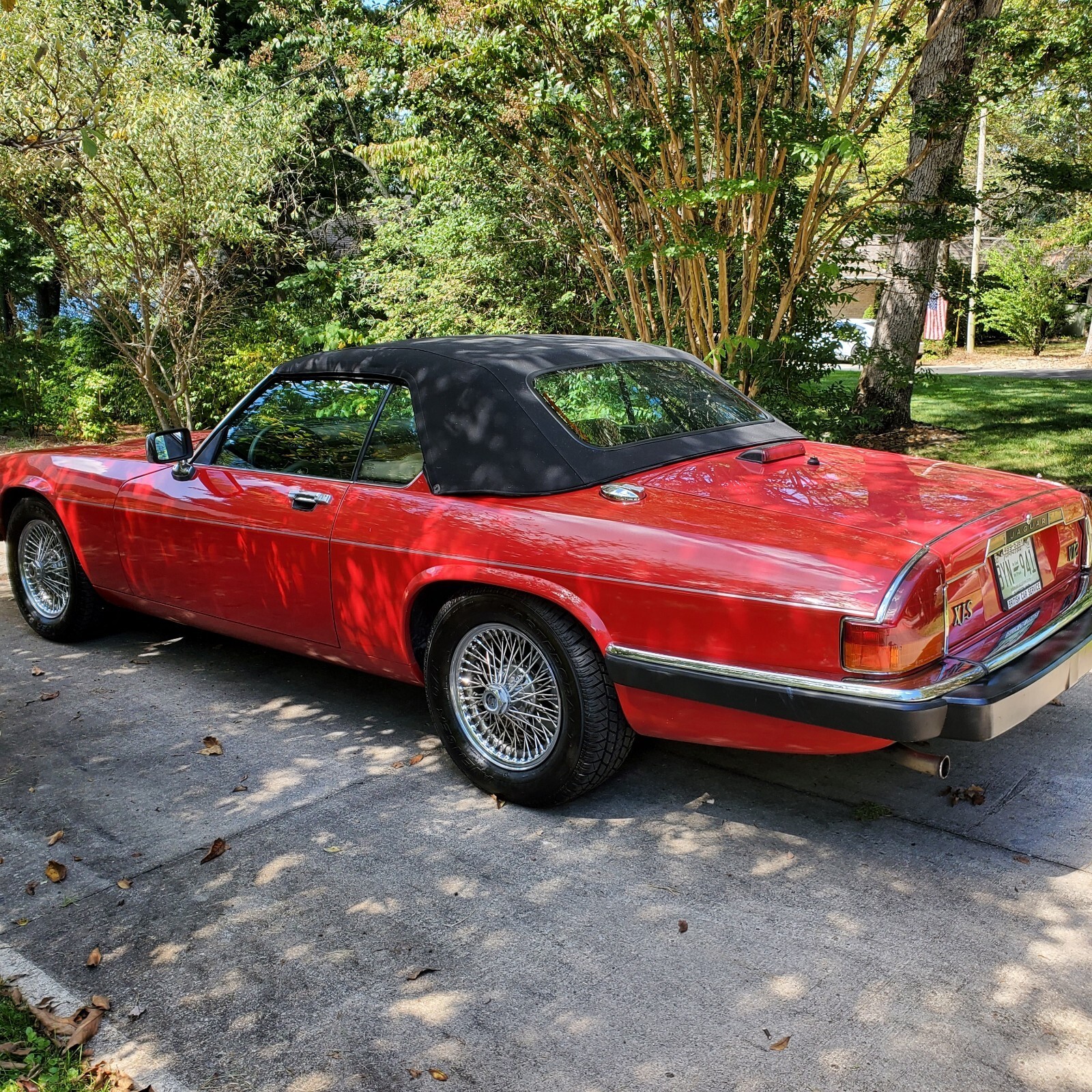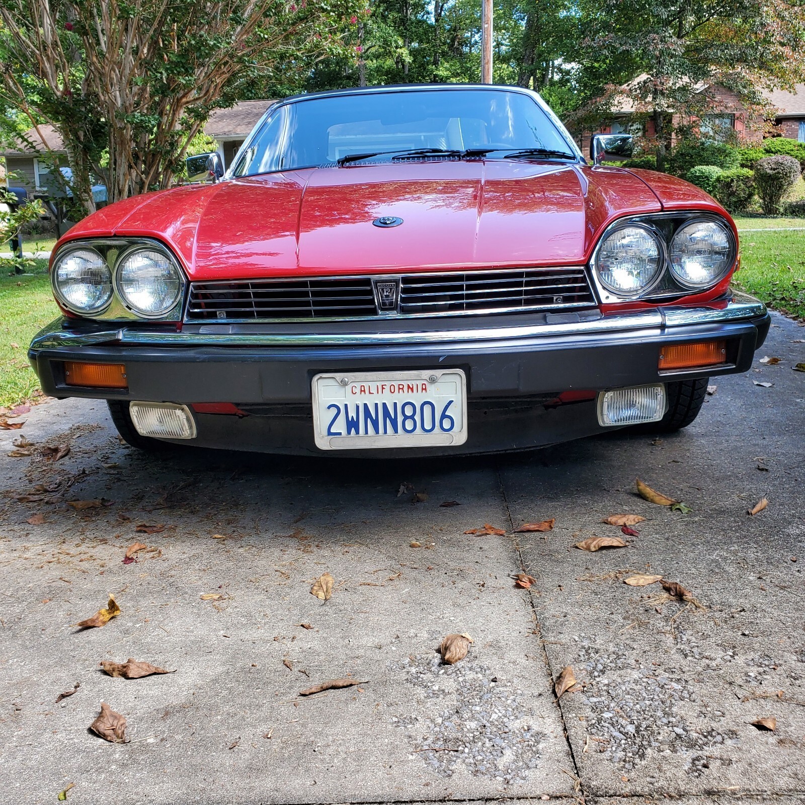 Gorgeous Signal Red Color. Engine runs strong and smooth and vehicle drivable except for safety issues of brakes (calipers lockup occasionally and should be replaced). Newer ragtop, ragtop snapdown cover, new battery, fuel lines have been replaced, nice chrome rims.. Some paint color variations and oxidation (typical for red paint). Driver side door was replaced by first owner, some leather wear and console burlwood discoloration.
