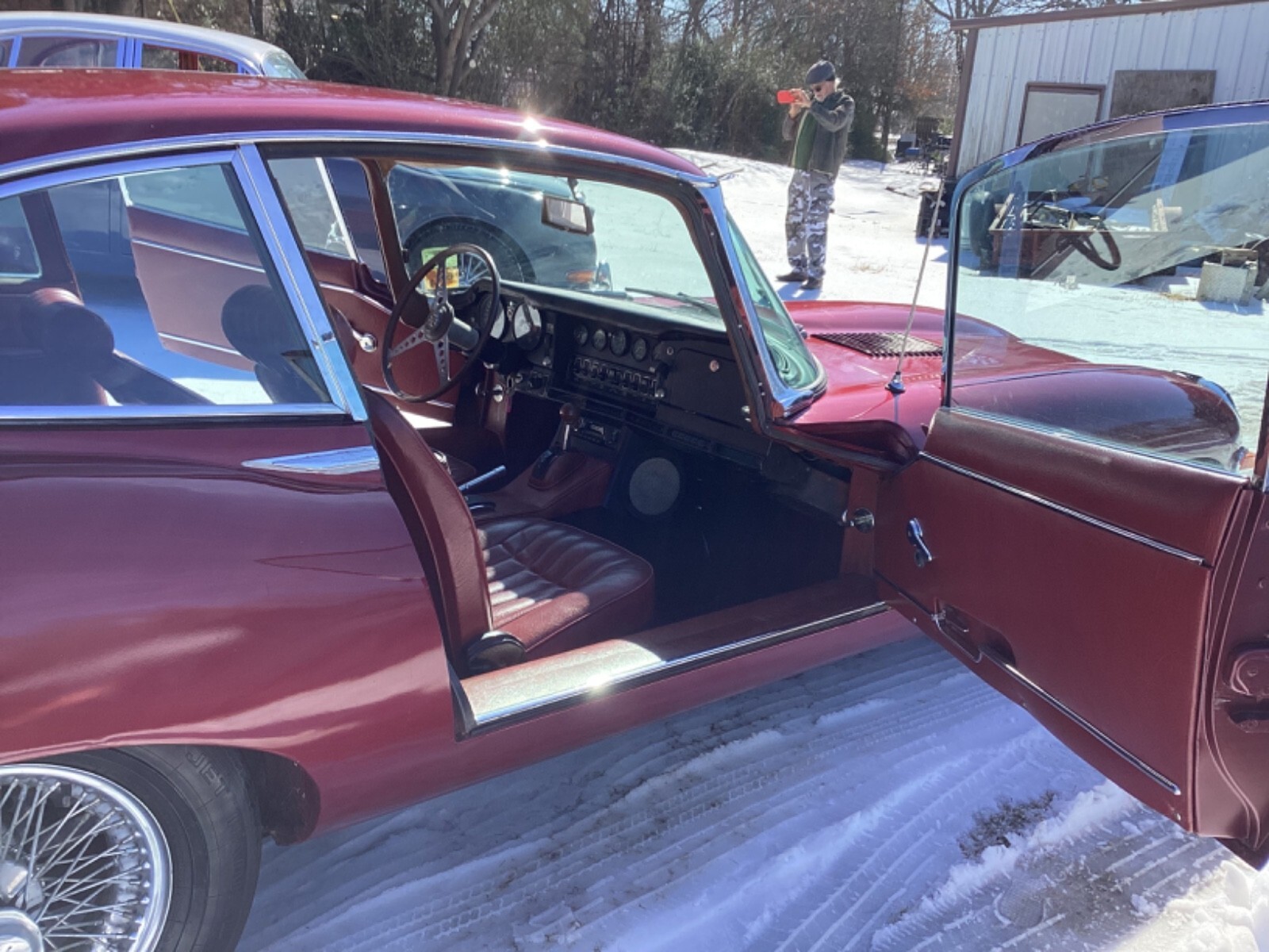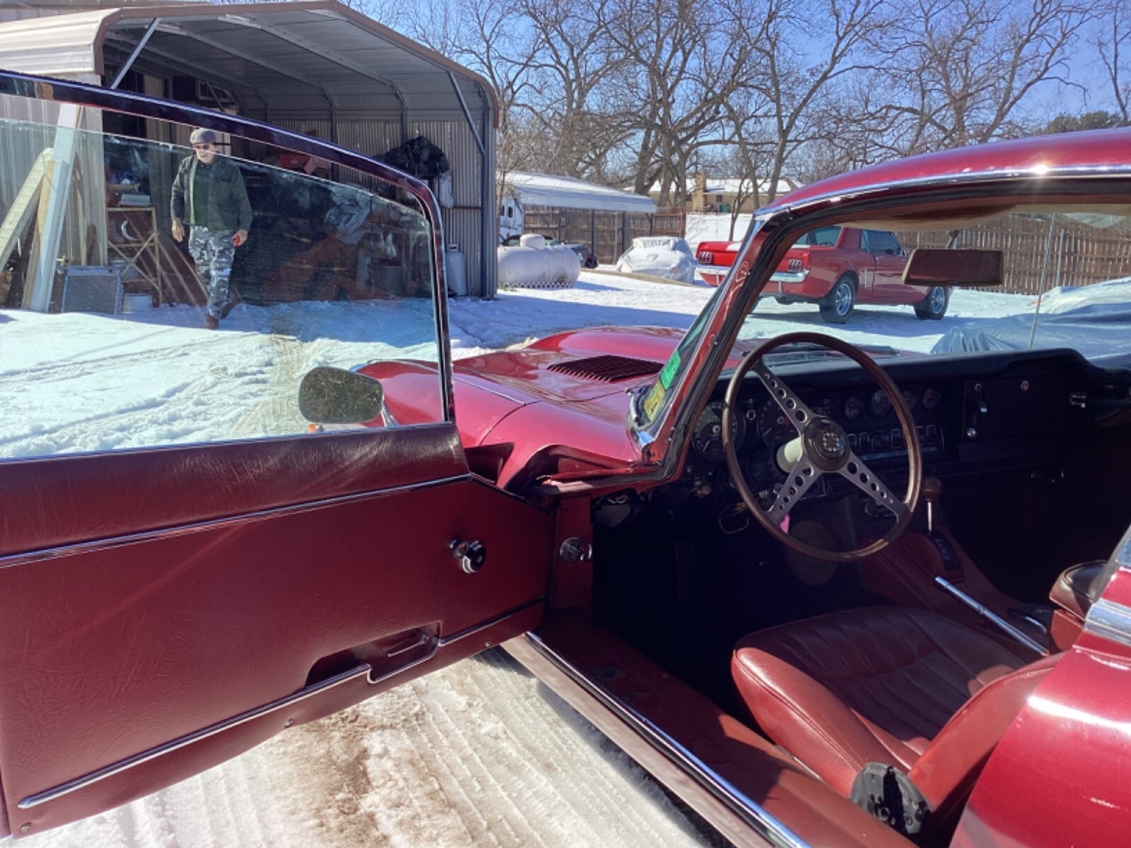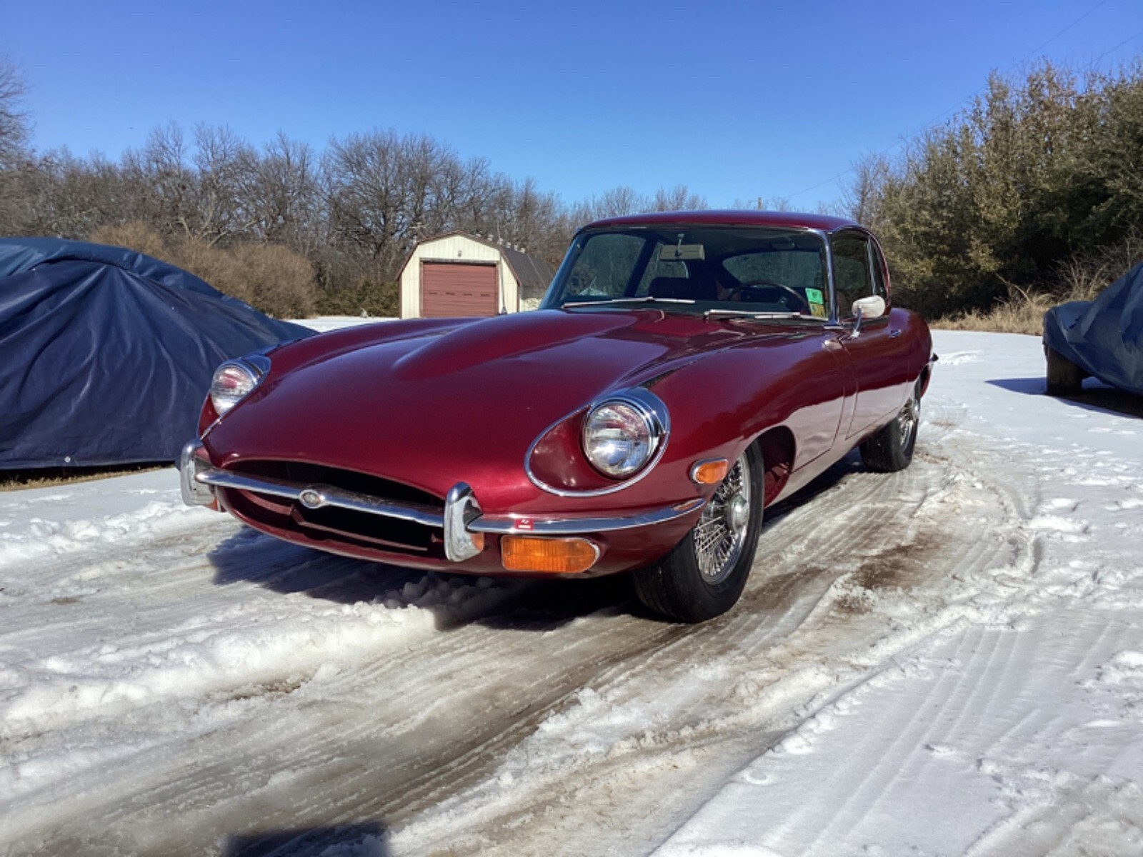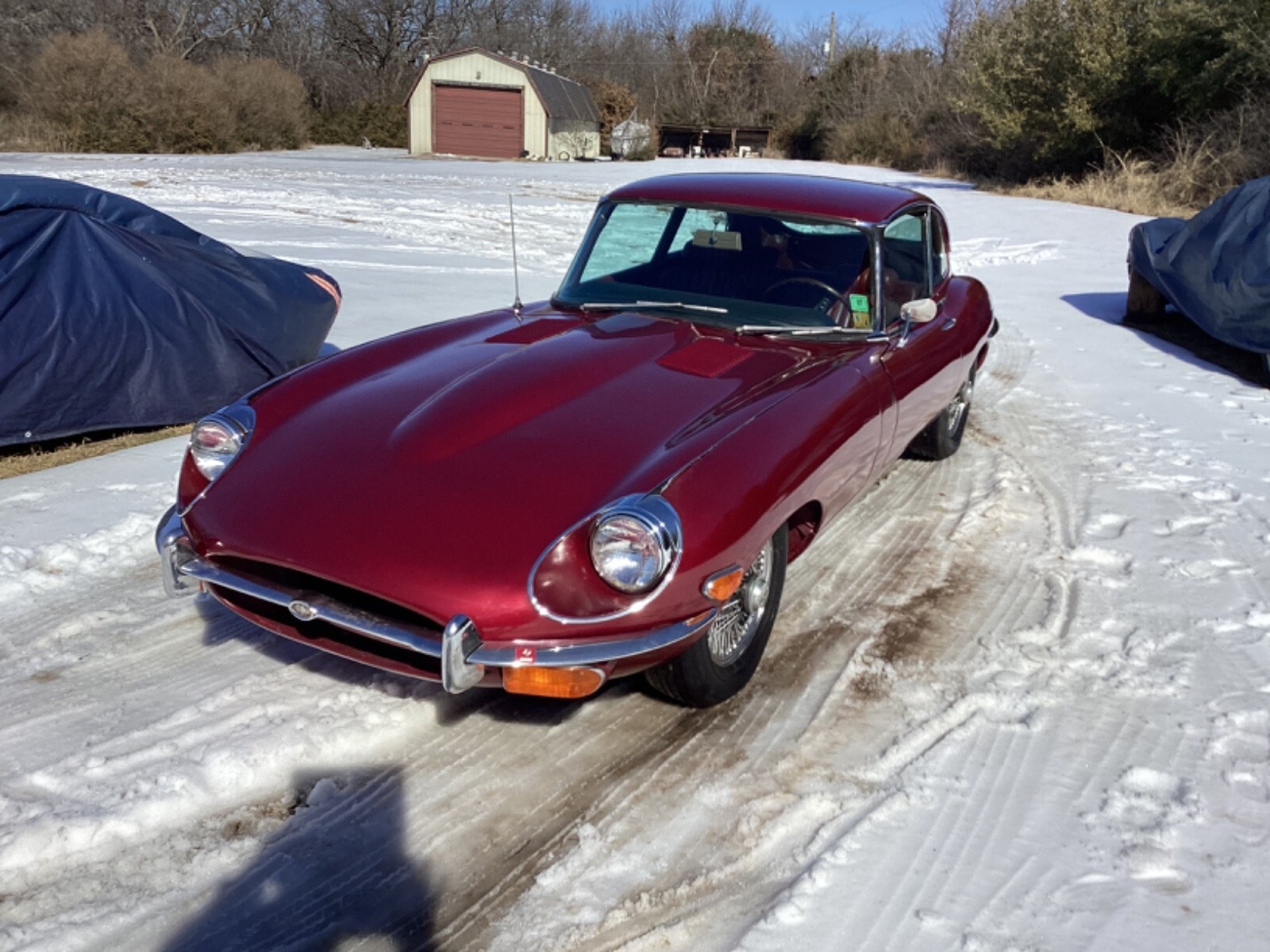 777 hits, 38 watchers afternoon of Feb1, 2026This is a survivor Jag that has not been registered since 1997, sitting in a garage in north Texas. We have resurrected the Jag by flushing the fuel system and cleaning the carbs, and installing a new fuel pump. We pulled the spark plugs and put oil in the cylinders. Put in a battery and cranked the engine over til we had oil pressure. Installed new spark plugs and now have it runnings very good firing onall six cylinders and not smoking. We have not changed the oil and filter. Then we installed new brake fluid bottles and hoses and flushed the brakes. We had to replace one brake hose. Transmission would not go into park and we adjusted and lubricated the cable. The Jag now starts up decently and goes into gear and park well. Now you can pull the Jag out and back in your garage while developing the car to the next level. This would make pretty straight forward father /son resurrection, or with buddies.The heavy lifting has been done. It left the assembly line in August 1968, and is series 2, 2+2 #7. we call the car 007. It will now start, stop and drive around in the parking lot. Exhaust sounds good!It will drive onto and off your trailer or shippers trailer. It will need to be serviced back to life, as it shows to have good bones.. It will need new cooling system hoses, belts and heater control valve, and new body rubber. Carpet is older, but can wait.. Rocker panels show some rust and repairs. Driver's floor is fiber glassed, for now: it is a boat hull. Lower floorboards are inexpensive and easy to install. I have a new one to go with the car. Brake fluid is bad to floorboards and master cylinders will take their tolls even on Texas cars. We installed a better brake master cylinder and booster and flushed the brake system. Charging system works, good oil pressure. It has headers. It needs all fluids changes front to back and grease all the grease fittings. It needs new tires now, but they hold air for now. The Jag is blessed with nice FactoryTinted Glass! The AC switch turns on the compressor and the fan blew at high speed!Transmission was rebuilt in 1996 w the receipt in the glovebox. By the way, the keys lock the glovebox and passenger door. Drivers door tries to lock but may just need lubricating.It has a new aftermarket fuel pump and filter. Car is complete except for the original jack. Series 2 etypes did not have tool kits. Knock off tool for removing knock offs on the wheels is there, no hammer., but is a presentable Jag!. the car was just painted before it was parked in 1997.It is missing the upper and lower windshield chrome. Handbrake arms have been removed, but come w the car. Park works on the transmission now. The motif bar will need rechroming, but most of the chrome is quite nice. There is the all to common small dent on the bonnet above the radiator. PDR should get most of it.