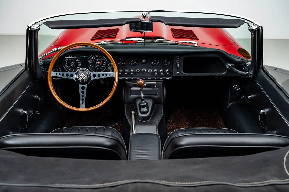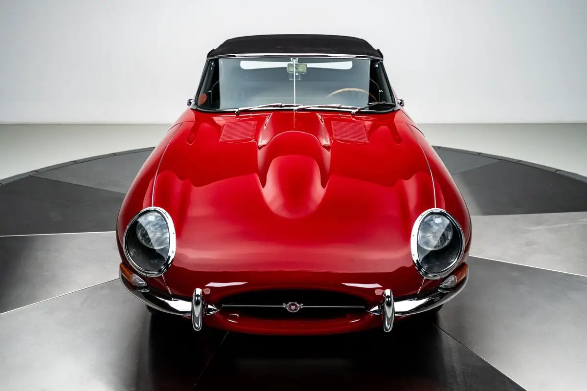 By the mid-1960s, the Jaguar E-Type had already established itself as one of the most visually striking and technically advanced sports cars of its era, and the 1966 model year represents a high point of the Series I run, blending the purity of the original design with the added torque and drivability of the 4.2L inline-six. Finished in Carmen Red over a black leather interior, this E-Type Roadster was meticulously restored by marque specialists at Catz Automotive in Youngstown, Ohio, with the body stripped to bare metal, mounted on a rotisserie, and carefully metal-finished to preserve straight, factory-correct contours. The iconic covered headlights remain in place, giving the car its famously smooth, uninterrupted lines that define the Series I, while