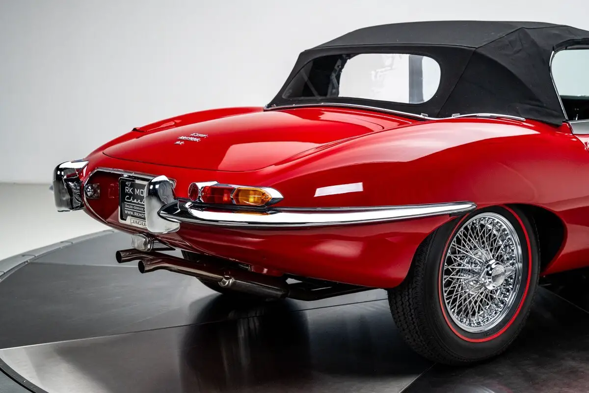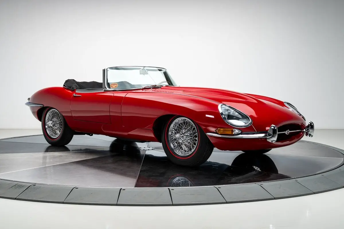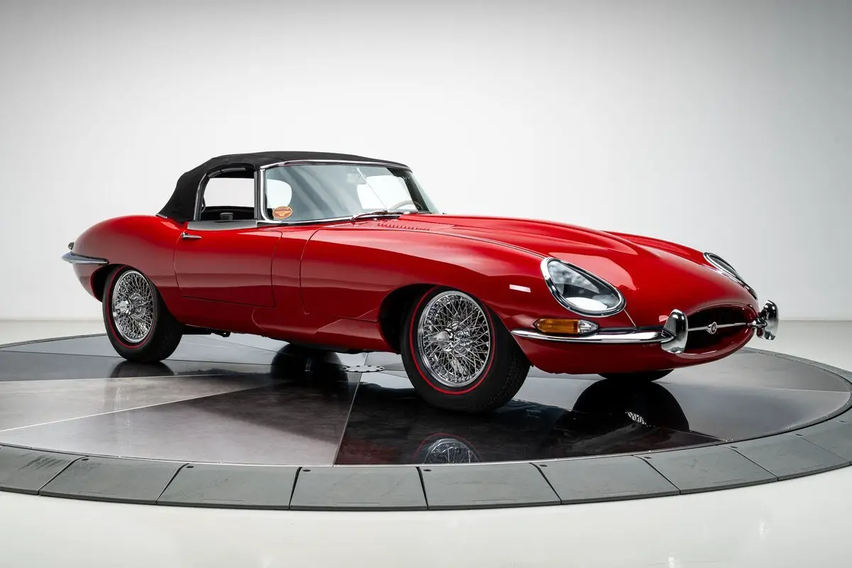 By the mid-1960s, the Jaguar E-Type had already established itself as one of the most visually striking and technically advanced sports cars of its era, and the 1966 model year represents a high point of the Series I run, blending the purity of the original design with the added torque and drivability of the 4.2L inline-six. Finished in Carmen Red over a black leather interior, this E-Type Roadster was meticulously restored by marque specialists at Catz Automotive in Youngstown, Ohio, with the body stripped to bare metal, mounted on a rotisserie, and carefully metal-finished to preserve straight, factory-correct contours. The iconic covered headlights remain in place, giving the car its famously smooth, uninterrupted lines that define the Series I, while triple-plated brightwork and chrome wire wheels wrapped in Coker redline tires complete the period-correct presentation. Power comes from the original, matching-numbers 4.2-liter inline-six, rebuilt to factory specifications during the restoration, paired with a Tremec 5-speed manual transmission developed by XKs Unlimited that provides smoother shifting and an overdrive fifth gear for improved real-world drivability. Jaguar's independent rear suspension with a 3.54 gear ratio and limited-slip differential preserves the balanced ride and handling for which the E-Type is known, while the restored black leather interior, refurbished trim and instrumentation, properly fitted Hartz canvas top, and well-finished trunk reflect the same level of care throughout. Beautifully sorted and genuinely engaging to drive, this 1966 Jaguar E-Type Roadster presents as a refined, investment-grade example of one of the most important sports cars ever built.