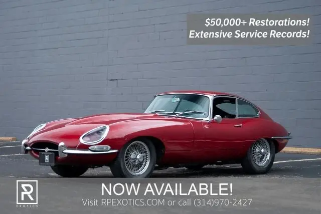 This 1963 Jaguar XKE Coupe is an iconic Series 1 British grand tourer that revolutionized sports car design with its aerodynamic styling by Malcolm Sayer, lightweight construction, and exhilarating performance, blending elegance with raw driving pleasure. Meticulously restored with over $50,000 invested in preserving its originality and condition, this example is finished in vibrant Red Metallic over a supple Black Leather interior and is powered by a 3.8-liter DOHC inline-six engine producing 265 horsepower, paired with a 4-speed manual transmission and rear-wheel drive. Equipped with chrome wire-spoke wheels, four-wheel disc brakes, independent suspension all around, walnut veneer dashboard, Smiths instrumentation, and toggle switches, it offers a timeless symphony of classic motoring heritage, refined craftsmanship, and collector-grade appeal.