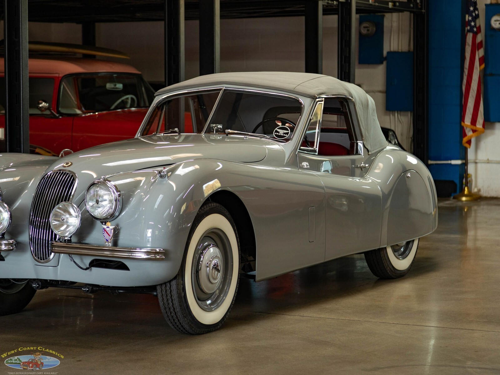 West Coast Classics are proud to present an absolutely exceptional and very rare and professionally frame off restored example of this coveted and highly desirable 1953 Jaguar XK 120 Drop Head Coupe Left Hand Drive U.S. delivery model which was the beneficiary of a frame off restoration in the mid 2000's to as new show ready condition with an already excellent body with no damage history and no rust! This beauty still boasts it's original five disc-type steel wheels with original fender spats, aka Fender Skirts (in America!) spare wheel, and it's original matching numbers engine as verified by the Jaguar Daimler Heritage Trust Certificate. One of the rarest XK 120 variants, second only to the alloy-body Roadster.