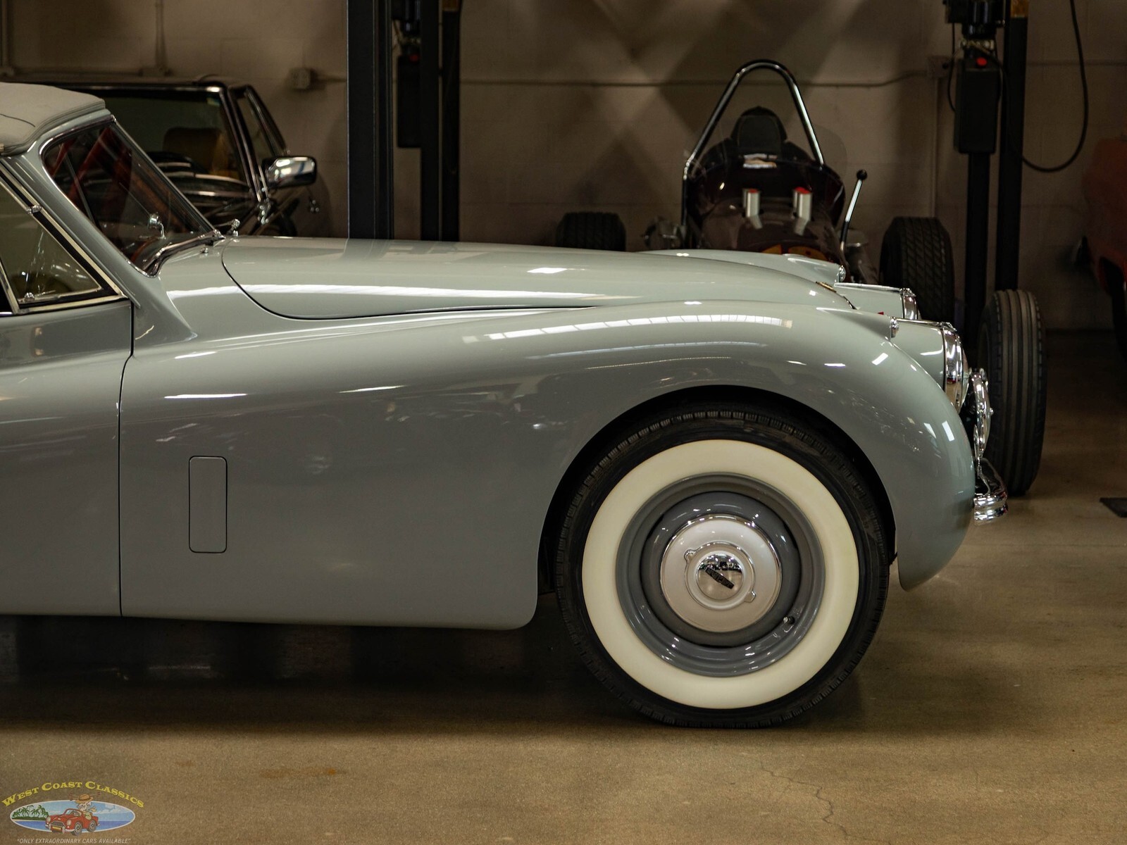 When this stunning model debuted in 1948 at the Earls Court Motor Show in London, England it was the darling of the show and remains today as much of a show stopper as it did then, over sixty-six years later! The car set numerous and now legendary speed records and was the fastest production car in the world in it's day and Jaguar used its engine for decades to come. In terms of design, the two-seater roadster with its classically simple flowing lines, slender tail and exotic flush-sided body was a massive leap forward for sports car design at the time and in many ways its styling remains unparalleled. Combined with new standards in terms of performance, Jaguar had obviously built what was destined to become this milestone and eminently always collectible classic car.