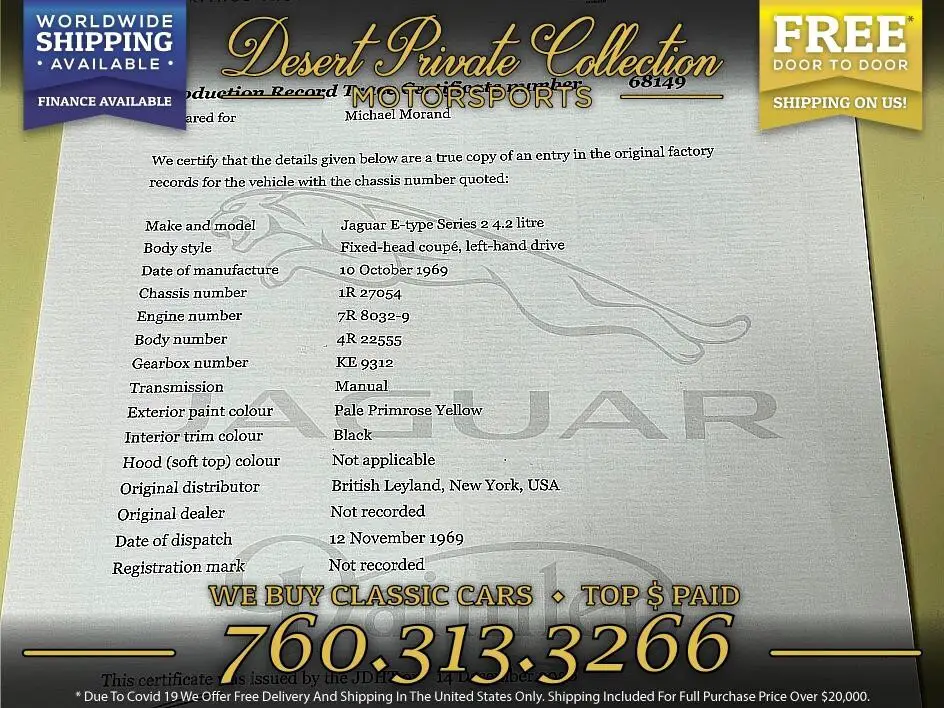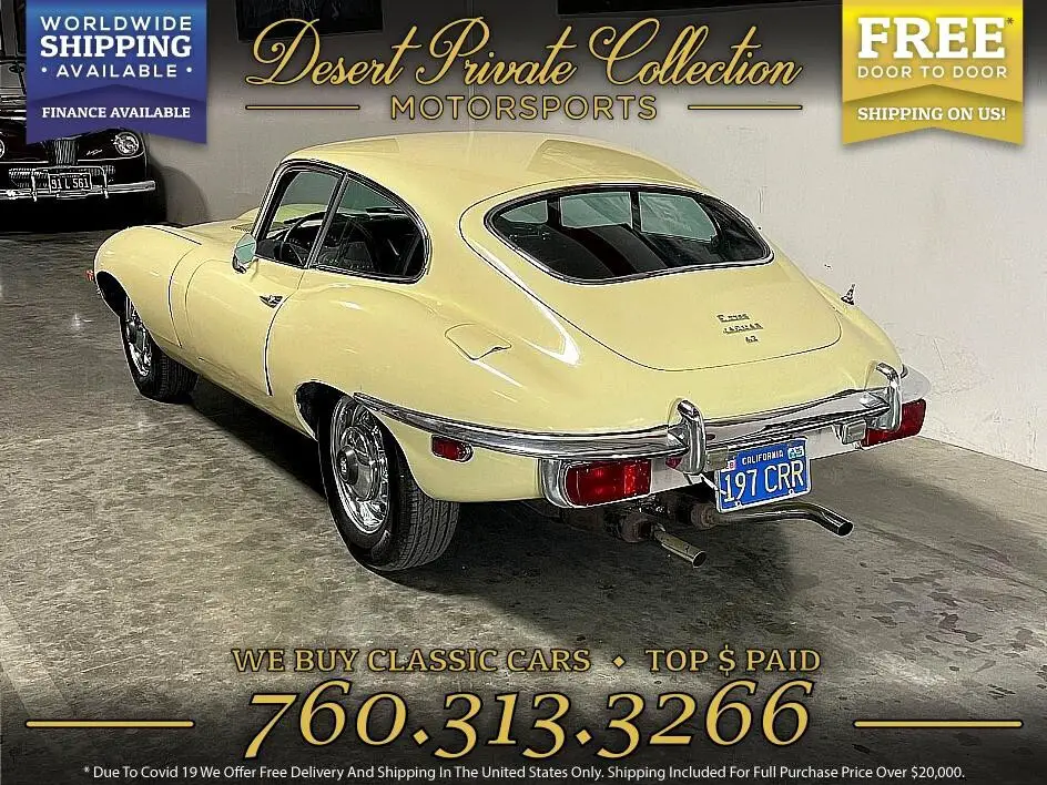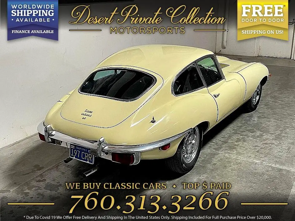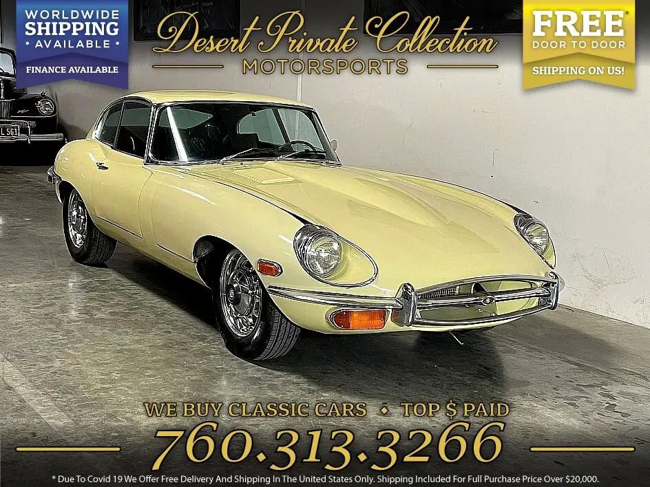 The 1970 Jaguar E-Type Coupe is a sculpture in motion -- a long-bonnet| low-slung dream from Coventry that made the world stop and stare the moment it arrived. Even by 1970| a decade after the E-Type's debut| its shape still looked like it had been poured rather than built: the endless hood tapering down to a feline snout| the glassy fastback roof flowing like liquid silver into muscular haunches| and the entire body resting barely above the pavement with predatory intent. Under that impossibly long bonnet lived the legendary 4.2-liter inline-six| a velvety yet potent heart producing its power with a silky| unmistakable growl. Paired with a precise four-speed gearbox and independent suspension at all four corners| the E-Type delivered handling that felt half grand tourer| half thoroughbred racer.. Slip into the snug cockpit and you're greeted by toggle switches| leather trim| and a dashboard that feels charmingly aircraft-like -- the sort of place where adventures seem inevitable. Turn the key| and the engine stirs awake with a refined purr that quickly sharpens into a confident| aristocratic rumble. Imagine taking the 1970 E-Type onto a winding country road at dusk: the front end stretching toward the horizon| the tach needle rising| the exhaust note echoing off hedgerows while onlookers catch only a flash of chrome and the unmistakable silhouette that Enzo Ferrari famously called the most beautiful car ever made.. Elegant| seductive| and perpetually youthful| the 1970 Jaguar E-Type Coupe remains not just a classic car| but a rolling masterpiece of design and emotion -- a machine that blends grace| speed| and romance into one unforgettable| breathtaking experience.Click the link for the video: https://youtu.be/HgMsNr1ezl4... Read the full description on our Website at: www.desertprivatecollection.com