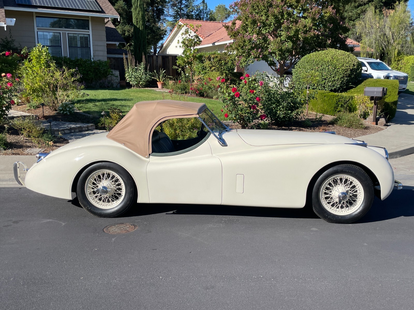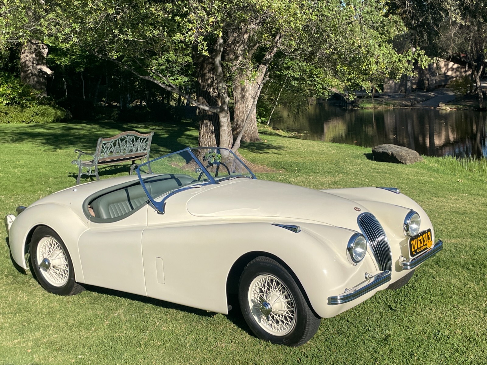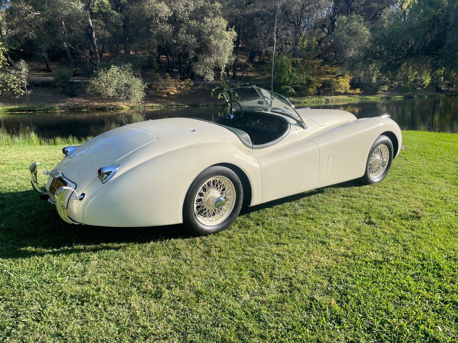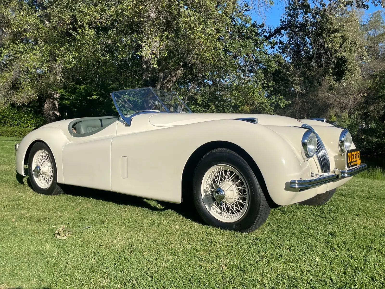As recorded on its Jaguar Heritage Trust Certificate (included in sale), this XK 120 was completed on 25 June 1952, finished with a factory special order color combination of Cream over Suede Green interior with a Fawn soft-top, side curtains and tonneau cover. Most importantly, the Certificate confirms this car retains its numbers-matching chassis, head, block, transmission and body.
