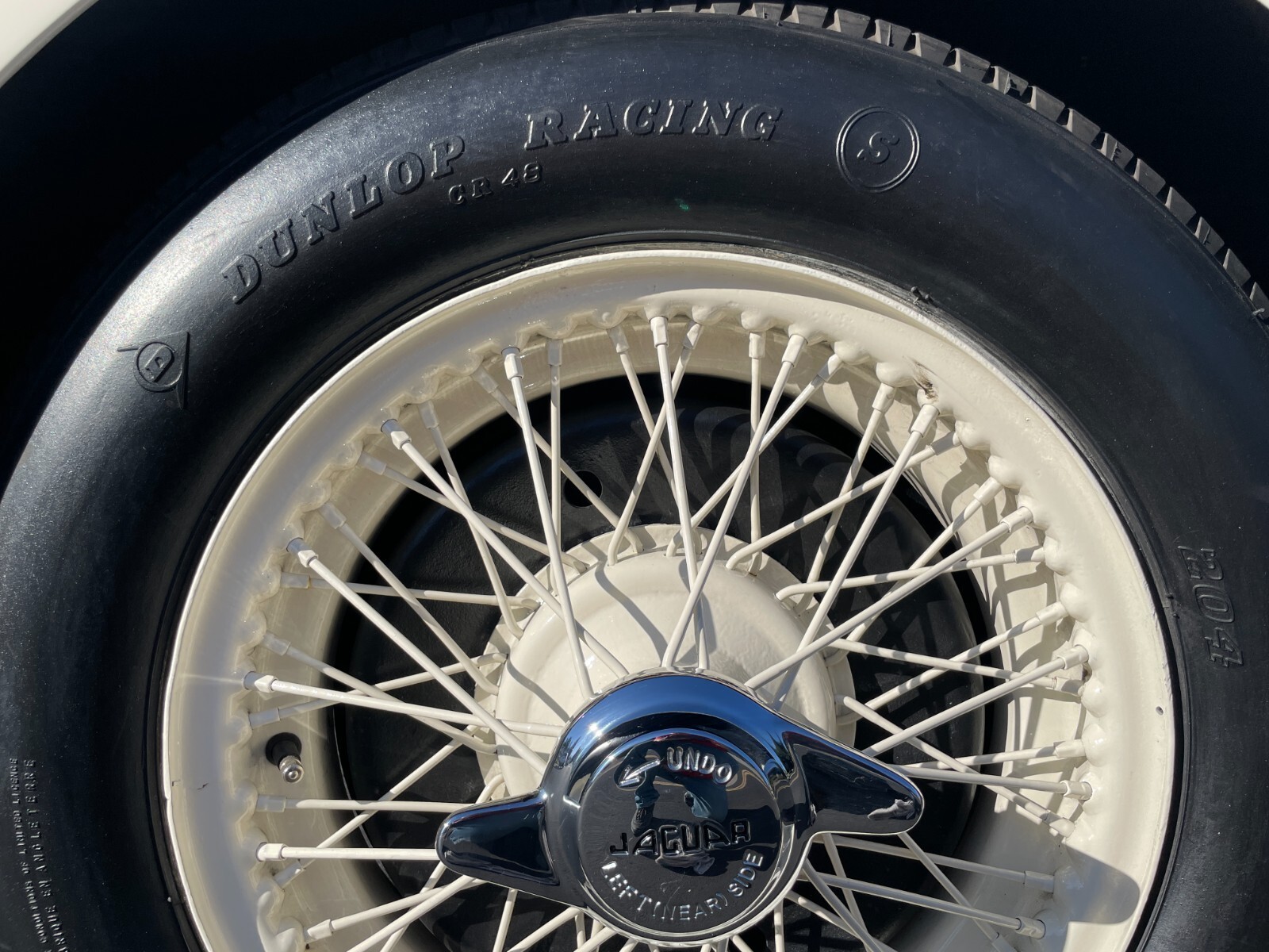 The body and chassis were separated and completely refinished to an impressive JCNA concours standard of finish throughout. All brightwork trim was similarly re-chromed to exacting JCNA standards by a local specialist shop. The car rides on period correct, painted 48-spoke wire wheels with two-eared Rudge-Whitworth knockoff hubs and shod in Dunlop Racing tires.