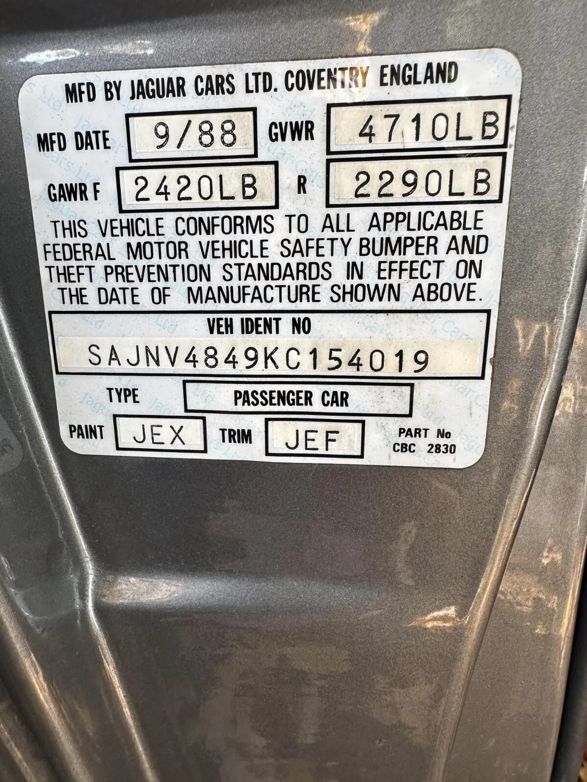 | VIN: | SAJNV4849KC154019 |