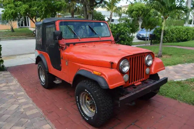 1977 Jeep CJ 5. 6 cylinder 258ci, T150 3-speed transmisison and manual Warn hubs. Manual steering and brakes. This is currently registered and tagged in Florida with a clean title. This is as close to spec as you can get.