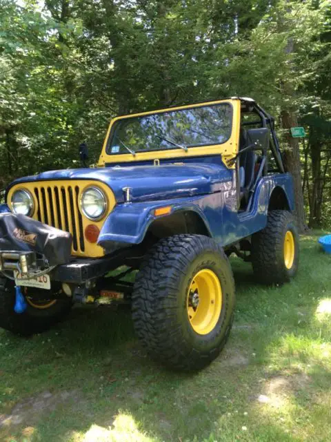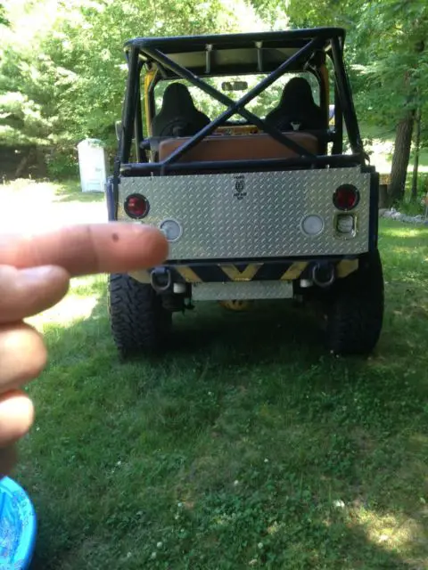 1978 CJ 5 with a Chevy 350 with comp cams extreme 4X4 cam kit 1with roller rockers and a Holley Truck Avenger Carburetor, Hedman HTC-coated headers with Dynomax 3 inch exhaust, 202 Camel hump heads, Weiand intake and MSD 6AL ignition,Lakewood Safety Bellhousing with heavy duty Hayes clutch kit, T18 truck for speed to Advance Adapters to Dana 300 transfer cas, two fans one is mechanical the other is electric.two fuel pumps one mechanical and one electric, all stainless steel brake lines, Borgeson heavy duty steering shaft, AGR steering box with heavy duty tie rod ends with custom made schedule 40 pipe. EdelBrock IAS twin tube shocks 4 inch lift and spring's, Moser one piece axle, lock right differential in front and in back,Goodyear Wrangler MT/R 35 inches, racing bucket seats with five point harness, custom roll cage tied into frame, custom Diamond plate dashboard, floor shifter and Tailgate, milemarker winch, yellow powder coat windshield frame, grill and rims. Call Dan @ 413-519-5843