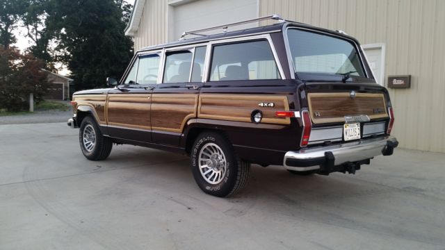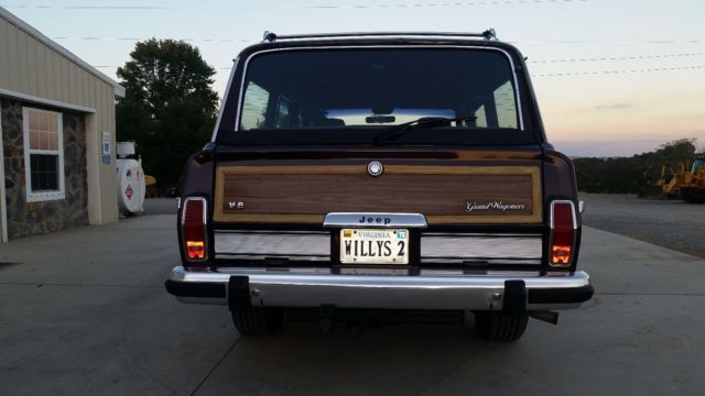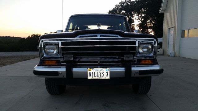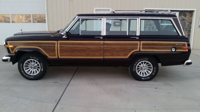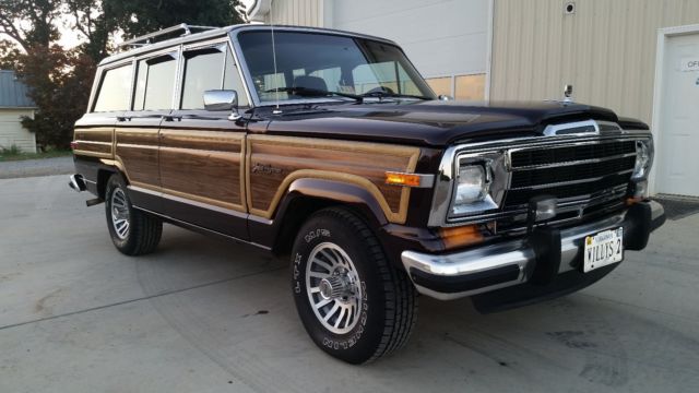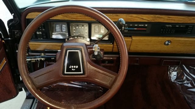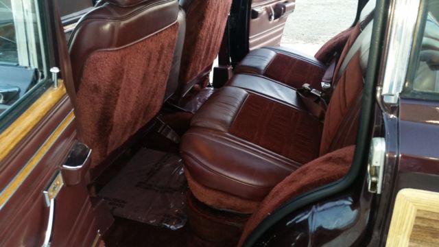 LISTING A FULL SIZE JEEP GRAND WAGONEER 4X4. THIS JEEP HAS ONLY 95,000 MILES HAS 360 V-8 MOTOR, RUNS AND DRIVES GREAT. THE INTERIOR IS NICE AND CLEAN SHOWES NO DAMAGE ANYWHERE. HAS A NICE SET OF MICHELIN TIRES AND FACTORY WHEELS. THE PAINT IS ORIGINAL AND SHOWS SOME AGE, THERE IS SOME RUST DOWN LOW IN BOTH ROCKER PANELS AND BEHIND REAR WHEELS. FRAME IS SOLID AND CLEAN SO ARE FLOOR PANS. THESE JEEPS ARE HARD TO FIND WITH LESS THAN 100K . THIS JEEP HAS BEEN SERVICED AND KEEP IN GOOD RUNNING CONDITION. THE LEATHER SEATS ARE NICE AND DONT HAVE CRACKS OR TEARS.HAVE SET A FAIR RESERVE PRICE. THANKS FOR LOOKING