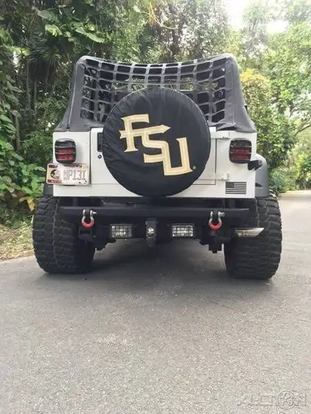 1993 JEEP WRANGLER 4X4 CUSTOM METAL HALF DOORS WITH ZIPPER WINDOWS CUSTOM BODY MATCHED WHEELS AND TIRES UPGRADED STERIO WITH BLUETOOTH 5 SPEED MANUAL TRANSMISSION TAN STORAGE COVER CUSTOM BUMPERS CUSTOM EXHAUST POCKET FENDERS CARGO NET TOP