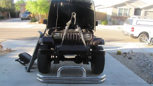 1989 Jeep YJ.....one of the last AMC's 2dr with a straight six 4.2L and a 2" lift. This is a great project Jeep, has rebuilt trans and a new transfer case. The motor will need a bearing but does run. AZ Jeep has no rust but has a few fixable dings. Soft top is in good condition as well as the interior, needs some cleaning, custom metal dashboard with gauges and other parts to help with restore. New wiring. I already have what I'm asking into it so my loss is your gain, all reasonableoffers will be considered. If any questions please ask.