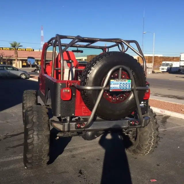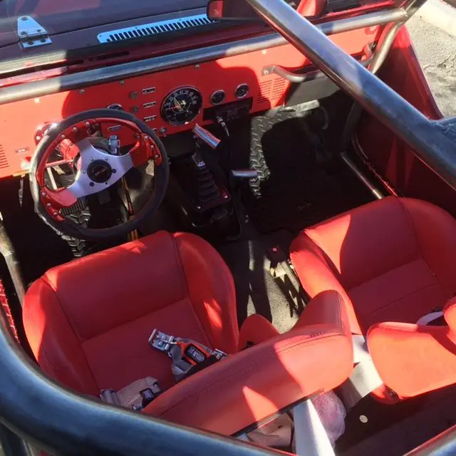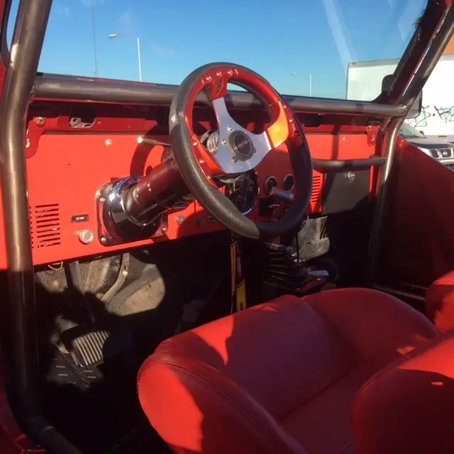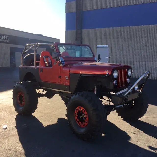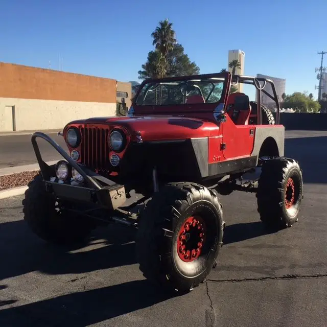 This is a custom 1984 Jeep CJ7, runs great. We have used it as a promotional vehicle for our gun range. Since we built it so very low miles. Runs great, 42 inch tires, custom bead locks, custom roll cage, custom front and rear bumpers, brand new wire harness, 4 point harness seat belts, machine-gun mount (useful if you have a machine-gun), body armor panels. The grey paint is peel off and there is a really nice red/maroon paint underneath, we did the peel off paint to protect the real paint job.