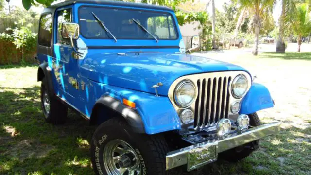 Another classic car liquidation!!!! Beautiful frame off 1980 CJ7 Jeep Renegade. 6 cyl--4 speed standard transmission..100% engine rebuilt less of 300 miles.. Lots of Stanley still..Dry southern Texas Jeep..Original Floors.Rockers no patches.. PB/PS..tiltwheel.. AM/FM/CD player. New seats.New tires. Toyota vudu blue... Questions? Call Hector at 954-513-9237..More others cars for sale just ask!!