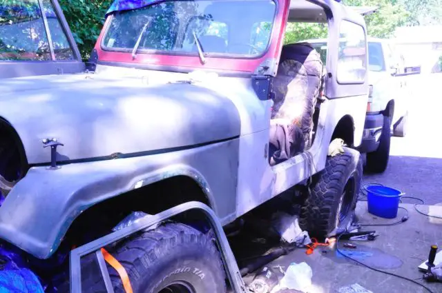 1980 CJ7 360, 4 speed! This jeep is just plain bad! Motor has less than 300 miles on it! Aluminum heads, big comp cam, holly carb, headers and side pipes to match, reverse shackle kit, new 35" BFGoodrich MT tires, painted 2 years ago (cyber corvette gray), all factory body (no fiber glass). This jeep sounds like no other and is fast! Heads turn anywhere you pull in! Hate to sale it but I have my first child due soon and have no time to drive it. I have close to $35,000.00 in the jeep! Jeep does have normal road scratches.Bid fast, Jeep is for sale locally!