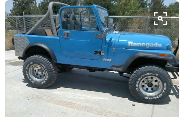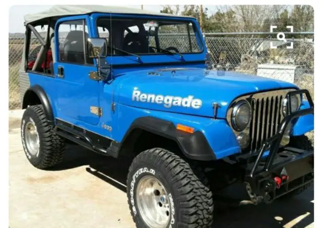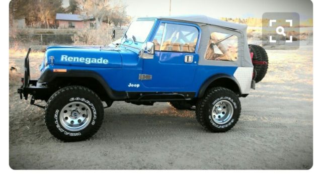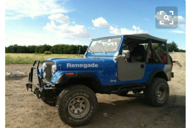 1981 Jeep Renegade CJ-7 4.2 258 six cylinder. Third owner but always kept in the family. Jeep has been rebuilt from top to bottom, except the engine. AMC 20 rear end, replaced with one piece Superior axle, with Detroit full locker, New Spicer 4:10 gears and seals. Front Dana 30, with Richmond Power Trax locker 4:10 gears. New rebuilt NP 435 4 sp transmission. New clutch and pressure plate, Weber carb, new plastic radiator. New complete brake system / from booster to spring kits on all four sides. 2 1/2 in super lift suspesnsion lift, 1" shackle lift. 1' body lift. Body tub has been bed lined under carpet. Fold & tumble rear seat, new bestop soft, sunrider top, two bestop bikini tops, half bestop doors, full hard doors, new hinges, new door window seals, Black fiber glass hardtop. Custom built front/rear bumpers with tire swing holds two jerry cans. Custom built pipe rock crushers left/right side. Paint job is two yrs old, Oversized bestop front fender flares. MTR Goodyear 32" tires on 15" rims. new tail lights. Odometer stuck at 29,305, has no more than 80,000 miles on engine. Engine runs good, no major work done to it except for regular maintenance and gaskets. Original SR 4 transmission on hand.